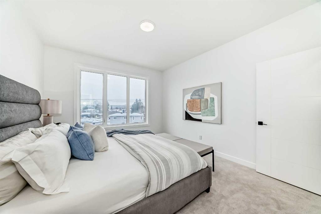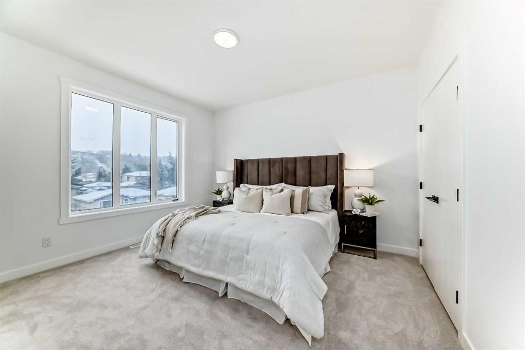 Welcome to this modern 4 Bedroom, 4 Bathroom end-unit offering an exceptional blend of family-friendly design and investment versatility in one of Calgary’s most established and sought-after communities. This thoughtfully designed home provides space to grow while offering excellent income or multi-generational living potential. A standout feature is the main-floor bedroom with a separate private entrance and attached 4-piece bathroom—ideal for extended family, older children, guests, a home office, or a potential rental setup. The open-concept main living area is bright and welcoming, featuring quartz countertops, modern finishes, and a cozy electric fireplace with mantel, creating the perfect space for family gatherings. Step outside to the private balcony, offering a comfortable outdoor space to enjoy the amazing Calgary summer nights. The generous size bedrooms include walk-in closets and spa-like ensuites, providing privacy and comfort for every family member. An oversized single garage adds valuable space for parking, storage, bikes, and strollers. Located just steps from Bowness Park and Calgary’s extensive city pathway system, this home is perfect for active families. Enjoy walking distance to schools, parks, playgrounds, and daily amenities, with quick access to major roadways and downtown—making it equally attractive to renters and owner-occupiers. A flexible, modern home that works for growing families and savvy investors alike—offering lifestyle today and value for the future.
