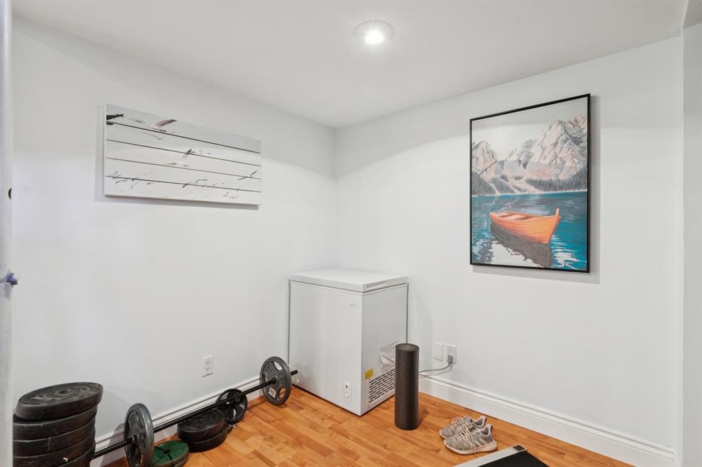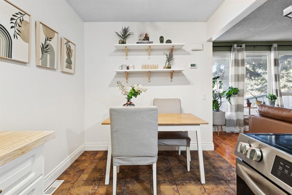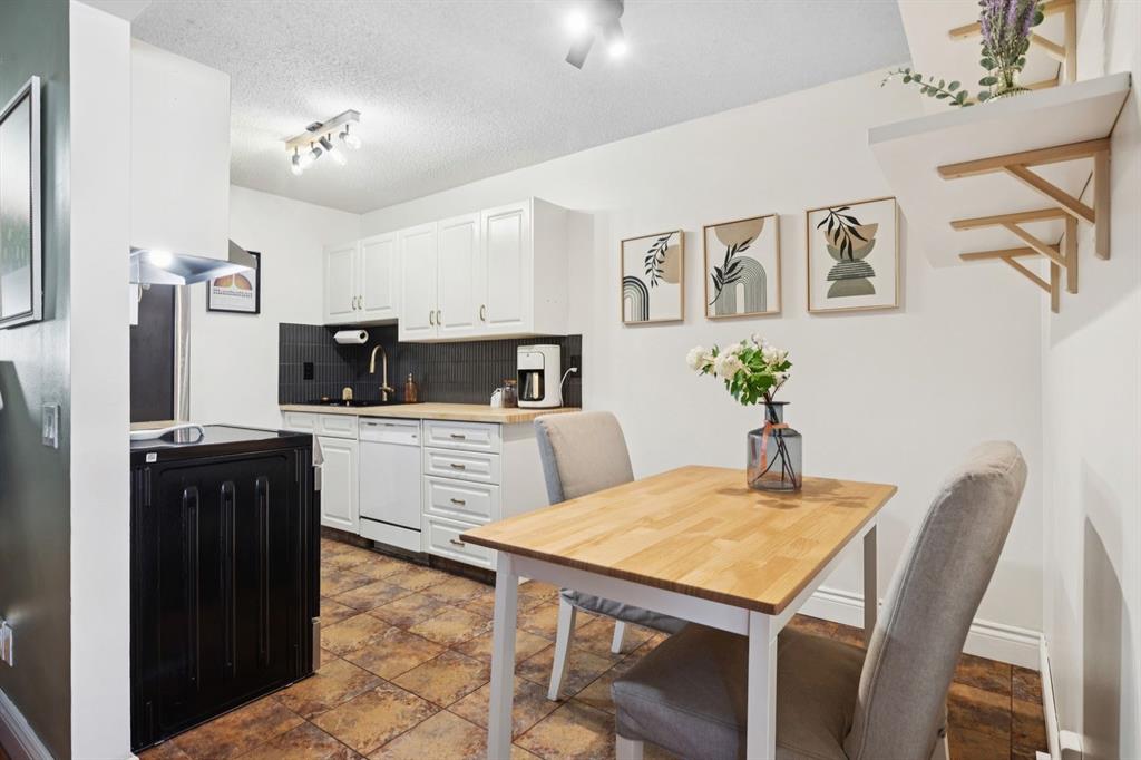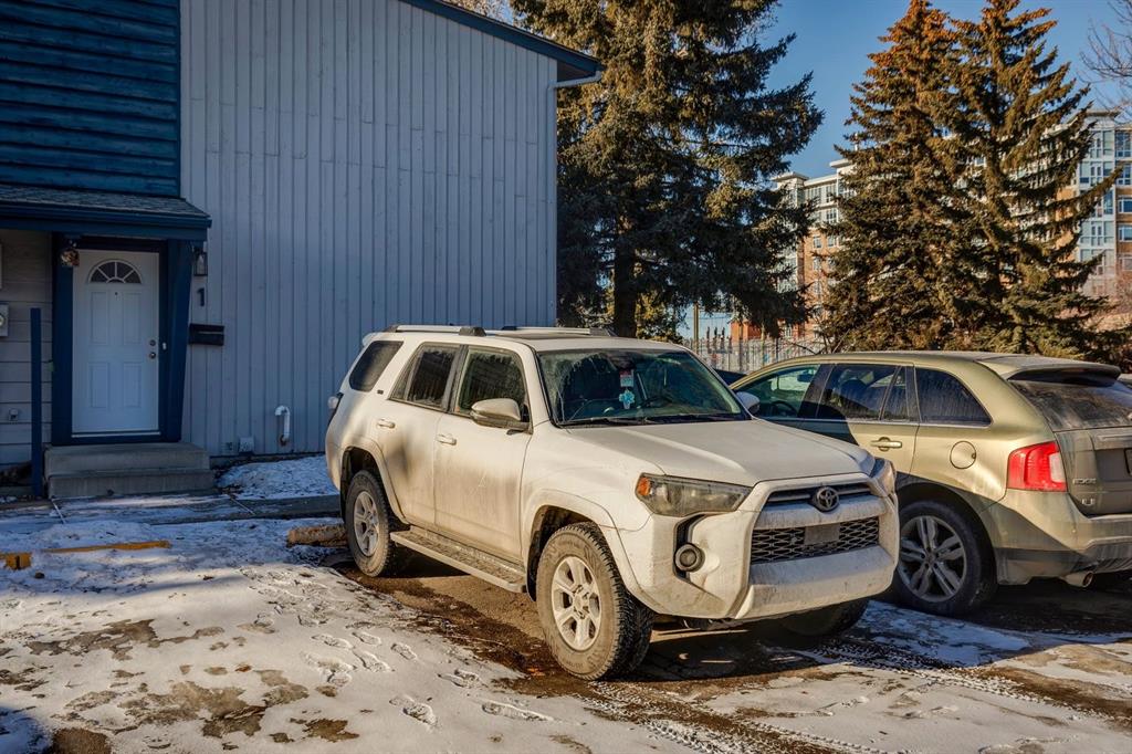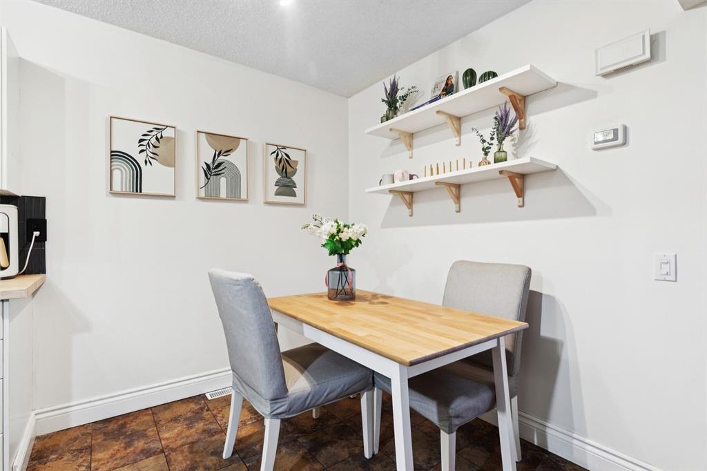 Welcome to Varsity Estates Village, this is one of Calgary’s most sought after and exceptionally well-managed townhome communities, known for its pride of ownership, strong management, and unbeatable long term value. This is your opportunity to own in a prime Varsity location, offering the perfect balance of safety, convenience, and lifestyle. Just minutes to the University of Calgary, major hospitals, downtown, parks, walking paths, and golf courses, this location is ideal for first time buyers, professionals, or savvy investors looking for a solid property in a high demand area. This beautifully updated, move-in ready two storey townhome immediately impresses. A welcoming foyer opens into a bright, spacious living room featuring a stunning corner stone-faced wood burning fireplace, the perfect centre piece for cozy winter nights or to set a nostalgic ambiance. The kitchen has been thoughtfully renovated with both style and function in mind, showcasing stainless steel appliances, crisp white cabinetry, warm wood countertops, a deep granite sink, and elegant gold hardware. The adjacent dining area offers ample space to entertain or enjoy everyday living. Durable laminate flooring flows throughout the main level, complemented by a fully renovated two-piece powder room for added convenience. Step outside to your private, fully fenced front patio which is an ideal space for morning coffee, summer BBQs, or unwinding in the evening sun with friends. Upstairs, you’ll find a beautifully refreshed 4-piece bathroom featuring a deep soaker tub, updated vanity, and excellent storage. The primary bedroom is bright and inviting with large windows and a full-size closet, while the second bedroom is generously sized making it perfect for guests, a roommate, or to be used as a home office. The fully developed basement adds incredible versatility with a cozy family room and a flexible space currently used as a gym. This area is easily adaptable for a home office, studio, or hobby area. The laundry and utility room also provide additional storage. Extensive updates include newer vinyl flooring, appliances, renovated kitchen and bathrooms, and a fresh paint throughout which offers you a true move in ready with a peace of mind. A dedicated parking stall is conveniently located just steps from the unit. The professionally managed complex features reasonable condo fees and a strong reputation, making this an excellent investment opportunity or place to call home. With its stylish updates, private outdoor space (ideal for pets), unbeatable location, and exceptional value, this is one of the best opportunities currently available in Varsity. Book your showing today, this one stands out!