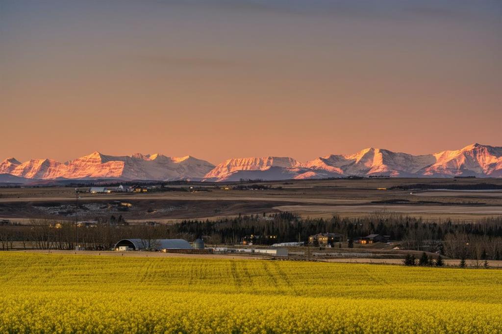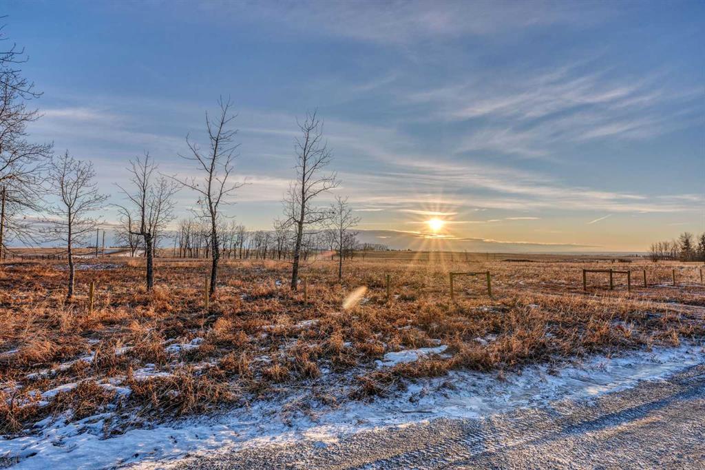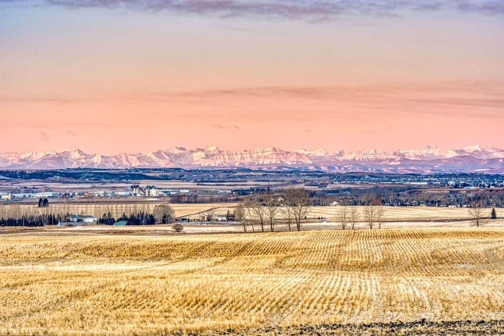 Prime Alberta land. Strong water. Services along the property line.Endless views. Incredible neighbours yet spectacular privacy. Imagine building your country dream home on a picturesque 5 acre parcel in the coveted Gladys Ridge area, just East of Okotoks and only 20 minutes south of Calgary. Thoughtfully shaped by nature, the property features pockets of mature trees, expansive valley views and distant city vistas, all anchored by a brand new drilled well producing a strong 5 gallons per minute, a highly desirable water supply for rural living. The land gently opens toward the horizon, creating an ideal canvas for a custom country residence where styles such as modern farmhouse, prairie contemporary, timeless ranch or the popular craftsman would feel perfectly at home. From your future windows and outdoor living spaces, enjoy sweeping views of the majestic Rocky Mountains, ever changing skies and unforgettable sunsets that paint the foothills nightly. Days begin with the sun rising over golden farmer’s fields that seem to stretch forever, while evenings invite star gazing, wide open skies and the occasional northern lights dancing above the ridge. Located across from an equestrian ranch and surrounded by rolling wheat and canola fields, this setting offers a peaceful rhythm of country life with the simple joy of walking along the nearby ridge and taking in the spectacular mountain peaks in the distance. Despite its serene and private feel, this property is just minutes from Okotoks and approximately 20 minutes to Calgary, offering easy access to top schools, sports arenas, and the South Campus Hospital and an abundance of dining and shopping amenities. With no architectural controls or timelines to build, fencing in place, strong water supply, and all the services (electricity/gas) located along the property line, this is a rare opportunity to create your dream home exactly as you envision it on prime Alberta land, surrounded by great neighbours, natural beauty and space to truly breathe.