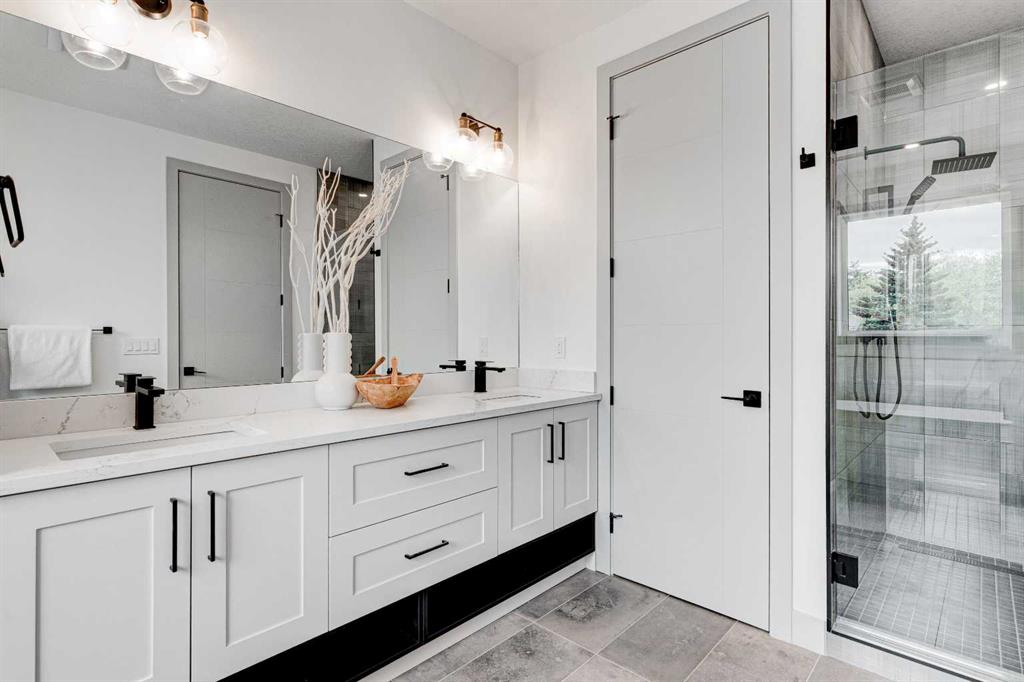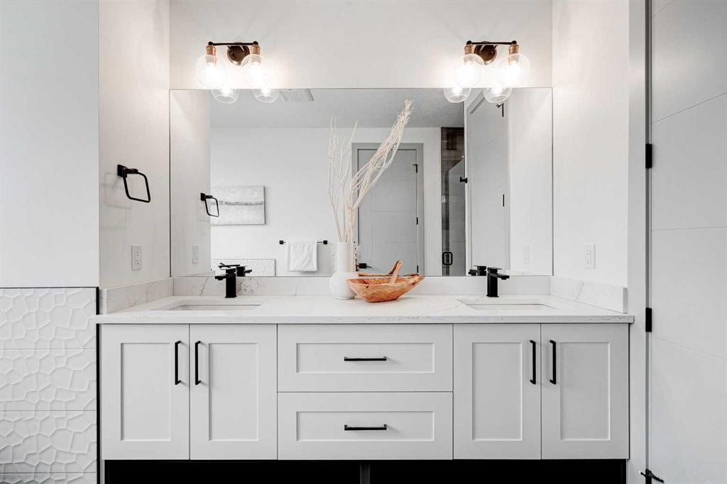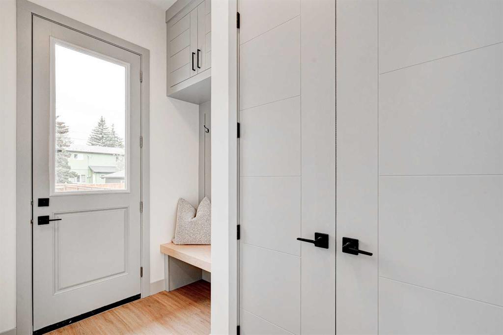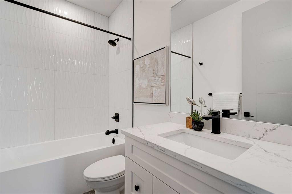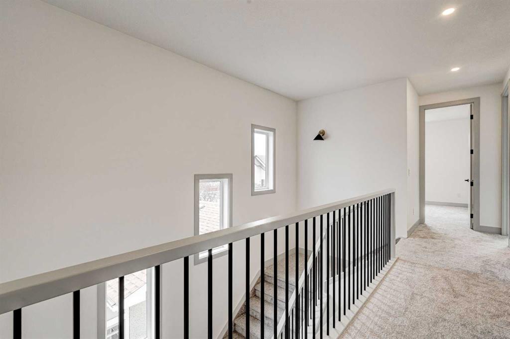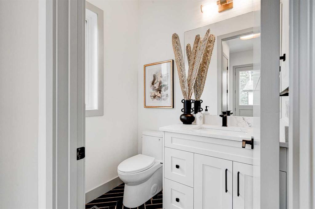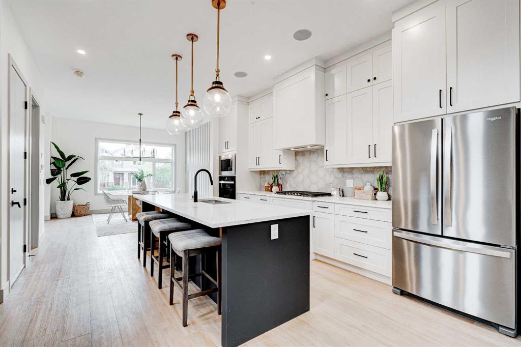 This modern semi-detached home is a stunning blend of thoughtful design and functionality, perfect for anyone looking to elevate their living experience! Located in the heart of Bowness, it offers the perfect mix of urban convenience and peaceful surroundings. Outside, this home has serious curb appeal, w/ a sleek black and white Smartboard exterior that pairs beautifully w/ carefully designed landscaping, and has a 10/10 location next to the park! Out back, there’s a private patio ready for summer BBQs, complete w/ a gas hookup to make entertaining a breeze. Inside, the space is bright and airy w/ 10-ft ceilings on the main floor. The kitchen is a dream for anyone who loves to cook or entertain, w/ custom two-tone shaker cabinets, quartz countertops, and a massive island that acts as both a centrepiece and functional workspace. High-end stainless-steel appliances, including a gas cooktop and built-in oven-microwave combo, make it as practical as it is beautiful, along w/ the large walk-in pantry for all your storage needs. Enjoy everyday meals and family get-togethers in the dedicated dining room w/ a designer chandelier and stunning feature wall, then spread out into the open-concept living room, which features a stunning gas fireplace w/ crystal glass details. Rounding off the main floor is a lovely custom mudroom w/ a built-in bench and private powder room perfect for guests and everyday use. Upstairs, the primary suite is an absolute sanctuary, w/ oversized windows, an extra-large walk-in closet, and a 5-pc ensuite that acts as your own private spa, w/ a freestanding soaker tub, a walk-in shower w/ rain showerhead, dual vanity, and a full-height mirror w/ inset lighting that adds a touch of luxury. Two additional bedrooms on this floor are spacious and bright, w/ quick access to the main bathroom and a convenient upper-level laundry room. The basement is fully finished and includes a LEGAL SUITE w/ its own private entrance. It’s a fantastic option for generating rental income, hosting long-term guests, or even creating a separate space for family members. The suite features a full kitchen, a cozy living area, two bedrooms, and a full bathroom—all finished w/ durable luxury vinyl plank flooring for a sleek and modern look. Throughout the home, you’ll find matte black finishes on all hardware and stylish LED pot lights. It’s also ready for easy upgrades, w/ rough-ins for air conditioning already in place. And the location? Couldn’t be better! You’re next to a park with a skating rink, minutes from the beautiful trails and lagoon at Bowness Park, a local favourite for outdoor activities. The neighbourhood is packed w/ amenities, including charming cafes, boutique shops, and more. For families, there are fantastic schools and playgrounds nearby, including Bowness High School, and commuting is simple w/ quick access to Stoney Trail and 16th Ave! Call today to view!