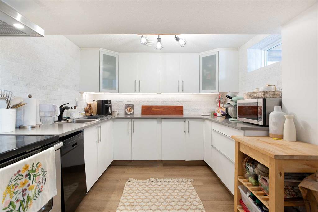 Located on a large corner lot in the established community of Kingsland, this bungalow offers space, flexibility, and a layout that works for a variety of living situations. The main floor features exposed brick accents and thoughtful updates throughout. Upstairs you’ll find a generous primary bedroom with its own ensuite, plus a convenient half bath connected to the main living space. An office/den and dedicated laundry room/mudroom on the main floor adds practical day-to-day function. The basement includes an illegal suite with two bedrooms, one full bathroom, a full kitchen, and separate laundry. Well suited for extended family or additional income potential. Outside, the 24’ x 24’ detached double garage provides ample parking and storage. The corner lot offers extra outdoor space, and the location puts you close to transit, shopping, schools, and major routes. A solid property in a well-connected neighbourhood.
