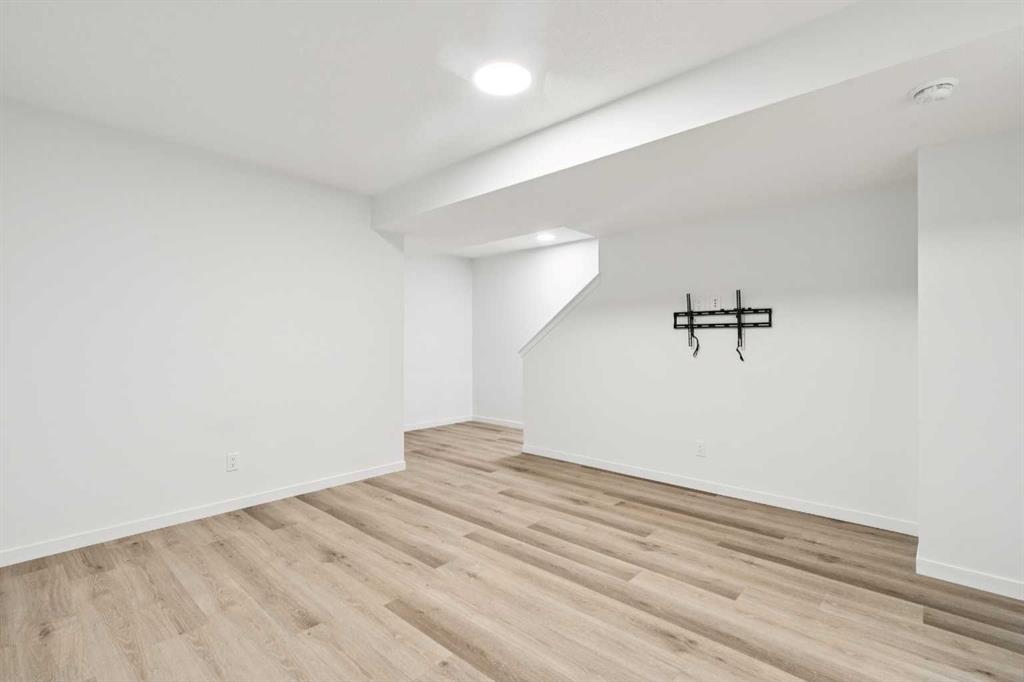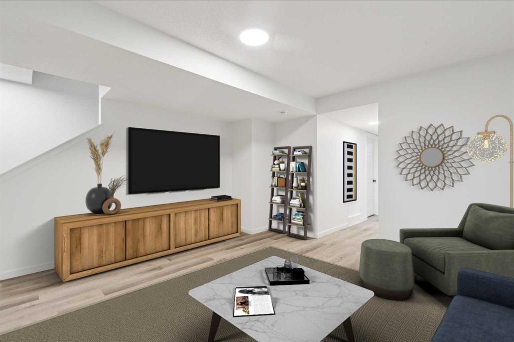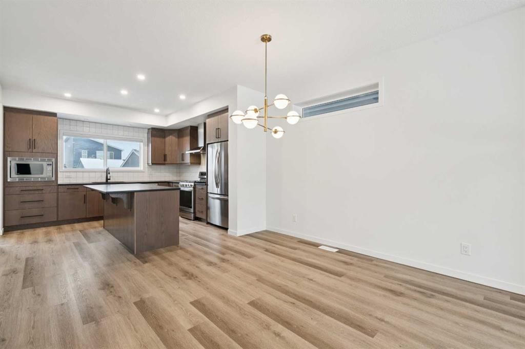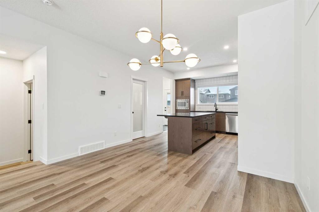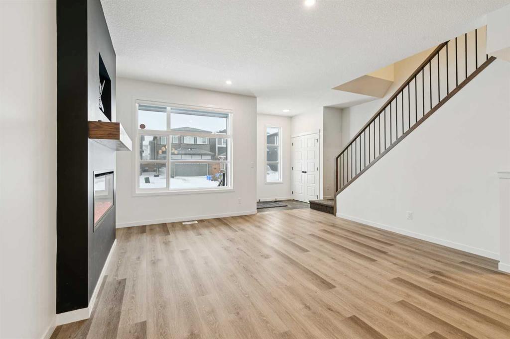 Boasting over 2130Sq Ft, with 3+1 bedrooms of fully developed living space, this gorgeous detached home offers stunning designer style comfortable modern living. Natural light floods the home with the ideal South facing exposure, where the foyer blends into the open living, dining and kitchen area. Tastefully finished subtle designer tones complement the earthy, timeless aesthetic of this home. The great room features luxury vinyl plank flooring throughout with a focal 50" electric fireplace with sleek custom oak mantle giving the living room flexible layout options. The kitchen is a chef's dream, featuring a spacious pantry, an amazing over sized island with upgraded quartz counters and loaded with custom designed drawers. Enjoy the gas range and counter depth refrigerator offering easy everyday function and convenience. Continuing on the main level, you'll find a convenient powder room, perfect for guests and daily use and a spacious mud room with bench and hooks for easy daily function. Upstairs, the primary bedroom is flooded with natural light and offers a spacious walk-in closet and ensuite with oversized shower. The two extra bedrooms are perfect for family members or guests, and they share a beautifully appointed central 4pc family bathroom. Enjoy the convenience of an upstairs laundry room with a full length hanging rack and additional shelving. The basement is thoughtfully designed by the builder with a generous family room, perfect for entertainment and relaxation, a 4-piece bathroom for added convenience and a fourth bedroom. The lighting throughout this home has been thoughtfully upgraded to recessed LED's which create an ambiance that is both warm and inviting. The exterior of this home is equally impressive, with a fully landscaped & fenced yard that adds to its curb appeal and creates a welcoming outdoor space for entertainment. A paved back alley-way provides access to space for secure parking or future dbl garage. This newer Morrison Home in Belmont offers a fresh and comfortable living experience, blending contemporary design, functional elegance, and a sense of community that makes it a true gem. Across from a possible future school area and easy access to excellent commuter routes and shopping amenities. Presented in pristine move-in ready condition and available for quick possession!
