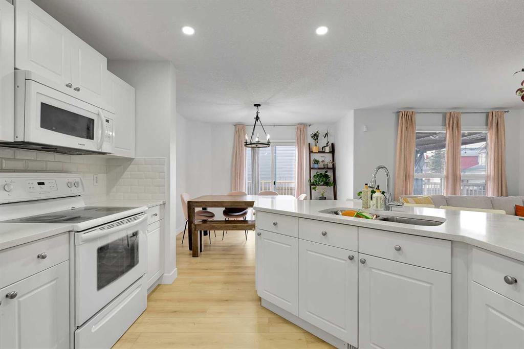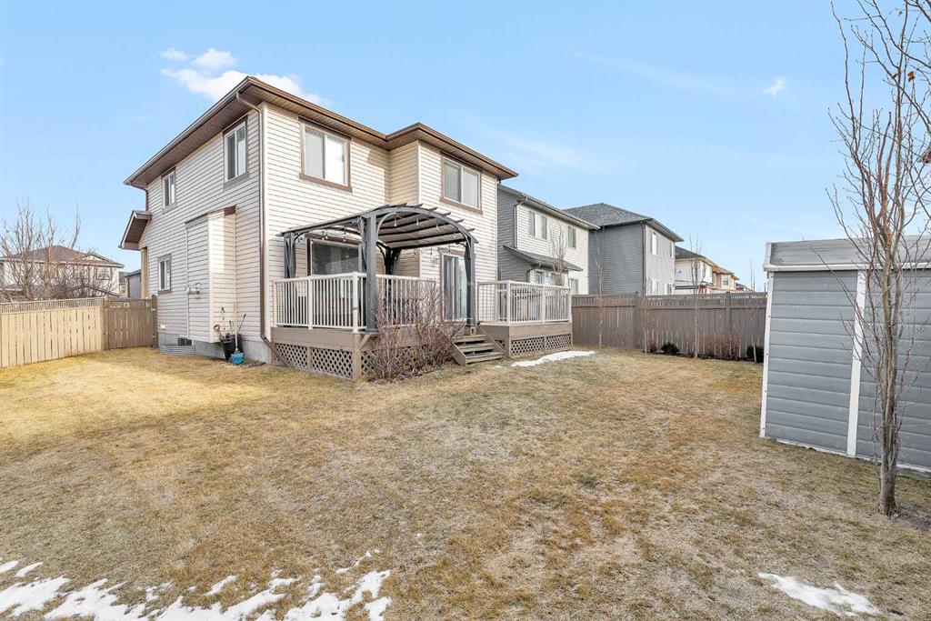 Welcome to this beautifully maintained detached home complete with an illegal suited basement, ideally positioned on a spacious corner lot in the vibrant community of Saddleridge. Offering over 2,300 sq ft of developed living space, this impressive 2-storey residence features 4 bedrooms, 3.5 bathrooms, and a double attached garage. Step inside to a bright, open-concept main floor highlighted by vinyl floors. The expansive living room, complete with a cozy gas fireplace, flows seamlessly into a well-appointed kitchen boasting white cabinetry, quartz countertops, a large island with breakfast bar, white appliances, and a separate pantry, perfect for family living and entertaining. Upstairs, you'll find a versatile bonus room, alongside 3 generously sized bedrooms. The primary suite offers a private retreat with a 4-piece ensuite and large walk-in closet. A convenient 4-piece main bath and laundry room complete the upper level. The fully finished illegal suited basement extends your living space with a spacious family/recreation room, kitchenette, an additional bedroom, 3-piece bathroom, and a laundry unit, ideal for guests or extended family. Enjoy summer days and evenings on the large, covered backyard deck, perfect for barbecues and gatherings. A double attached garage sits on a driveway providing ample parking for multiple vehicles. Situated close to schools, parks, playgrounds, shopping, dining, and the Genesis Centre, with easy access to Stoney Trail, this home offers exceptional convenience and lifestyle. Ideal for large or growing families. Don’t miss your chance to make this wonderful home yours - book your private showing today!