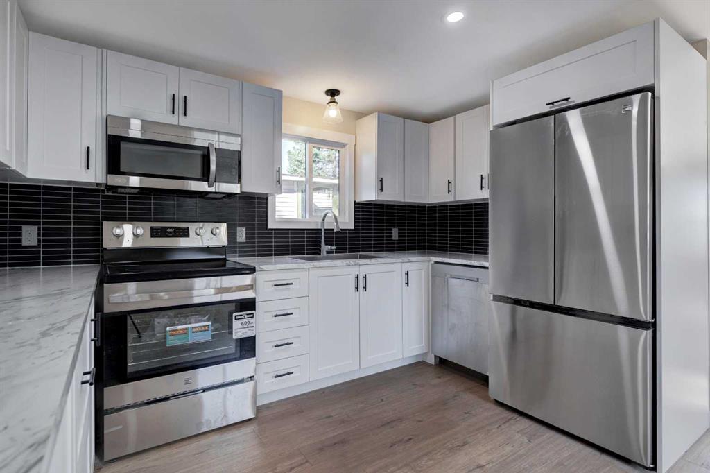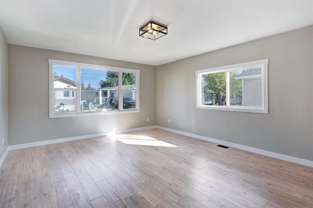 Don’t wait to view this property - you won’t be disappointed! Fully renovated 2 bed, 2 bath mobile home in the conveniently located Mountview Mobile Home Park. FULLY RENOVATED WITH ALL OF THE BIG TICKET ITEMS DONE! WINDOWS, FURNACE and newer HWT, NEW PEX WATERLINES (installed in-floor), KITCHEN, BATHROOMS, DOORS, BASE AND CASE, SIDING, SKIRTING, DECKS, DRYWALL THROUGHOUT, FLAT PAINTED CEILING. This home has a great layout with a large, sunny living room, spacious kitchen with brand new kitchen cupboards, new modern laminate countertops, pot lights, tiled backsplash, new stainless steel appliances and a good size eating area. You will find Laminate flooring throughout with Vinyl plank in the bathrooms. The home is painted in a modern color palette designed to suit any decor, has new lighting throughout, a spacious hallway leading to the large 4-pce bath with new tub, toilet and vanity. A redesigned floor plan includes a separate laundry area and a 3 piece bath with a storage cabinet, toilet and vanity, along with a stacked washer and dryer. The large living brings in lots of light. The primary bedroom is spacious with a large closet. The second bedroom is a good size and can be used as an office or flex room. This home sits on a large lot with ample parking in the laneway. Lot rent of $1100 per month includes water, sewer, garbage pickup and snow removal. Unbeatable location: Enjoy quick access to 17 Ave SE, Stoney Trail, Deerfoot Trail, and downtown Calgary. Transit is just a block away, while East Hills Shopping Centre, International Avenue, restaurants, and all amenities are minutes from your door. Plus, Elliston Park—home of Globalfest—is right across the street This move-in ready home offers exceptional value for the price. Don’t miss your opportunity—schedule your viewing today and picture yourself settling into this beautifully updated, conveniently located home!