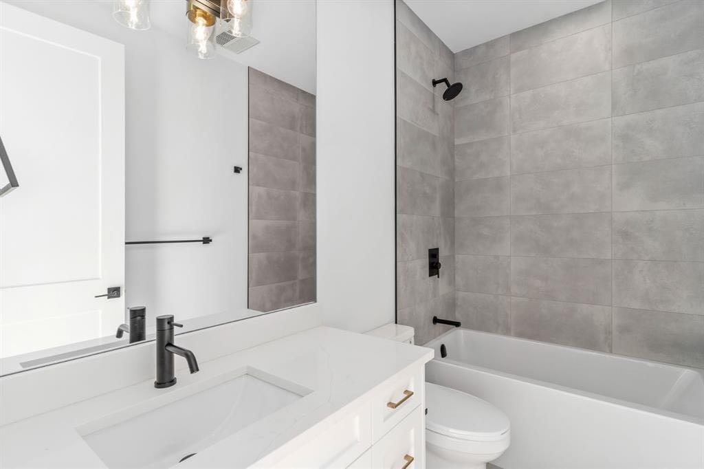 Step inside a prestigious brand new townhome in the heart of the inner city SW. Ideally located nearby popular amenities including the Killarney Aquatic Centre, Westbrook LRT Station, 17th Ave SW, Shaganappi Golf Course, multiple greenspaces and bicycle pathways. This 2.5-storey oasis embodies functional design that integrates modern finishing selections across four spacious levels. The welcoming open concept layout showcases a large kitchen island, accompanied by stainless steel appliances, quartz counters, undermount sink and tile backsplash. Follow sleek white oak luxury plank flooring into the adjacent living area that centers around a cozy gas fireplace. Upstairs await three large bedrooms, including the primary retreat with a private walk-in closet and 5 piece ensuite with in-floor heating. The third level is an entertainer's delight, fully equipped with a wet bar, full bathroom, versatile flex area and almost 300 SF serene rooftop patio. A legal 1 bedroom 756 SF suite in the basement with in-floor heating provides a unique opportunity for generating rental income, incorporating multigenerational living, or simply expanding on your current lifestyle needs. Enjoy a convenient and vibrant pedestrian-friendly community, with the added perks of condo maintenance and secured parking in a nearby detached garage. Expected completion June 2026.