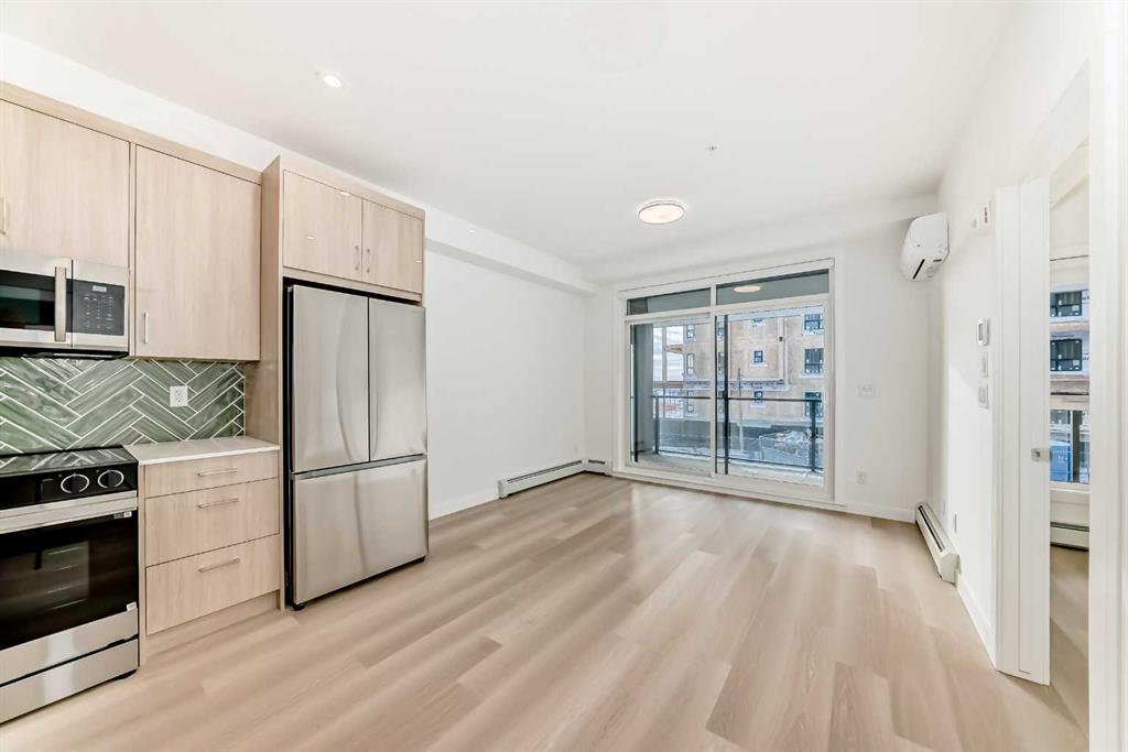 Welcome to the Curnoe 2 by Logel Homes—a well-designed unit featuring full-height cabinet fronts, quartz countertops, luxury vinyl plank flooring throughout, and tile in the bathroom. The upgraded kitchen includes a modern backsplash, a premium sink and faucet, and comes with stainless steel appliances. Enjoy year-round comfort with air conditioning, plus the convenience of an in-suite washer and dryer. Nine-foot ceilings and large windows provide plenty of natural light. This home includes a titled underground parking stall and is backed by the Alberta New Home Warranty. Located close to shopping, public transit, and major routes like Deerfoot and Stoney Trail, it offers easy access across the city. With affordable condominium fees, this is a great opportunity to own a well-appointed home in a convenient location. Quick Possession Available