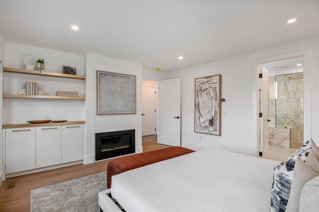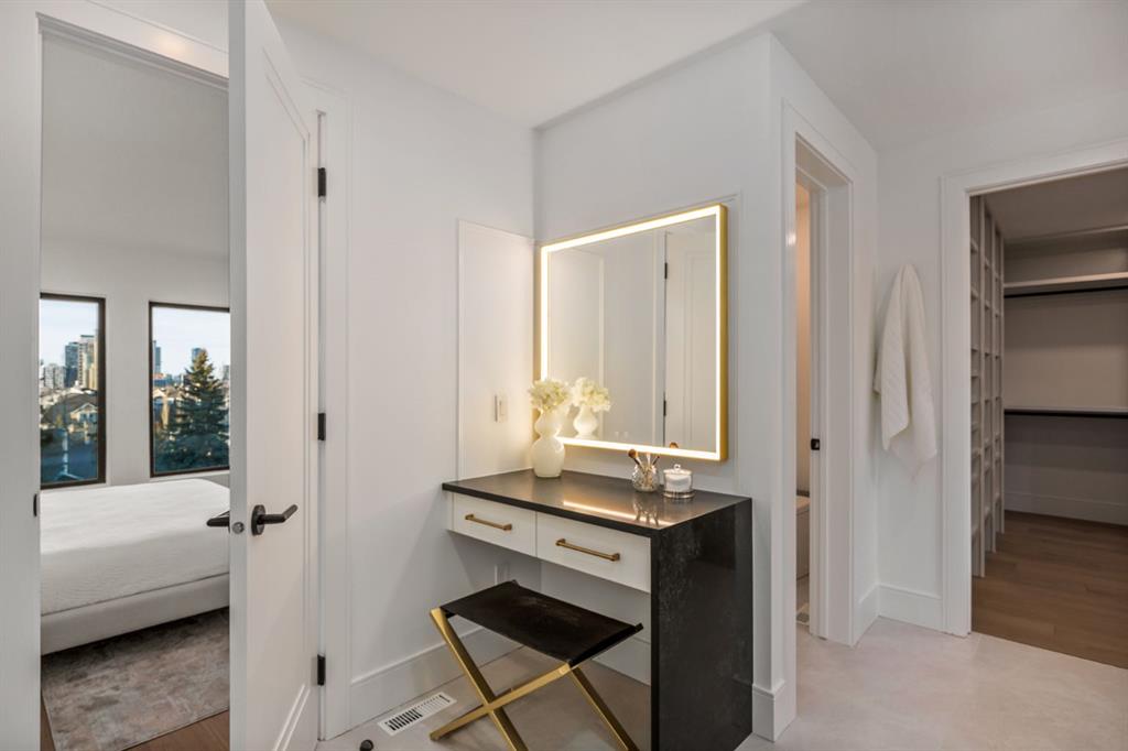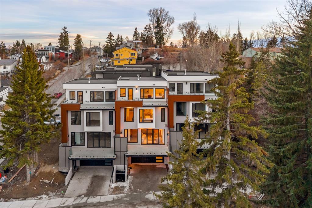 Come fall in love at our Open Houses Saturday March 28th 11AM-2PM & Sunday March 29th 1PM-4PM. This three storey townhome incorporates modern-traditional interior design elements for a sophisticated and timeless aesthetic. Perched upon a hill in one of Calgary's most iconic river communities overlooking the picturesque skyline, this brand new unit is a culmination of high quality materials, thoughtful finishing selections, and grand inclusions. The attached triple car garage and private elevator are characteristic of the many luxurious additions strategically embedded within this home. The main floor layout includes a chef's kitchen with premium panel-ready appliances, dining room, living area with gas fireplace, powder room, wet bar, built-in desk area, main floor balcony with sweeping city views, and an outdoor BBQ deck at the rear. On the second level there are two bedrooms, each with walk-in closets and full ensuites, along with a large built-in laundry area with sink and shelving, and a versatile den. The third floor is occupied almost entirely by a spacious primary retreat with another gas fireplace, walk-in-closet, an attached 6 piece ensuite including a steam shower, air jetted tub, bidet, make-up vanity and in-floor heating, along with an additional wet bar, and a third level balcony (designed and loaded for a hot-tub) overlooking the city and nearby Elbow River. This intentional floorplan prioritizes comfort and convenience while maximizing utilization of space. Intricate millwork, ornate wall and ceiling mouldings, a curved, ribbed kitchen island, brush gold accents, 9 foot ceilings, and herringbone hardwood all work together seamlessly to emulate carefully curated beauty. With unrivalled cityscape views, this home is a testament to deluxe inner city living. Notable specifications include: quartz countertops, Spanish porcelain tile, engineered European Oak hardwood, custom designed casing/mouldings, designer light fixtures, LED backlit built-in bookcase, millwork built-ins, satin brass and matte black hardware, European style tilt and turn windows with ticker individual panes of glass, along with rough-in for a security system. The expansive epoxy finished garage also includes EV rough-in, a built-in closet space to be used as a mudroom, and the flexibility to convert a large portion at the rear into a home gym or workshop area in lieu of a third vehicle. This home is situated amongst the natural landscape of the river pathways and surrounded by some of the city's most notable landmarks in the peaceful community of Erlton. Quickly access the shopping and dining opportunities along 4th street, the brand new Convention Centre, Calgary Stampede Grounds, and get to the downtown core in minutes.