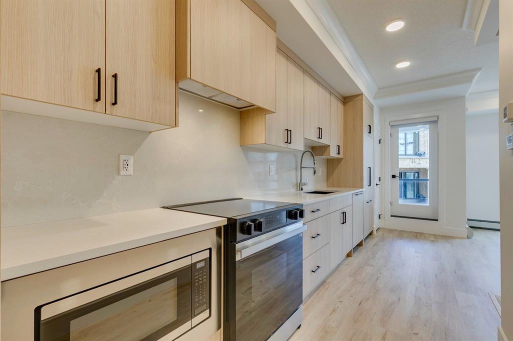 Welcome to The Rosa, a magazine-worthy corner unit condo in Dean's Landing that redefines modern living. This brand-new, never-occupied residence features 422.27 sq ft of thoughtfully designed space, boasting lofty 9' to 10' ceilings and an abundance of natural light from large windows. Step outside to your own private 56 sq ft balcony, perfect for hosting summer barbecues or enjoying a serene morning coffee. The chef-inspired kitchen offers ample countertops and a dedicated pantry, while the spacious bedroom accommodates a queen-size bed with ease, complemented by a large closet. Convenience is key with in-suite laundry facilities discreetly placed away from the living areas. The unit includes a titled parking stall, and the building is secured with heated underground parking, bicycle storage, and an electric charging stations. Nestled in Rohit's Deans Landing., The unit is just moments away from shopping and dining in the award-winning University District, as well as the University of Calgary,Market Mall, Children’s and Foothills Hospitals. Enjoy nearby parks, scenic pathways, schools, and recreation centers, making this the perfect home for students, professionals, and families alike. Experience the ultimate blend of style, comfort, and convenience in University District —your new place to call home awaits! Book to view!