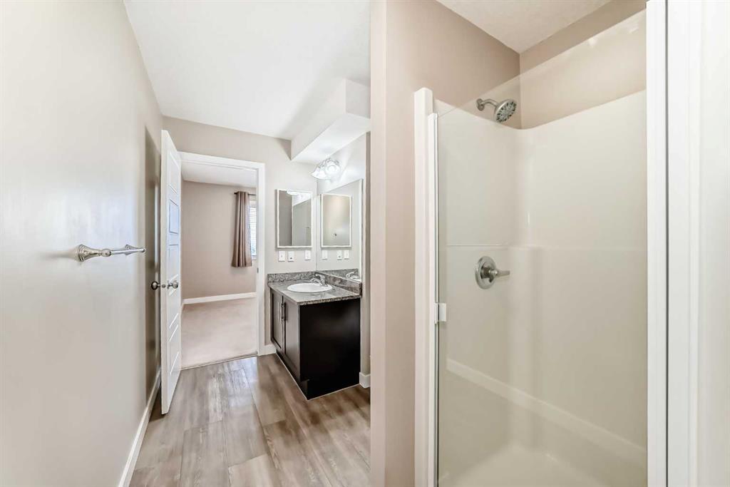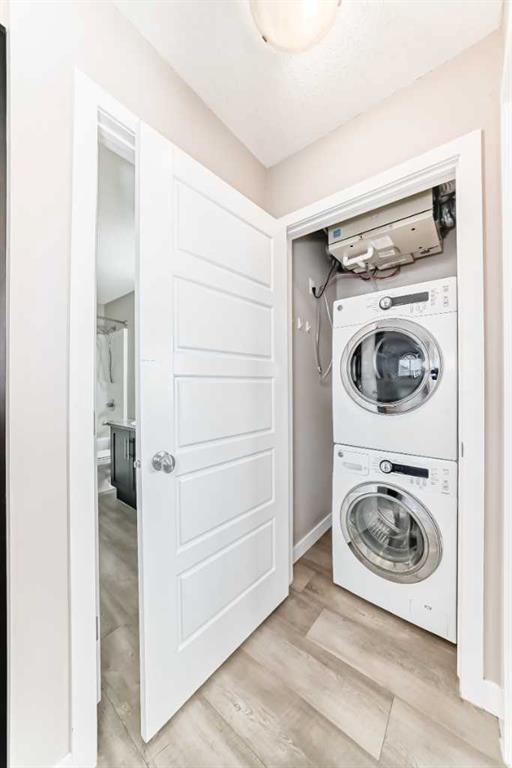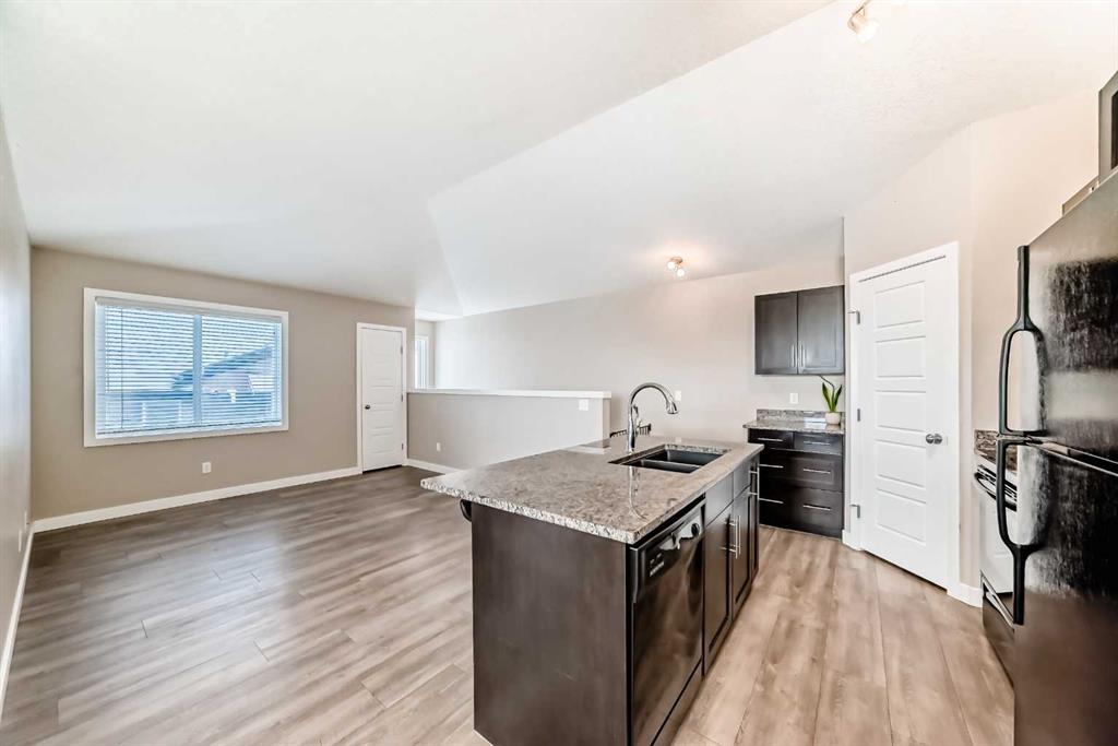Welcome to your Dream Home! This immaculate 2 BEDROOM, 2 BATHROOM Stacked Upper Unit Townhome with 2 PARKING STALLS offers a perfect blend of comfort and convenience, situated just steps from the beautiful Chinook Winds Park. Enjoy easy access to roadways and nature right outside your door. Step inside to discover a thoughtfully designed interior featuring a spacious living room with a striking pitched ceiling that enhances the sense of space and light. As an end unit with an abundance of windows, the home floods with natural light, creating a warm and inviting atmosphere. The open layout offers plenty of options for furniture placement, allowing you to create the perfect arrangement for your lifestyle.The expansive kitchen features espresso coloured cabinetry and elegant Granite countertops. Sleek black appliances and a central island with seating make this the perfect spot for casual dining or entertaining, while a large walk-in pantry provides ample storage for all your kitchen essentials. The kitchen flows into a sunny dining nook with access to the west-facing balcony, the perfect place to enjoy morning coffee, evening cocktails, or barbecuing with friends. The large primary bedroom boasts a spacious walk-in closet and a luxurious 3-piece ensuite with a shower, providing a private retreat for relaxation. The sunny second bedroom, with windows on two walls, is ideal for a guest room or an inspiring home office. A convenient laundry closet with a washer and dryer is located in the hallway. This home also features in-floor heating, ensuring comfort during the colder months.With TWO easily accessible PARKING STALLS (one Titled and one Assigned), plus easy access to visitor and street parking nearby, convenience is at your fingertips. Location is key, and this townhouse doesn’t disappoint! It is ideally situated close to pathways, parks, ponds, schools, shopping, and amenities, making daily life a breeze. This home is clean and move-in ready. Condo fees include HEAT, WATER, SEWER, and TRASH. Don’t miss out on this opportunity to own a beautiful home in a fantastic location! This is the Airdrie home you have been waiting for. Pets are allowed with board approval.