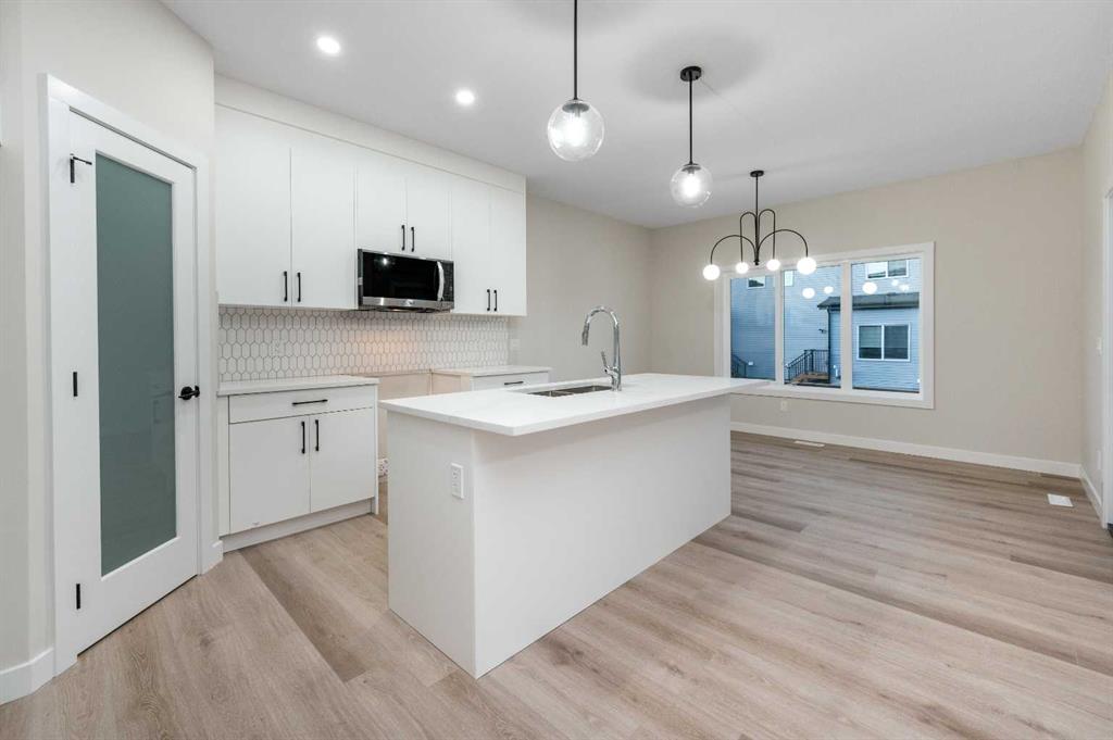 ***QUICK POSSESSION*** FRONT DOUBLE GARAGE, WIDER CORNER LOT, 3 Bedrooms + Bonus Room + Den | 2.5 Baths | The most popular Moana model on over 34.5 feet wide lot, situated in the community of Waterford, minutes from the Chestermere lake. Experience the epitome of open concept living, featuring upgrades such as 9 feet Ceilings on main floor and basement, metal spindles on railing, 3cm quartz countertops, LVP flooring, under mount sinks, convenient upstairs laundry and so much more! Great room includes an electric fireplace with feature wall which adds style and warmth perfect for chilly nights. The kitchen is completed with a huge island, perfect for gathering families and friends, soft close cabinets and drawers throughout, spacious pantry plus large counter space, new appliance package including GAS range, built-in microwave, french-door refrigerator and dishwasher. The dining room is spacious enough to host a big family. Upstairs, indulge in the comfort of your perfectly sized central bonus room, ideal for the quality family time together. Retreat to the spacious master suite with a 5-piece ensuite and walk-in closet for a relaxing escape. The two secondary bedrooms, both with walk-in-closets, a 3-piece bath with another standing shower and conveniently located laundry room complete the second level. The basement is unfinished but comes with 9 feet ceiling, separate side entrance and a mechanical room moved to a corner for ease of future development. Proximity to the CALGARY, schools, diverse retail and culinary delights are just some of the highlights. Call to book your showing now !!!!!!!