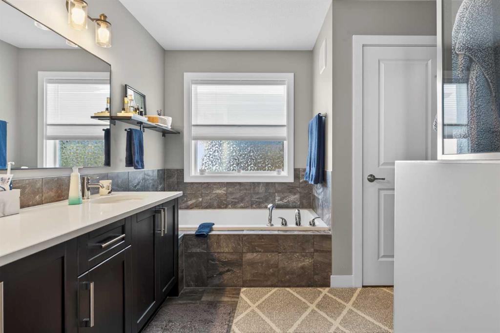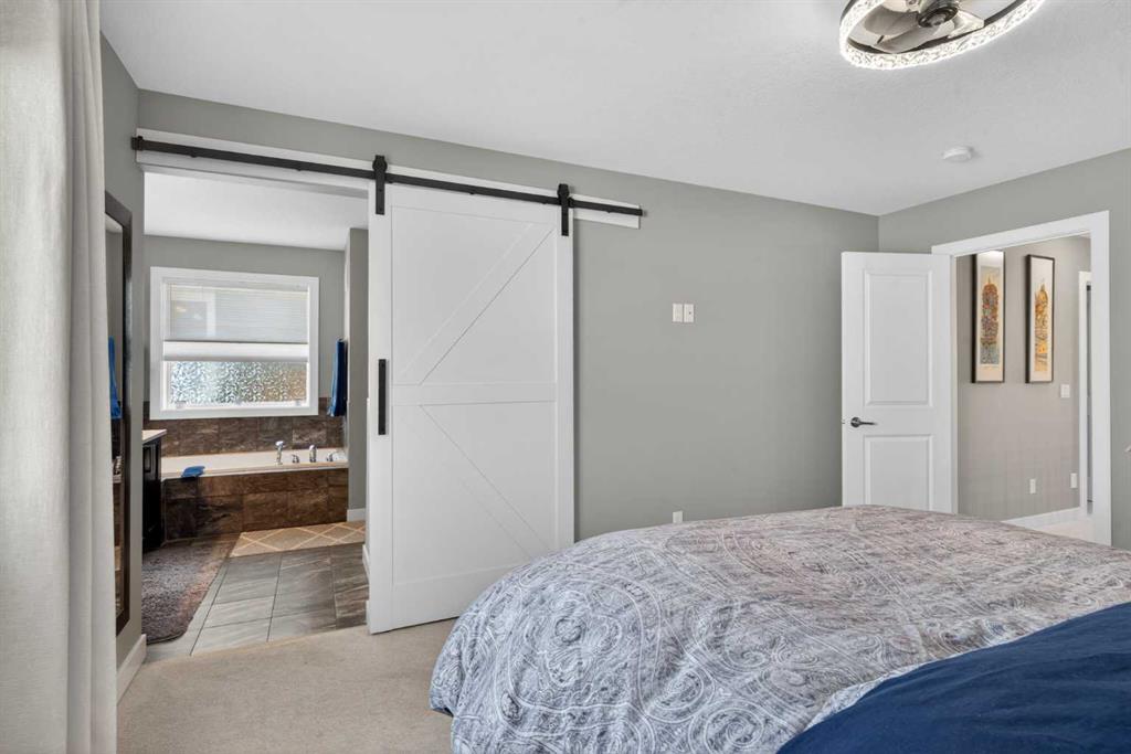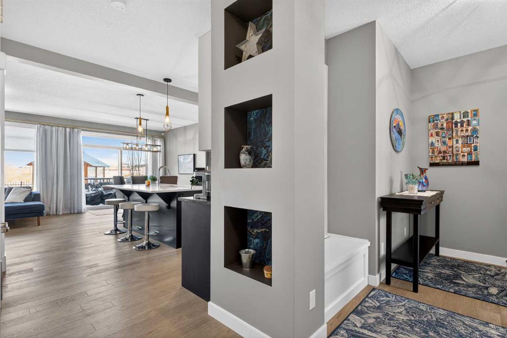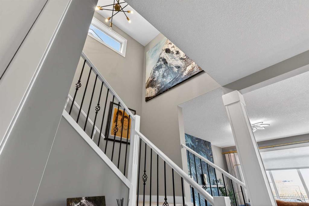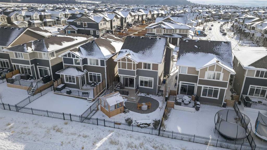 Backing onto a greenbelt & future school site is where you’ll find this truly wonderful home in Cochrane’s popular Sunset Ridge neighbourhood, tucked away on this quiet crescent within walking distance to community playgrounds & parks. Original owners of this Douglas Homes’ two storey, which enjoys engineered hardwood floors & solar panels, total of 3 bedrooms + bonus room, stylish designer kitchen with quartz counters & beautifully landscaped backyard with winding gardens & greenhouse. Bathed in warm natural light, you’ll love the bright & inviting feel of the main floor with its 9ft ceilings & expanse of windows, gracious living room with sleek contemporary fireplace, open concept dining room & outstanding custom kitchen with walk-in pantry, large centre island & stainless steel appliances which includes a Samsung dual-fuel gas range/electric convection oven. Upstairs there are 3 lovely bedrooms & 2 full bathrooms…highlighted by the owner’s retreat with great-sized walk-in closet, views of the greenbelt & soothing soaker tub ensuite with barn door, quartz-topped double vanities & separate shower. Away from the bedrooms is the terrific air-conditioned bonus room with vaulted ceilings…the perfect space to unwind or relax with the family. The unspoiled lower level – with separate side entrance, has roughed-in plumbing for another bathroom & large windows, & offers fantastic potential for future living space. Additional features include the 2nd floor laundry room with Whirlpool washer & dryer, built-in bench in the foyer, roughed-in for radon detector, finished garage with wall-slats, Tesla solar panel system with battery back-up & the piece-de-resistance is the dream backyard oasis complete with deck & stone patio, ornamental pond & fountain, low-maintenance landscaping & greenhouse…which would also make a great place for your hot tub! Leisurely stroll to a playground & the tranquil 6 acre freshwater pond surrounded by winding trails & gazebos, just minutes to the K-8 RanchView School & St Timothy Junior/Senior High, shopping at The Trading Post & quick easy access to downtown Cochrane.