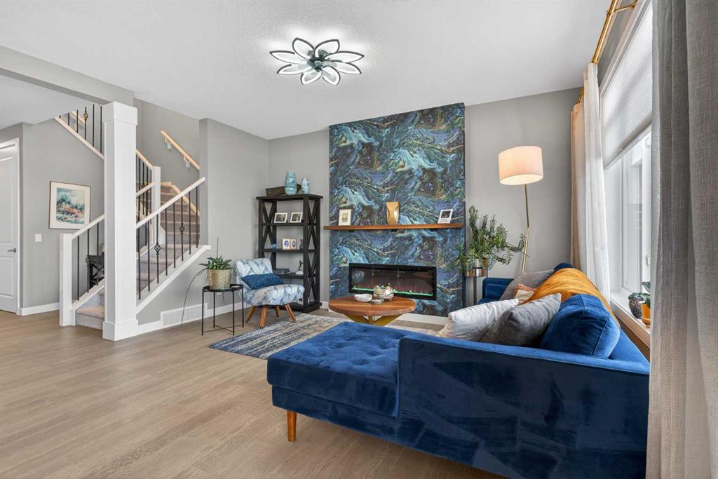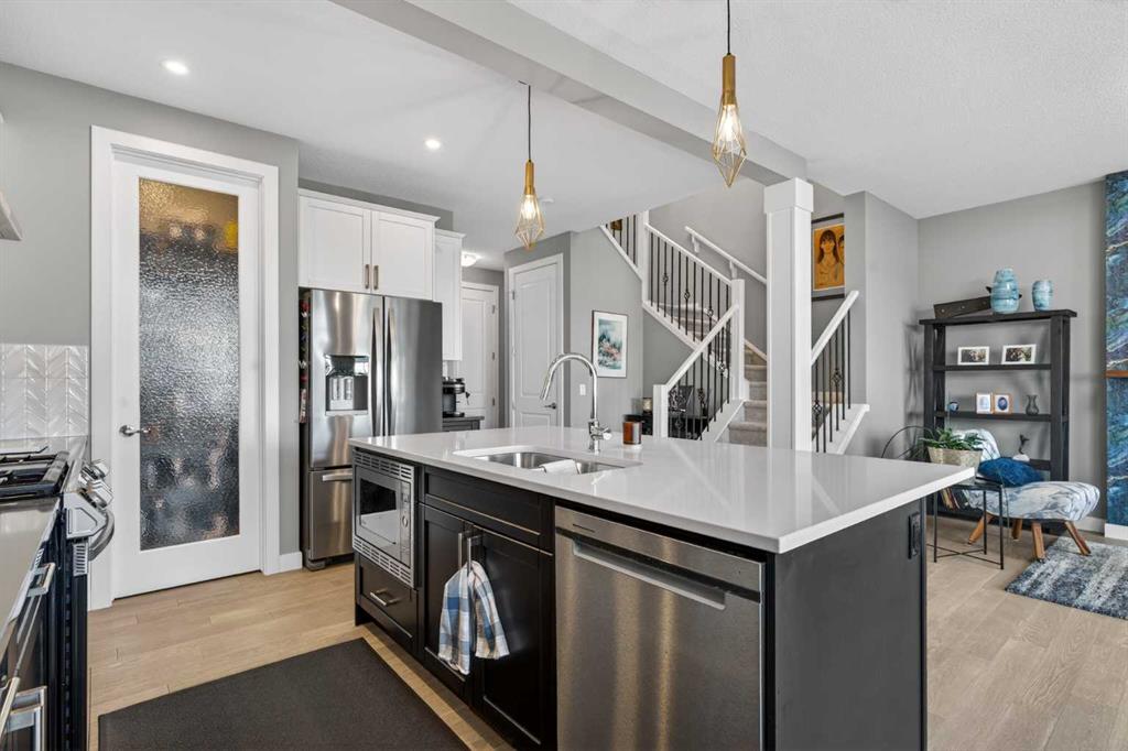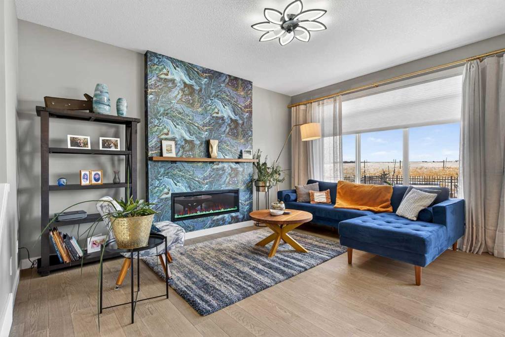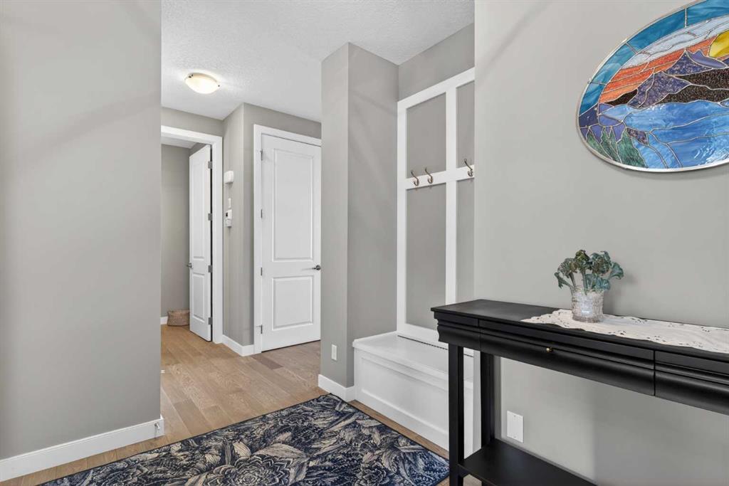 Backing onto a greenbelt & future school site is where you’ll find this truly wonderful home in Cochrane’s popular Sunset Ridge neighbourhood, tucked away on this quiet crescent within walking distance to community playgrounds & parks. Original owners of this Douglas Homes’ two storey, which enjoys engineered hardwood floors & solar panels, total of 3 bedrooms + bonus room, stylish designer kitchen with quartz counters & beautifully landscaped backyard with winding gardens & greenhouse. Bathed in warm natural light, you’ll love the bright & inviting feel of the main floor with its 9ft ceilings & expanse of windows, gracious living room with sleek contemporary fireplace, open concept dining room & outstanding custom kitchen with walk-in pantry, large centre island & stainless steel appliances which includes a Samsung dual-fuel gas range/electric convection oven. Upstairs there are 3 lovely bedrooms & 2 full bathrooms…highlighted by the owner’s retreat with great-sized walk-in closet, views of the greenbelt & soothing soaker tub ensuite with barn door, quartz-topped double vanities & separate shower. Away from the bedrooms is the terrific air-conditioned bonus room with vaulted ceilings…the perfect space to unwind or relax with the family. The unspoiled lower level – with separate side entrance, has roughed-in plumbing for another bathroom & large windows, & offers fantastic potential for future living space. Additional features include the 2nd floor laundry room with Whirlpool washer & dryer, built-in bench in the foyer, roughed-in for radon detector, finished garage with wall-slats, Tesla solar panel system with battery back-up & the piece-de-resistance is the dream backyard oasis complete with deck & stone patio, ornamental pond & fountain, low-maintenance landscaping & greenhouse…which would also make a great place for your hot tub! Leisurely stroll to a playground & the tranquil 6 acre freshwater pond surrounded by winding trails & gazebos, just minutes to the K-8 RanchView School & St Timothy Junior/Senior High, shopping at The Trading Post & quick easy access to downtown Cochrane.