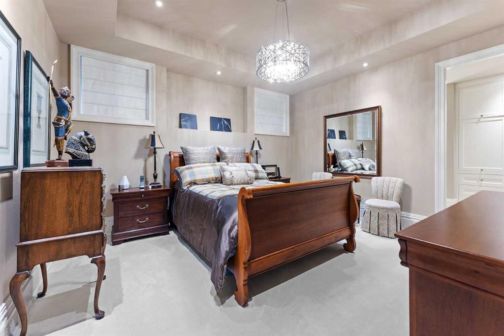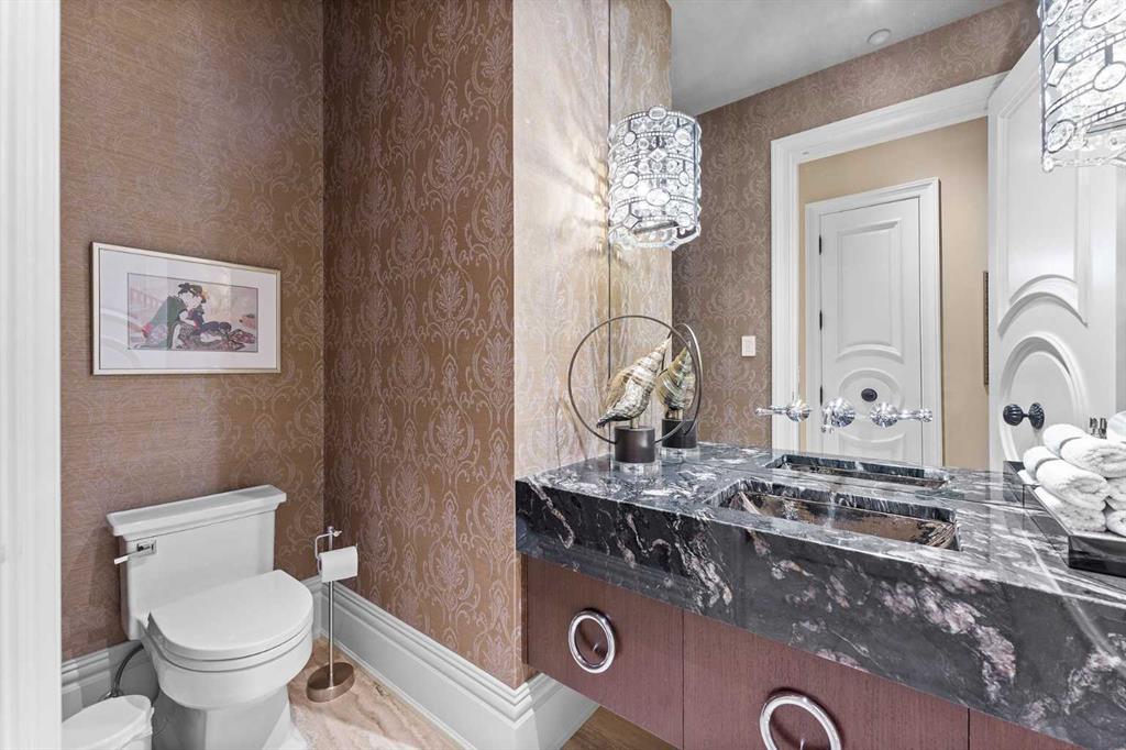 Welcome to this extraordinary residence located in the highly coveted Bel-Aire community. This remarkable home is the result of a meticulous collaboration between the homeowner and award-winning designer Paul Lavoie, brought to completion in 2014. The original structure was completely stripped to the studs and reimagined from the ground up, with a substantial expansion and the use of carefully selected, globally sourced premium materials. An ICF foundation was incorporated, allowing the lower level to be raised and finished with impressive 10-foot ceilings, while the main floor was redesigned to feature soaring 12-foot ceilings throughout. Thoughtful enhancements, including additional sunlight in the kitchen and main living areas, flood the home with natural light. Every element was intentionally chosen, from the statement fireplace mantels down to the finest hardware details. Offering an expansive 7,899 sq. ft. of living space, the home includes six bedrooms, five of which feature private ensuite bathrooms with heated floors—providing exceptional comfort and privacy. Upon entry, heated Crema Marfil marble flooring flows seamlessly throughout, leading you to the stunning chef’s kitchen, truly the centerpiece of the home. Outfitted with top-tier appliances, including a Wolf gas range and a Miele refrigerator/freezer (2025), this kitchen is perfectly equipped for culinary excellence. The main level balances refined elegance with everyday comfort, featuring a formal dining room ideal for hosting memorable gatherings. The owner’s retreat is a private sanctuary complete with a fireplace and an indulgent 11-piece, spa-inspired ensuite designed for total relaxation. Descend the walnut staircase to the lower level, a space crafted for leisure and entertainment. Enjoy a dedicated golf simulator room, a music room, a temperature-controlled wine cellar, and a full theatre experience with projector and oversized screen. An elevator provides effortless access back to the main level and the heated double garage, finished with hand-laid tile and equipped with two car lifts—accommodating up to four vehicles. An oversized driveway offers four additional parking spaces for guests. Step outside to the beautifully landscaped backyard, where mature spruce trees create a sense of privacy and tranquility. Gather around the outdoor fireplace and unwind in a setting that perfectly blends luxury and comfort. This is a rare opportunity to own a truly custom-built masterpiece in one of the city’s most desirable inner-city neighborhoods.