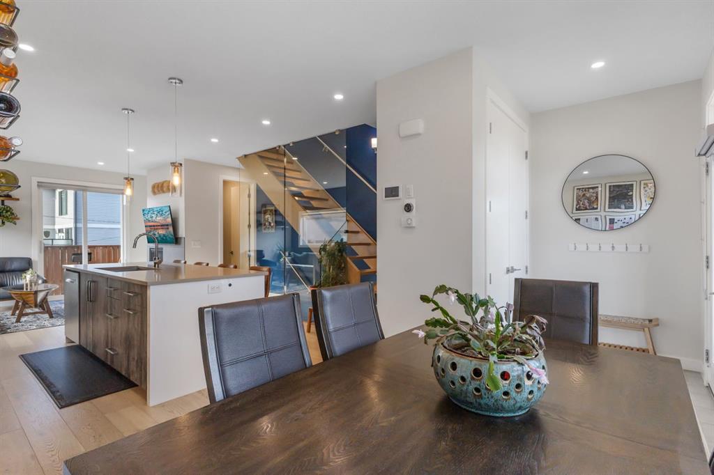 Experience refined living in one of Calgary's most sought after neighbourhoods- Windsor Park! This upscale townhome offers the perfect blend of elegance, comfort & modern design. From the moment you step inside, you are greeted by a bright, open concept layout. The kitchen is a true showpiece; equipped with Fisher & Paykel appliances, sleek cabinetry and a gorgeous island; an excellent space for entertaining. Cozy up in the living room next to the gas fire place on those chilly days & turn on the A/C on those hot days! A stunning glass-encased staircase adds to this homes modern elegance. The upper level continues to impress; a stunning skylight that fills the BONUS ROOM with natural light, spacious bedrooms & IN-FLOOR heating in ALL full bathrooms, for year round comfort! The primary bedroom features high ceilings, a large walk-in closet with built in shelving, and a 4 piece bathroom with double vanities. The upstairs second bedroom features a walk-in closet as well. The fully FINISHED BASEMENT offers additional living space, equipped with a wet bar, living room, a third bedroom & another full bathroom (with in-floor heating). Ideal for a media room, home office or entertainment space! Step outside on to your private, fenced in patio yard- steps away from your detached garage and equipped with a natural gas line. This exceptionally well maintained home's location has it all! Walking distance to Brittania Plaza, Chinook Mall, Stanley Park & dog parks. Just a 10 minute drive to the heart of downtown & only 7 minutes to Mission shops! Come see this immaculate property yourself & experience all that Windsor Park has to offer!