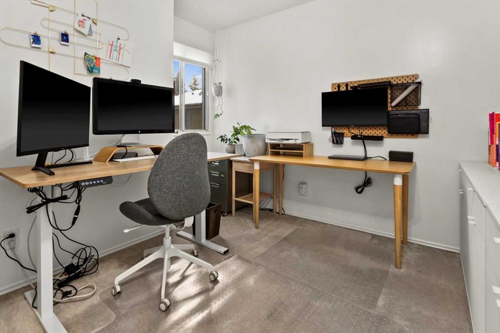 **OPEN HOUSE - March 21st 2-4PM** Quiet END-UNIT in Lakeview Green | Vaulted Living Room | Private Patio | Side-by-Side Underground Parking Stalls | Ample Visitor Parking | Green Spaces | Large Master Suite! Hey Y'all! Welcome to the ever-loved Lakeview Green community, one of Southwest Calgary’s most walkable and family-friendly neighbourhoods. This split-level END UNIT offers 3 bedrooms, 2.5 bathrooms, and 1,360 sq ft of flexible living space designed for easy, low-maintenance living. The main level opens with a practical entry and guest bath beside the large kitchen, featuring painted cabinetry, a sunny courtyard window, and newer appliances (fridge and dishwasher 2025). A generous dining area flows into the dramatic vaulted living room, where a gas-starter wood-burning fireplace and expansive glass doors bring in beautiful natural light. Step outside to your private fenced patio surrounded by mature trees, perfect for morning coffee, evening wine, or letting pets relax outdoors. Upstairs you’ll find three well-sized bedrooms, convenient upper-floor laundry, and two full bathrooms, including a comfortable primary suite with large walk-in closet and 3-piece ensuite. A rare bonus: two underground parking stalls located directly beside your private entrance, plus a secure mechanical/storage room with over 260 sq ft of additional space—ideal for bikes, seasonal gear, or even a small home gym. Lakeview Green II is a well-managed, pet-friendly complex with a strong reserve fund and proactive condo board, loved for its community feel and unbeatable location. Walk to four schools, parks, local shops, North Glenmore Park, Weaselhead Natural Area, and off-leash pathways. Grab a treat at the beloved Lakeview Gluten Free Bakery, a latte at local favorite, Sierra Cafe—all just minutes from your door. With quick access to downtown and major routes (10-15 mins to downtown), this is turn-key Lakeview living in one of Calgary’s most established southwest communities. Book your showing today!
