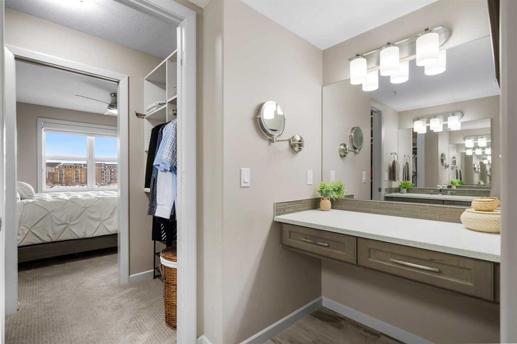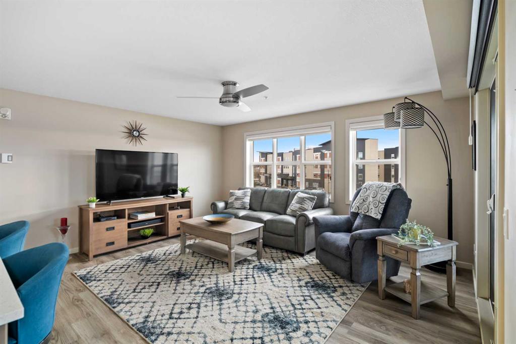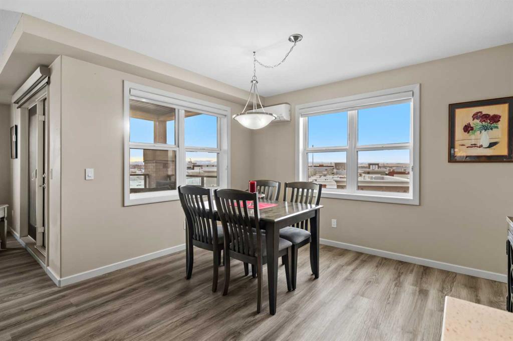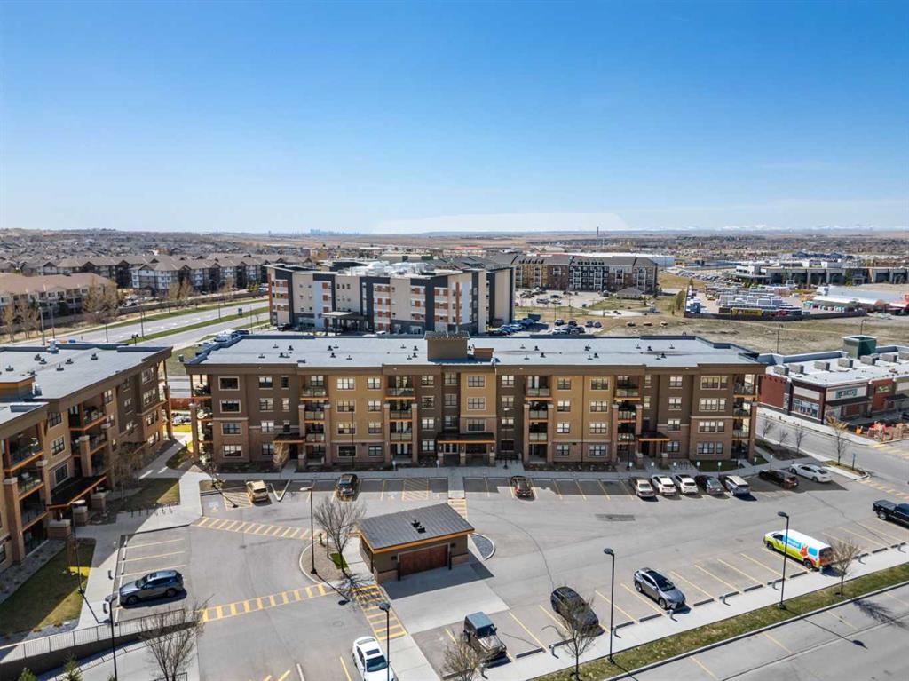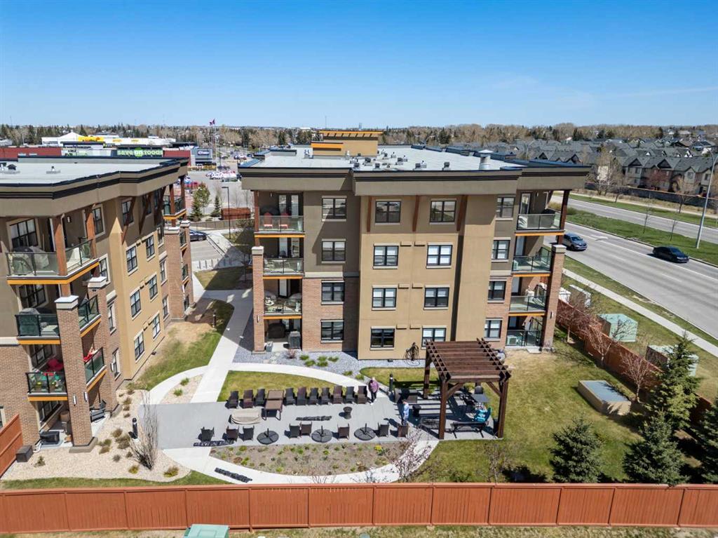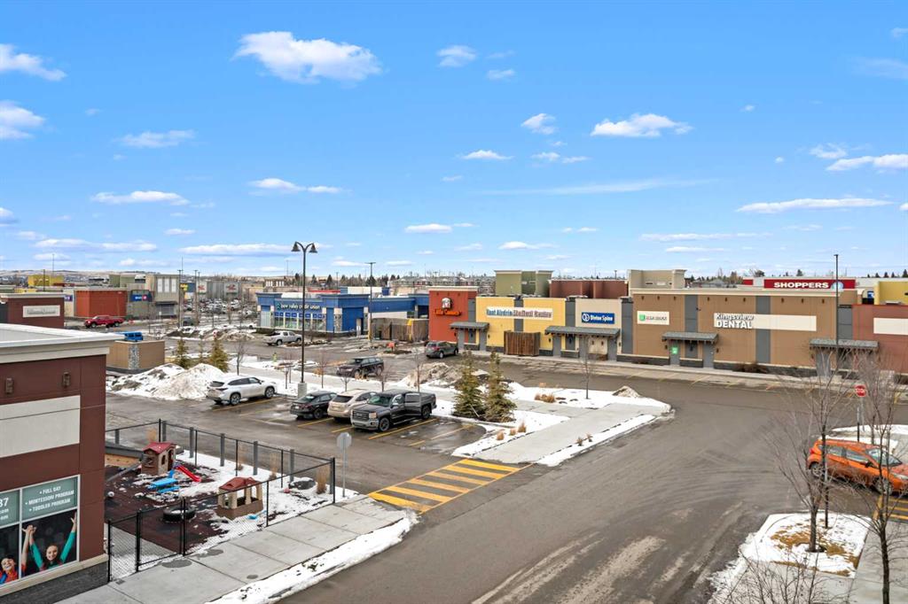 Welcome to #2310-10 Market Blvd! Airdrie's premier age restricted apartment complex, NEWLY age restricted to 55+. If you are looking to downsize in Airdrie, you will be hard pressed to find a building that compares to this one. This unit is a THIRD FLOOR, CORNER UNIT with SOUTHWEST exposure ensuring endless afternoon sun and INCREDIBLE NATURAL LIGHT throughout your home. Upon entering the unit, you are welcomed by a spacious foyer completed with a coat closet and an open, airy feel that immediately sets the tone for the home. Moving into the kitchen, it offers expansive, high-end cabinetry, granite countertops, a large island, beautiful light fixtures and stainless steel appliances. Designed for hosting, it opens seamlessly into the expansive living space with access to a spacious balcony, perfect for cozy evenings or morning coffee while enjoying the MOUNTAIN VIEWS. Just off your living space, you will appreciate a large, formal dining room that comfortably fits a six person table and is SURROUNDED by windows, a rare find in condo living. It is not every day that a unit like this hits the market, what is unique about it is that it offers TWO BEDS, 2 BATHROOMS + A LARGE DEN. The den is a versatile space ideal for a home office, exercise room, or additional storage. The PRIMARY bedroom is a true retreat, featuring a walk-through closet with built-in storage leading to a three-piece ensuite. This spa-like space includes a beautiful walk-in glass shower and a second vanity, ideal for getting ready in the morning. The second bedroom is equally spacious, offering two closets and direct access to the four-piece bathroom. You will also enjoy in suite laundry, beautiful vinyl flooring, remote controlled window coverings on the balcony doors, a garburator and many more upgrades. This unit offers TWO TITLED PARKING STALLS, one underground STEPS FROM THE ELEVATOR, the second one outdoors and a large assigned STORAGE LOCKER located down the hall on the same floor as your unit for convenient access. Stay comfortable in the summer months with your A/C wall unit and ceiling fan(s). The Chateaux features a beautifully landscaped courtyard with a gas fireplace and an amenity room available for private bookings where residents gather to host regular happy hours, social hours or just getting together to visit. There's also a secure underground workshop for those who enjoy woodworking. Located in Kings Heights, you’re within walking distance to Save-On-Foods, Shoppers Drug Mart, banks, salons, restaurants and more - covering all your grocery, shopping, and healthcare needs. This building is truly designed for mature ownership, peaceful living and a vibrant social community. CALL FOR A PRIVATE VIEWING TODAY!