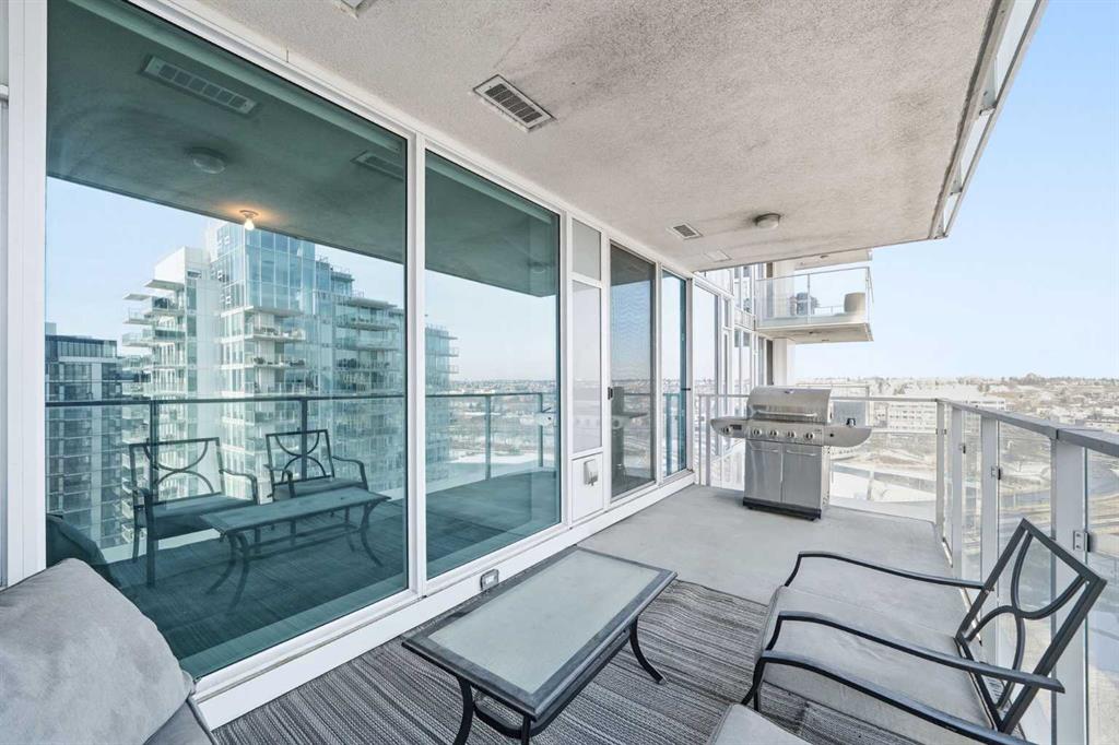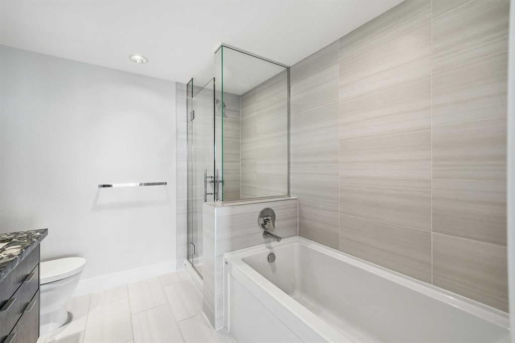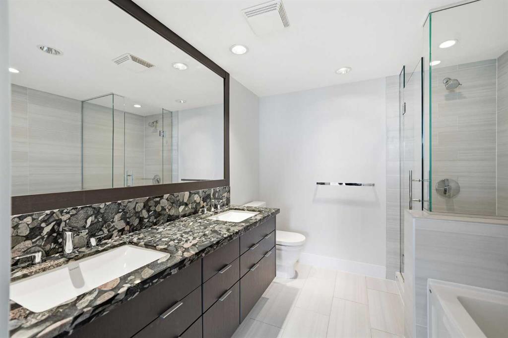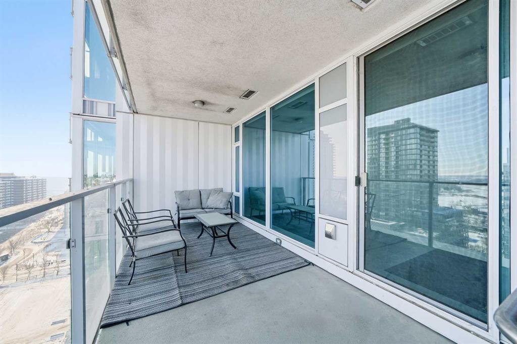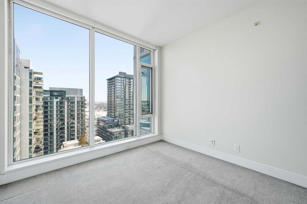 Huge Price Reduction and priced to sell! Welcome to this bright and beautifully maintained condo in the heart of East Village, one of Calgary’s most vibrant and walkable communities. This 2-bedroom, 2-bathroom suite in the highly sought-after Evolution complex offers exceptional value for buyers seeking upscale finishings, comfort, and long-term potential. Freshly painted and move-in ready, this modern home features a spacious open-concept layout with floor-to-ceiling windows that flood the space with natural light. The stylish kitchen is equipped with full-size stainless steel Jenn-Air appliances, granite countertops, and sleek cabinetry — perfect for both everyday living and entertaining. Heated tile floors in the bathrooms add an extra touch of luxury that today’s homeowners and renters alike will appreciate. The primary suite offers a walkthrough double closet and a generous ensuite complete with dual sinks, a soaker tub, and a separate shower. The second bedroom is thoughtfully positioned near the second full bathroom, making it ideal for guests, roommates, or a home office. Additional features include central A/C, in-suite laundry, underground parking, and assigned storage. Step outside to your large private balcony with a BBQ gas line and take in beautiful views toward the Bow River. Residents of Evolution enjoy an exceptional lifestyle with 24/7 concierge service, a fully equipped fitness centre, sauna and steam rooms, a rooftop patio with BBQs, a social lounge, bike storage, and underground visitor parking. Located just steps from the RiverWalk, CTrain, Superstore, the new Arena District, Calgary Public Library, Studio Bell, and countless restaurants and cafés, this location truly can’t be beat. Whether you're entering the market or adding to your investment portfolio, this is a rare opportunity to own a low-maintenance, high-appeal property in one of Calgary’s most desirable downtown neighbourhoods.