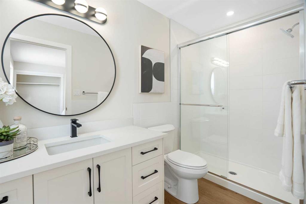 Welcome to this beautifully transformed 5-bedroom, 4-bathroom home offering over 2,650 sq ft of thoughtfully designed living space. Tucked away on one of Marlborough Park’s quietest cul-de-sacs, the property backs onto an open green space and is ideally located just minutes from schools, CTrain stations, shopping, dining, and major commuter routes. The main floor spans over 800 sq ft and showcases a bright, open-concept layout featuring a spacious living room, dining area, and a chef-inspired kitchen anchored by an impressive 10' × 5' island with extensive storage. The adjacent family room blends modern comfort with character, highlighted by a refreshed original brick feature wall. South- and west-facing windows flood the home with natural light from morning through evening. With five bedrooms and four full bathrooms, the layout is exceptionally well suited for families of all sizes. The upper level offers three bedrooms, including a generous primary retreat complete with an ensuite and dual closets, along with two additional bedrooms and a full bathroom—all enjoying peaceful park views. A fourth bedroom on the main floor, paired with a 3-piece bath and laundry, is ideal for guests or multi-generational living. The fully developed lower level features a large fifth bedroom, an additional full bathroom, and over 700 sq ft of versatile recreation or family space. Notable upgrades include a high-efficiency furnace, a large hot water tank, and smart-home features such as Ring cameras, Wi-Fi light switches, smart locks, and thermostats—delivering comfort, efficiency, and peace of mind. Outdoor living is equally impressive, with a solid, well-built deck off the kitchen, a concrete patio, a private yard, and a newly installed fence accented by a decorative rock area—perfectly suited for a firepit or outdoor gathering space. A rare opportunity to own a home renovated with purpose, quality, and craftsmanship—this is Marlborough Park living at its finest with a recent reduction in price!