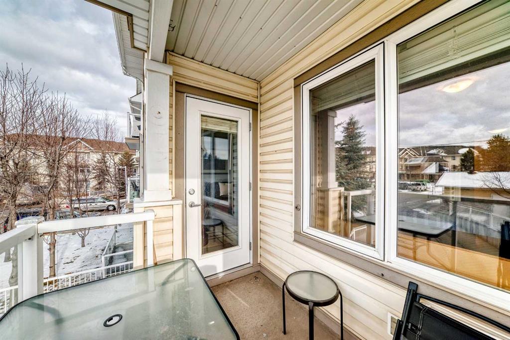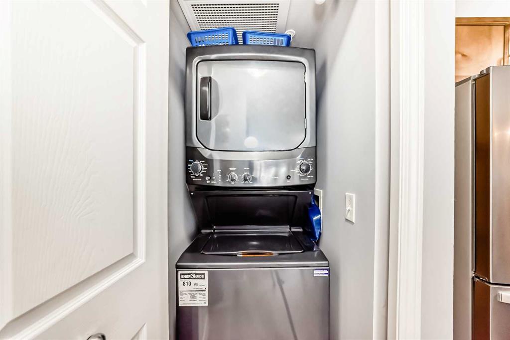 Welcome to Calvanna Village, a well managed and highly sought after 55+ adult living complex, ideally located close to shopping, transit, and everyday amenities. This rare, updated unit offers over 800 sq. ft. of comfortable living space with 2 bedrooms, 2 bathrooms, and in floor heating throughout. The bright, open concept layout features newer vinyl plank flooring and fresh neutral paint. The kitchen is equipped with newer stainless-steel appliances, wood cabinetry, and a breakfast bar with seating for four. The spacious living room is filled with natural light from a large window and provides ample space for furnishings. The primary bedroom includes a walk-through closet leading to a 4-piece ensuite. The second bedroom is located on the opposite side of the unit, offering excellent privacy. Enjoy outdoor living on the generous patio perfect for morning coffee or evening relaxation. Additional features include underground parking and a dedicated storage locker. A fantastic opportunity to enjoy low maintenance living in a quiet, adult oriented community.