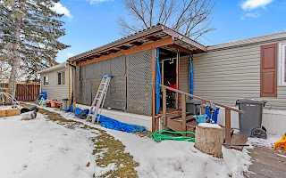 Everything UPGRADED in 2023. This 953 sf 2 bed 1 bath mobile home is just waiting for you ! Starting with the exterior, new siding, insulation, Tyvek wrapped, windows (newer), front exterior door, membrane roof, eave trough (all 2023), new shed around the back for storage, all plumbing lines have been changed to PEX. A few steps up to the covered deck has a dedicated entrance direct into the mud room as well as front entry into the home. Fully drywalled throughout with new insulation to keep down the heating costs, this unit was relevelled 2023. Furnace (2020), Rinaai Tankless Hot Water (2020), laminate flooring-DMX Advanced vapor barrier underlay throughout (mold, moisture & sound barrier) will increase floor temperature by 12 degrees. New lighting throughout with ceiling fan in living room & all new baseboards & casing. The kitchen is truly a Chef’s kitchen with upgraded appliances and tons of cabinets & counterspace. A separate side pantry is beside the hall closet. Stainless fridge-plumbed for water & ice (2023 with extended warranty), dishwasher (2023), microwave, vented outside (2023), convection stove (2020), high end laminate counters, Blanco composite double sink w/ Pfister faucet & shaker style cabinets. Eating bar seats 2 comfortably (have seat… look around !). Living room has big windows letting in the natural light, window coverings (2023), wall unit TV/stand, dining area & front hall closet. The primary bedroom is big & can easily accommodate a king size bed, walk in closet area, custom wall panels, cheater door to the main bathroom, the 5pce bathroom has soaker tub (2023), vanity with double sinks (2023), new toilet (2023) and water resistant floor laminate tiles. The second bedroom is huge and can easily fit 2 beds & has wall to wall closet. The mud room is large & has same flooring & underlay as the rest of home, peg board for keeping everything neat & tidy & still tons of room for storage. Side by side front parking fits a truck and good sized SUV. Large deck, big yard (size rivals some new communities) & around the corner in back is shed for all your storage needs. RV parking on site for a nominal fee. The Lot Lease Rate of $1100.00/ month includes water, sewer, snow & garbage removal, common area maintenance and onsite management & recycling. Mountview Mobile home park has easy access to Easthills shopping, theatres, COSTCO are close by & as are bus routes to downtown. Schools & amenities all close by with Elliston Park across the street for walking, biking & big play park for kids, also short distance away from Stoney Trail.. START PACKING !!