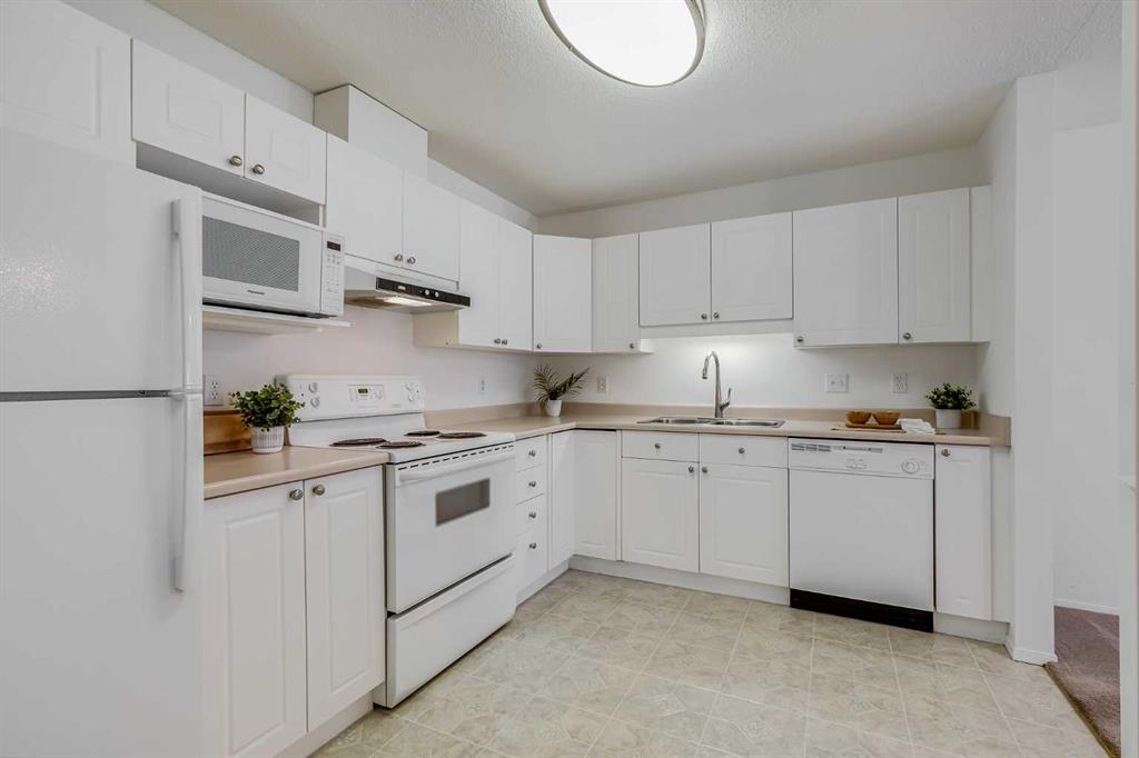 Welcome to this charming second floor condo featuring 2 bedrooms and 2 bathrooms, with over 900 square feet of thoughtfully designed living space in a 55+ adult community. The open-concept layout seamlessly connects the kitchen, dining, and living areas, ideal for both relaxation and entertaining.The abundance of natural light throughout creates a warm and welcoming atmosphere. The spacious kitchen features ample cupboard space, complemented by white cabinets and matching white appliances. Durable laminate countertops provide both functionality. A covered balcony expands your living space outdoors, offering a peaceful setting for morning coffee or evening relaxation. It also features a convenient BBQ gas line, perfect for outdoor grilling. The primary bedroom is generously sized, featuring dual closets and a three-piece ensuite bathroom for added convenience. The secondary bedroom can easily serve as an office. Additional amenities include in-suite laundry and an assigned storage space, enhancing the practicality of this home. This condo also includes an underground assigned parking stall, ensuring convenience year-round. Residents have access to a range of building amenities, including a clubhouse designed exclusively for community members. The clubhouse features a recreation room, a cozy seating area with a library and fireplace, a gym for workouts, billiards, shuffleboard and a party room equipped with a large kitchen for social gatherings. Situated in the desirable community of Signal Hill, this property is just steps away from bus stops, making public transportation easily accessible. For shopping and recreation, Signal Hill Center and Westhills Towne Center are less than ten minutes away, along with the Westside Recreation Centre, which offers a variety of fitness options. Nature enthusiasts will appreciate the proximity to nearby parks, including Battalion Park, Signal Hill Park, and Griffith Woods Park. These green spaces provide ample opportunities for outdoor activities and leisurely strolls. Convenient access to Sarcee Trail and Stoney Trail further enhances the location, allowing for effortless travel throughout the city and beyond. This property combines modern living with a welcoming community atmosphere, making it an excellent choice for those seeking comfort and convenience. Sorry, no pets allowed. Take advantage of your opportunity to see this incredible property in person—book your showing today! Be sure to check out the floor plans and 3D tour for a closer look before your visit.
