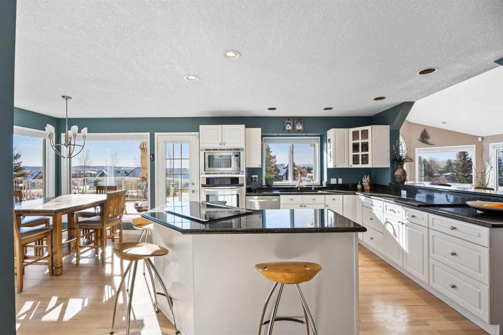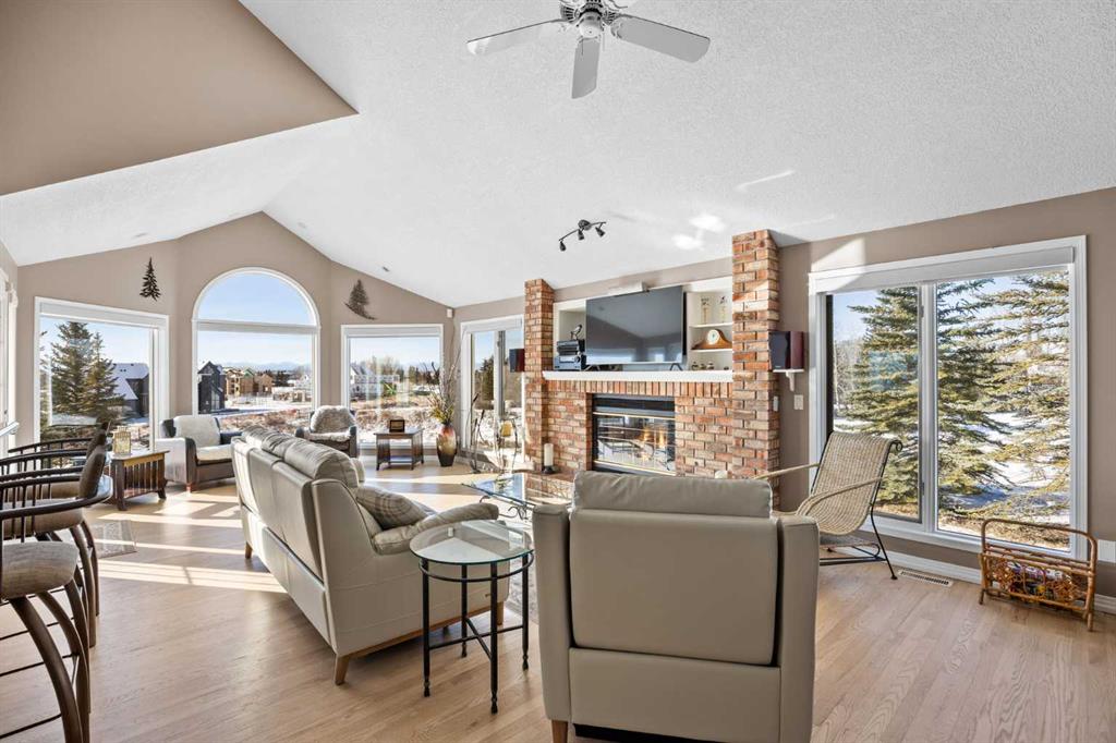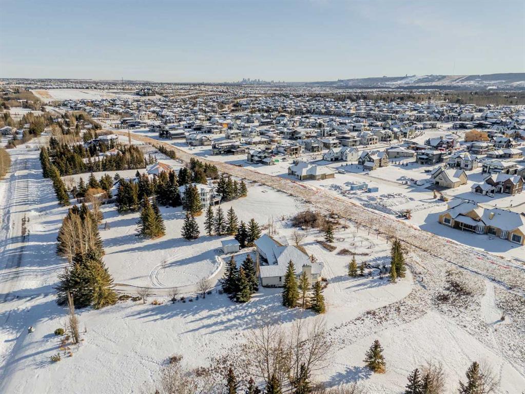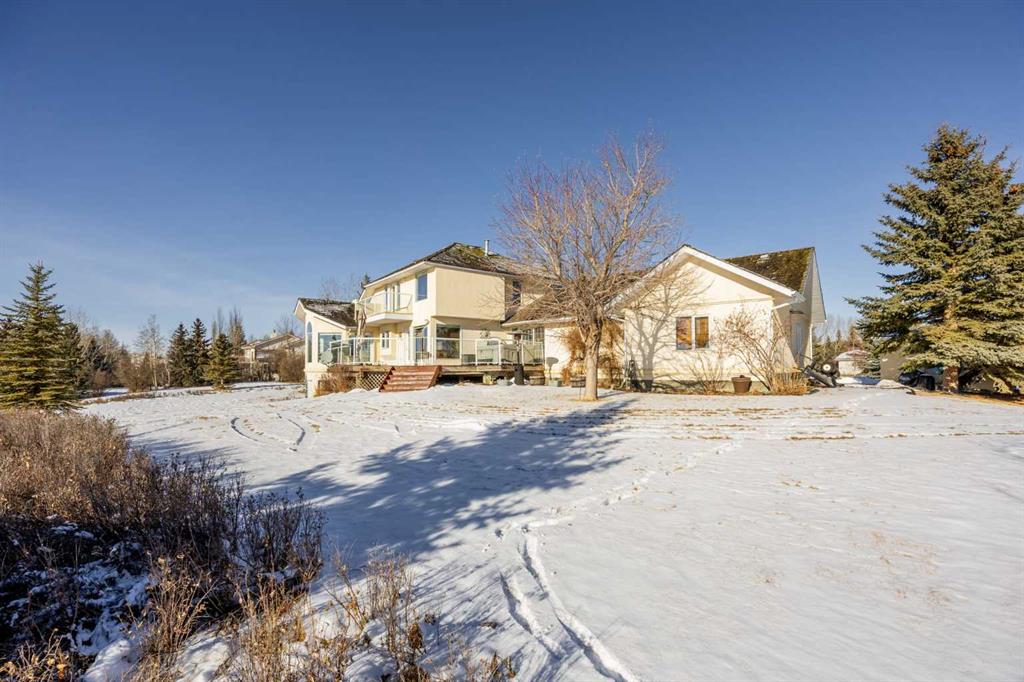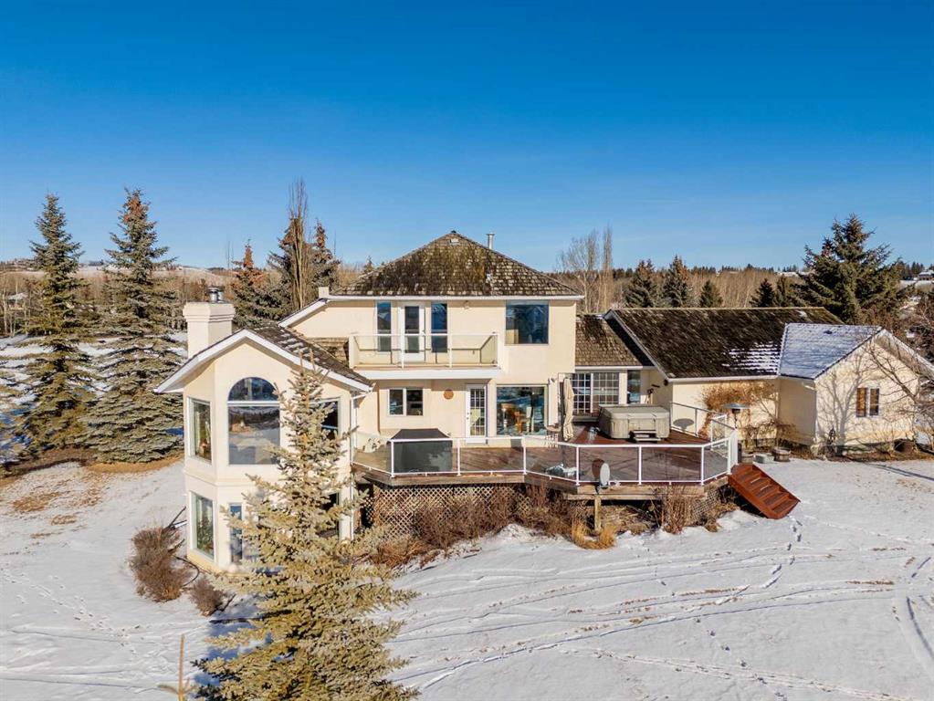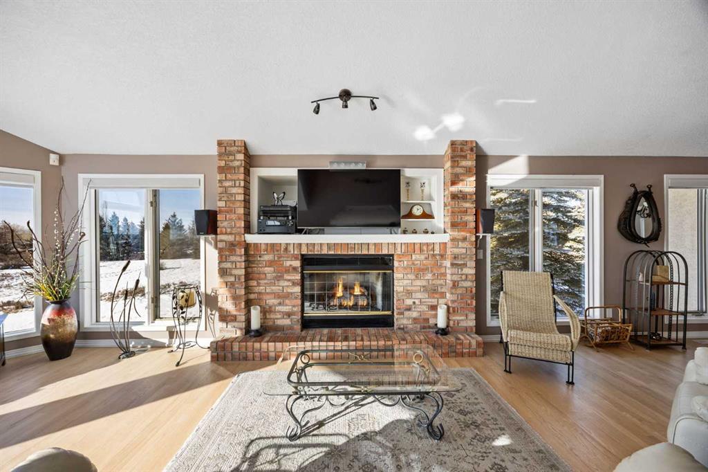 Set on a quiet cul-de-sac on the edge of Rocky View County, Blueridge Estates is a warm, welcoming community where space, comfort, and connection come together effortlessly. Set on a 2 acre, treed lot, this is a place where everyday life feels calm and unhurried—yet still close to everything the city offers. Large windows throughout the main floor flood the home with exceptional natural light and frame expansive views of the Rocky Mountains, downtown Calgary, and Winsport ski hill. At the heart of the main level, a beautifully detailed brick gas fireplace creates a natural gathering point that anchors the living spaces. Framed in timeless brick, it brings warmth, character, and a sense of permanence—perfect for cozy evenings, family gatherings, and long winter nights. High ceilings in the open great room further enhance the sense of space and light. Hardwood flooring runs throughout the majority of the main floor and was redone in 2023 in a natural oak tone, adding warmth and a timeless feel. The kitchen is both functional and inviting, featuring solid granite countertops and island, a new refrigerator, upgraded stainless steel appliances including an induction cooktop, and a reverse osmosis drinking water system. The layout flows seamlessly to the dining area and out to the deck, making indoor-outdoor living effortless. The primary suite has been thoughtfully renovated into a true retreat, offering unobstructed mountain views, a large walk-in closet, and a spa-inspired ensuite with heated tile flooring, a large walk-in shower, and a rain shower feature—a perfect place to unwind at the end of the day. The walkout basement continues the home’s inviting feel with high ceilings and large windows that provide abundant natural light and beautiful views. A brick wood burning fireplace anchors the spacious recreation room, creating a comfortable and relaxed setting for movie nights, entertaining, or family time. Outside, the lifestyle truly shines. Enjoy summer evenings on the large southwest-facing deck, unwind year-round in the saltwater hot tub, or gather around the outdoor fire pit with seating area. The oversized triple car garage with radiant heating adds everyday comfort, while practical upgrades such as two furnaces, two newer water heaters, and a Culligan water softener provide peace of mind. Located in a well-established community close to parks, pathways, schools, and major routes, this is a home designed for long-term living—where comfort, views, and thoughtful upgrades come together beautifully.