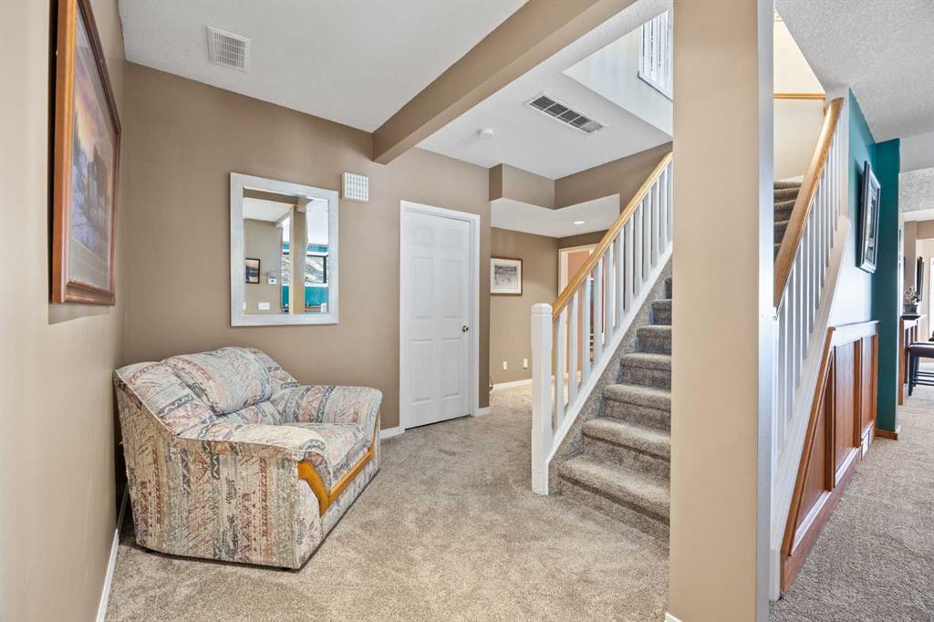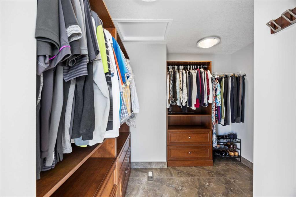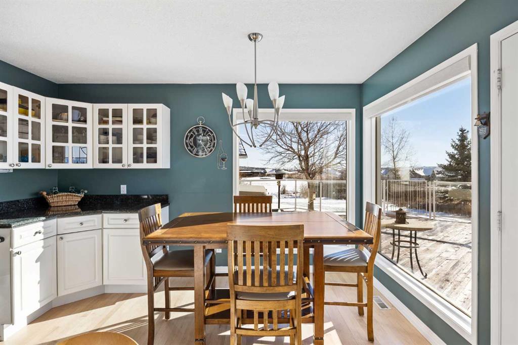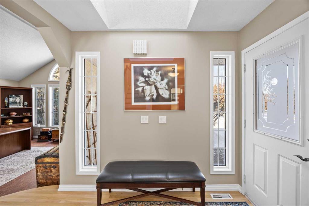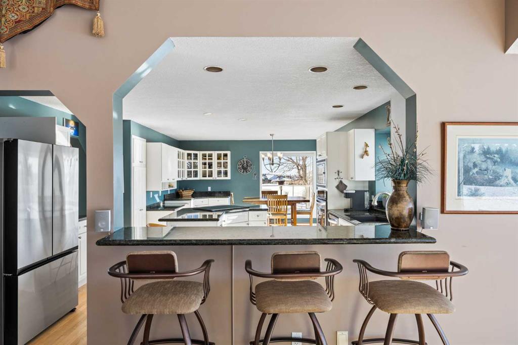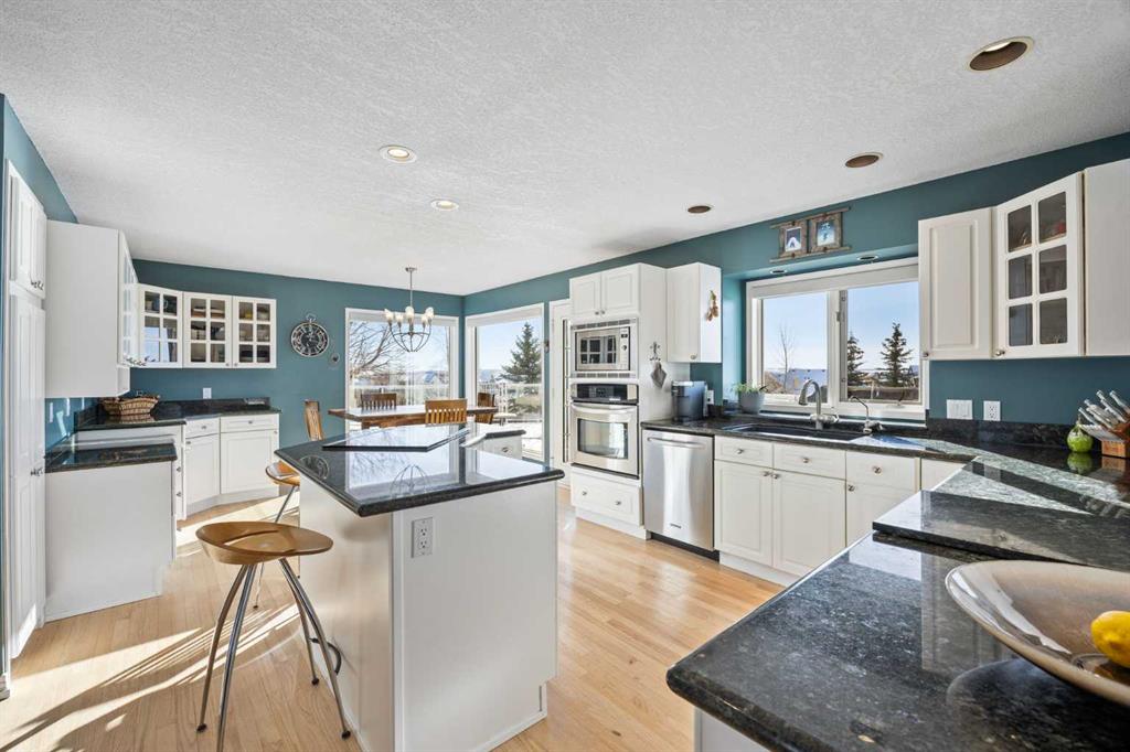 Set on a quiet cul-de-sac on the edge of Rocky View County, Blueridge Estates is a warm, welcoming community where space, comfort, and connection come together effortlessly. Set on a 2 acre, treed lot, this is a place where everyday life feels calm and unhurried—yet still close to everything the city offers. Large windows throughout the main floor flood the home with exceptional natural light and frame expansive views of the Rocky Mountains, downtown Calgary, and Winsport ski hill. At the heart of the main level, a beautifully detailed brick gas fireplace creates a natural gathering point that anchors the living spaces. Framed in timeless brick, it brings warmth, character, and a sense of permanence—perfect for cozy evenings, family gatherings, and long winter nights. High ceilings in the open great room further enhance the sense of space and light. Hardwood flooring runs throughout the majority of the main floor and was redone in 2023 in a natural oak tone, adding warmth and a timeless feel. The kitchen is both functional and inviting, featuring solid granite countertops and island, a new refrigerator, upgraded stainless steel appliances including an induction cooktop, and a reverse osmosis drinking water system. The layout flows seamlessly to the dining area and out to the deck, making indoor-outdoor living effortless. The primary suite has been thoughtfully renovated into a true retreat, offering unobstructed mountain views, a large walk-in closet, and a spa-inspired ensuite with heated tile flooring, a large walk-in shower, and a rain shower feature—a perfect place to unwind at the end of the day. The walkout basement continues the home’s inviting feel with high ceilings and large windows that provide abundant natural light and beautiful views. A brick wood burning fireplace anchors the spacious recreation room, creating a comfortable and relaxed setting for movie nights, entertaining, or family time. Outside, the lifestyle truly shines. Enjoy summer evenings on the large southwest-facing deck, unwind year-round in the saltwater hot tub, or gather around the outdoor fire pit with seating area. The oversized triple car garage with radiant heating adds everyday comfort, while practical upgrades such as two furnaces, two newer water heaters, and a Culligan water softener provide peace of mind. Located in a well-established community close to parks, pathways, schools, and major routes, this is a home designed for long-term living—where comfort, views, and thoughtful upgrades come together beautifully.
