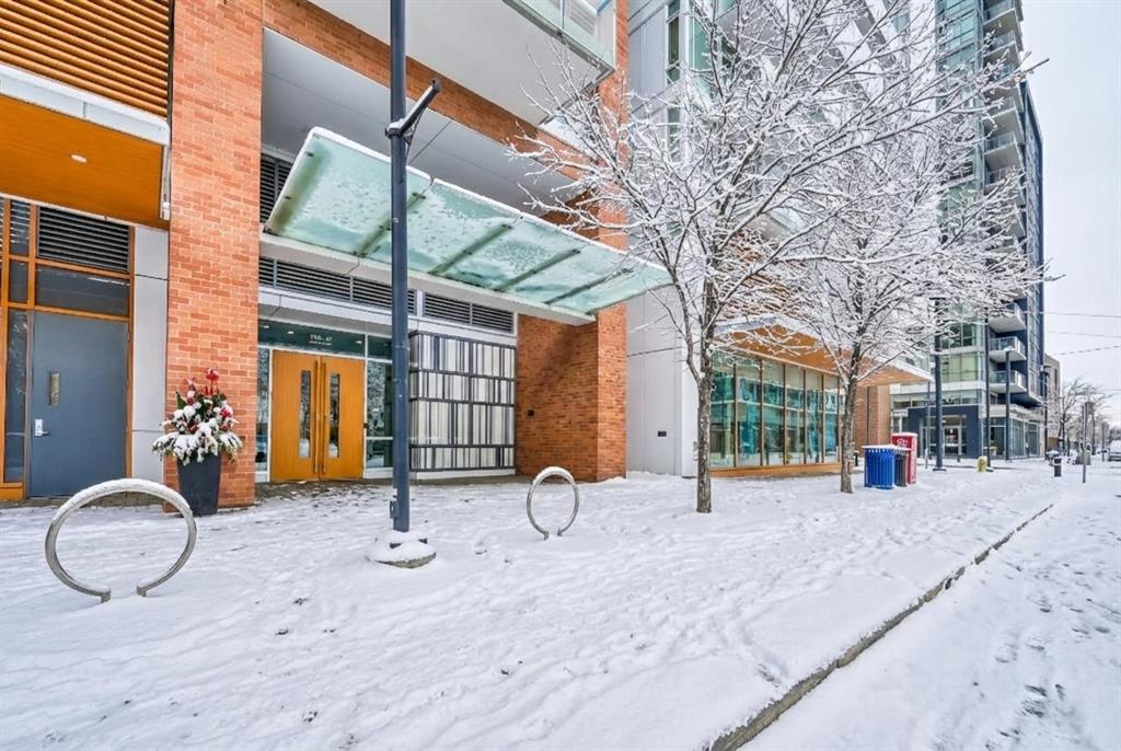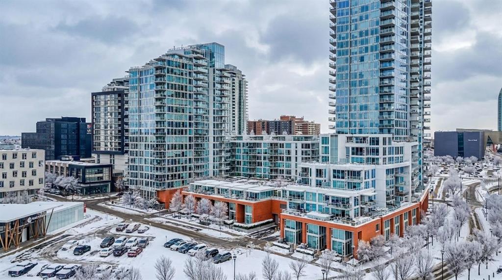 Welcome to Evolution in Calgary’s Vibrant East Village – where contemporary design meets urban convenience. This stunning two-bedroom, two-bathroom residence offers 872 square feet of thoughtfully designed living space in one of the city’s most dynamic and fast-growing communities. From the moment you step inside, you’re greeted by a bright, open-concept floor plan that blends the living room, dining area, and kitchen into one seamless, light-filled space. A wall of floor-to-ceiling windows floods the interior with natural light, creating a warm and inviting atmosphere while showcasing the city’s energy and charm. The chef-inspired kitchen is both stylish and functional, featuring sleek, modern cabinetry, elegant quartz countertops with matching backsplash, a convenient breakfast bar, and premium stainless steel appliances—including a gas range for the home cook who values performance. Under-cabinet lighting enhances the workspace and adds a sophisticated touch. The primary bedroom is generously sized to comfortably accommodate a king bed, and features his-and-hers closets that provide excellent storage. The spa-like five-piece ensuite is a true retreat, complete with double vanities, deep soaking tub, separate glass-enclosed shower, and heated tile floors for year-round comfort. The second bedroom has river views—perfect for guests, a home office, or both—is located on the opposite side of the unit for optimal privacy, with its own beautifully appointed full bathroom nearby. Both bathrooms feature high-quality finishes and a modern aesthetic consistent with the rest of the home. Step outside to the oversized covered balcony—complete with power and a gas line for your BBQ—perfect for outdoor cooking and relaxing year-round. Additional highlights include full-size in-suite laundry, a titled underground parking stall, and a separate secure storage locker for seasonal or bulky items. Residents enjoy impressive building amenities including 24-hour concierge, a state-of-the-art fitness centre with gym, steam room, and sauna, expansive private landscaped gardens, a stylish social lounge, visitor parking, and secure bike storage. All of this is set in the heart of the East Village, one of Calgary’s most exciting and walkable neighborhoods. You’ll be just steps away from the Bow River pathways, local cafés, eclectic dining, entertainment venues, and cultural attractions. With easy access to transit and major routes, the entire city is within reach. This home offers the perfect blend of luxury, location, and lifestyle—ideal for those seeking a modern downtown living experience without compromise. Book your private showing today and come on Buy!
