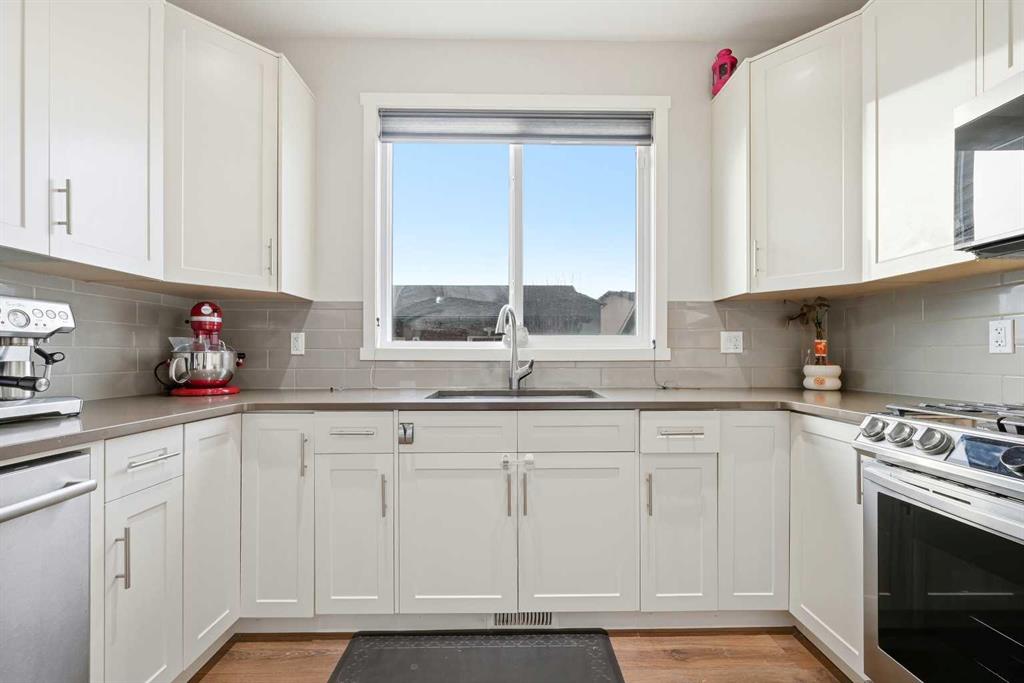 WELCOME TO THIS EXCEPTIONAL, HEAVILY UPGRADED CORNER-LOT TOWNHOME IN THE HEART OF SAVANNA! This NO CONDO FEE, EAST-FACING property offers the comfort and quiet of a detached feel with the convenience of urban living. Featuring a PREMIUM HUSH-HUSH PARTY WALL SYSTEM, this home delivers outstanding sound insulation and privacy—ideal for modern families and professionals alike. Proudly maintained and FRESHLY PAINTED, the home showcases over $100K IN UPGRADES AND IMPROVEMENTS throughout. The MAIN FLOOR features a bright, open-concept layout with durable upgraded flooring, QUARTZ COUNTERTOPS, modern cabinetry, PANTRY, and a well-appointed kitchen with GAS STOVE. The spacious living and dining areas are perfect for everyday living and entertaining, complemented by tasteful finishes for a true move-in-ready feel. The UPPER FLOOR offers a thoughtfully designed layout with THREE GENEROUS BEDROOMS, including a spacious PRIMARY BEDROOM WITH ENSUITE & WALK-IN CLOSET, plus an additional 4-PIECE FULL BATHROOM. Convenient UPPER-FLOOR LAUNDRY adds everyday functionality, while large windows throughout provide excellent natural light. The thoughtfully designed layout continues into the FULLY DEVELOPED BASEMENT WITH HOME THEATRE, featuring an additional bedroom, full bathroom, ample storage, and a versatile bonus room—perfect for extended family, guests, or entertainment. The PREMIUM CORNER LOT provides extra side yard space, enhanced privacy, and direct side access to the backyard. Enjoy a DOUBLE DETACHED INSULATED GARAGE, landscaped and re-sodded WEST-FACING BACKYARD, concrete patio, stonework pathways, and a fully developed REAR PAVED LANE. CENTRAL A/C, WATER SOFTENER, upgraded CLASS 4 HAIL-RESISTANT ROOFING, and numerous builder and post-possession enhancements add long-term value and peace of mind. UNBEATABLE LOCATION—just steps to SAVANNA BAZAAR, TRANSIT STOP, and close to schools, parks, and everyday amenities, with VERY QUICK ACCESS TO SADDLETOWNE LRT, multiple bus routes, and major roadways for an easy commute across the city. A rare opportunity to own a MOVE-IN READY, UPGRADE-PACKED HOME in one of Calgary’s fastest-growing communities. Exceptional value, exceptional location—this one truly stands out. 3D / VIRTUAL TOUR AVAILABLE. Call your favourite Realtor® to book a showing.
