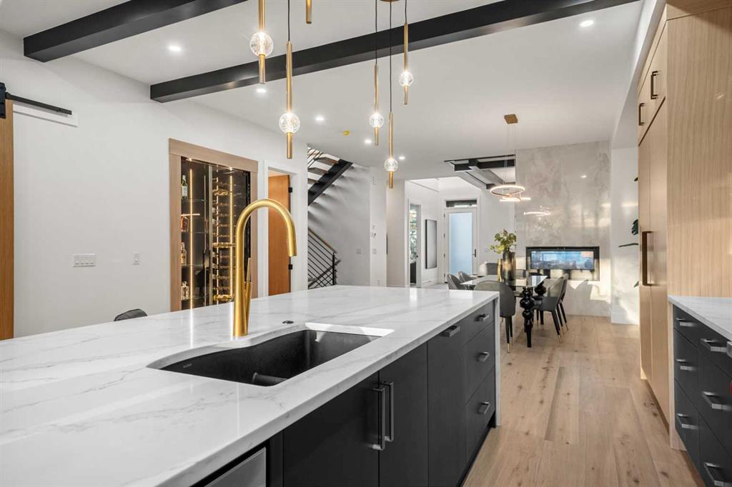 OPEN HOUSE: Fri, Mar 20: 3:30-5:30pm! DISCOVER ELEVATED LIVING! Get ready to redefine your lifestyle with this breathtaking, brand new, two-story walk-up that offers uninterrupted, jaw-dropping views of Calgary's downtown skyline! Presented by premiere builder, Twin Real Estate Holdings, this property offers double the wow factor in the well-established SW community of Shaganappi. Imagine this...your west-facing backyard directly borders an 11 acre city park, complete with scenic pathways, tennis/basketball courts, skating/hockey rinks, dog park and an active community association that keeps the energy alive year-round. Step inside and prepare to be wowed by grand design, opulent finishes and thoughtful artistry throughout. From the soaring 10-foot vaulted ceilings to the natural light streaming through abundant walls of windows, every corner of this home exudes elegance and prestige. Picture cozy evenings in the spacious living room, anchored by a stunning double-sided gas fireplace, or hosting lavish dinners in the dining area, complete with a 48" built-in wine wall cooler for your prized private collection. The chef-inspired kitchen is a culinary dream come true, boasting only the best: a 60" SUB-ZERO refrigerator/freezer, a 48" WOLF 6-burner gas cooktop with dual wall ovens, a MIELE coffee system and a BOSCH dishwasher. The walk-in butler’s servery plus pantry ensures seamless entertaining and organization, while patio sliders open to your outdoor deck—a perfect spot to soak up summer sunsets while overlooking your landscaped yard. Need space for work or play? The main floor provides two versatile flex rooms, ideal for an executive home office, craft/hobby space or a children’s playroom—tailored to suit any lifestyle. The floating staircase—framed by an elegant wall of marble tile—takes you upstairs to even more grandeur. The bonus room offers spectacular skyline views, while two additional bedrooms each feature private ensuites and walk-in closets. The pièce de résistance is the owner’s retreat. The primary suite is a sanctuary of luxury, complete with a designer walk-in closet, a private west-facing balcony overlooking the park (sunsets and nightcaps, anyone?), and an unforgettable spa-like ensuite. This private bathroom features a double-sided gas fireplace, a freestanding black soaker tub, a separate glass steam shower, dual sinks and heated floors—a true oasis of relaxation. The lower level is designed for casual entertaining and comfort, offering a rec/media/games room and wet bar, a fourth bedroom, a den/flex/5th bedroom and a 4 piece bath. Access the attached heated double garage via the mudroom, or store your larger toys in the rear detached heated single garage, spacious enough for a pickup truck. This home is perfectly positioned to enjoy the best of Calgary—steps from the trendiest restaurants, boutique shops and social hubs of 17 Avenue, with only a 5 minute commute to downtown. Don’t miss your chance to make this incredible luxury home yours!