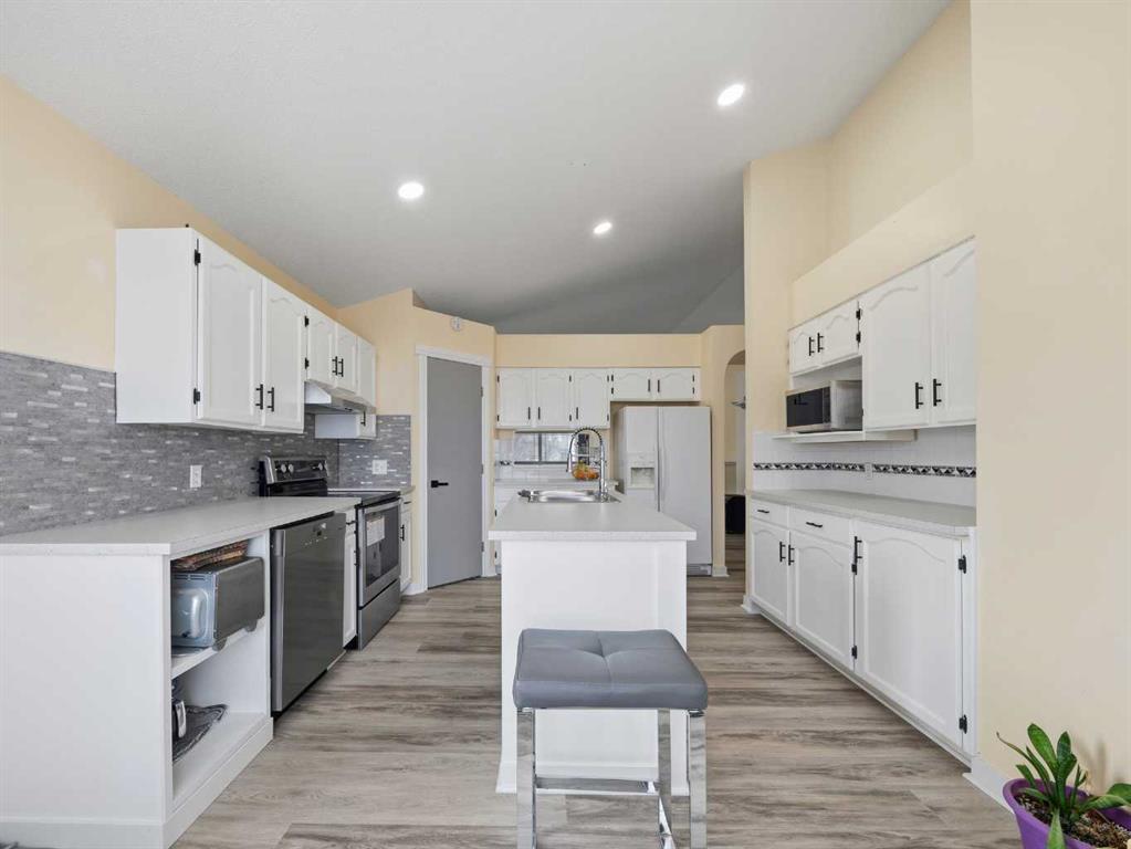 Welcome to this beautiful, spacious family home tucked away on a quiet street in the heart of Somerset—where daily life is easy and everything you need is within walking distance, including schools, transit, shopping, and the neighbourhood water park. This bright bi-level offers soaring vaulted ceilings, abundant windows, and an open, welcoming layout that immediately feels like home. From the moment you enter, you’re greeted by an expansive sense of space as the design flows up to the living room and down to the family room below. The main level features a generous living and dining area with hardwood floors, ideal for entertaining or relaxing with family. The eat-in kitchen is well designed with a centre island, ample cabinetry and counter space, and direct access to a two-tiered deck overlooking a large, fully fenced backyard—perfect for kids, pets, and summer gatherings. The primary bedroom is a comfortable retreat with a walk-in closet and a four-piece ensuite complete with a soaker tub. Additional bedrooms are well sized and versatile for growing families, guests, or home office needs. The fully finished lower level is impressively bright thanks to its open ceiling design and large west-facing windows. This level includes a cozy family room with a gas fireplace, additional bedrooms, a three-piece bathroom, laundry, and plenty of storage. Major updates include a newer roof and hot water tank, offering peace of mind for years to come. With the addition of an extra bedroom, this home now offers exceptional flexibility and space for modern family living. A truly great family home in a fantastic location—move in and enjoy.