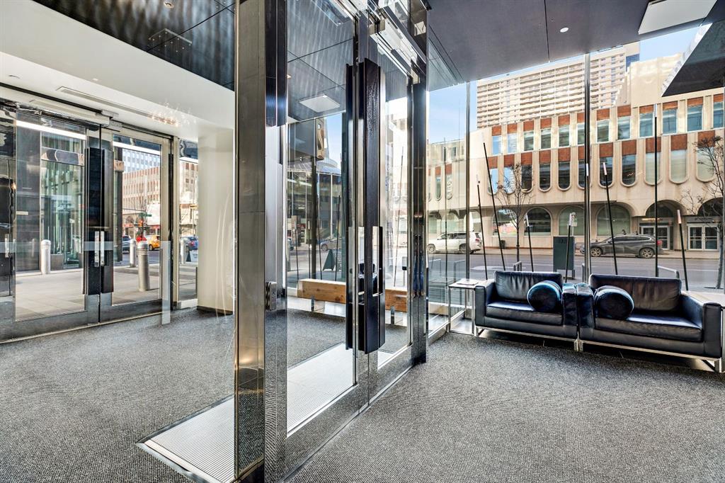 One of the most exclusive condominium residences in downtown Calgary, this exceptional sub-penthouse at Le Germain Residences offers 2,393 sq.ft. of refined living space with breathtaking panoramic views of the city skyline. Designed by internationally renowned architectural firm Lemay Michaud, the residences offer a boutique, club-like atmosphere with full access to the services and amenities of the acclaimed Le Germain Hotel. This beautifully designed suite features 9-ft ceilings, floor-to-ceiling windows, and open-concept living with north, south, and west exposures. High-end finishes include custom wood cabinetry by André Julien, quartz countertops, stone tile, Kohler fixtures, electronic blinds, and in-floor radiant heating, along with new paint and kitchen backsplash. The chef’s kitchen is equipped with Miele appliances and a wine fridge. A spectacular 650 sq.ft. terrace offers stunning city views, while the primary suite features a private balcony a walk-in dressing room, and spa-inspired ensuite. A second bedroom with private ensuite and balcony complete the home. Residents enjoy white-glove concierge service and full access to Le Germain Hotel amenities, including spa, fitness centre, valet parking, restaurants, and room service. The unit includes two premium underground parking stalls and secure storage. Ideally located between Stephen Avenue and the Calgary Tower, this is downtown living at its finest. Images and 3D tour have been virtually staged to help illustrate the property’s potential layout and furnishings. Furnishings, Tv's and decor shown are not included in the sale.