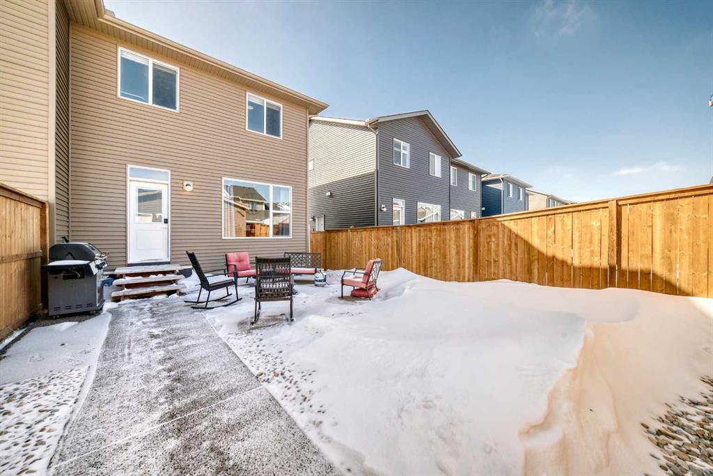 Why wait to build when you can move right in? This beautifully maintained, like-new D’Arcy Ranch side by side offers nearly 2,000 sq. ft. of fully developed living space, including a professionally finished basement, and has been meticulously cared for inside and out. From the moment you step inside, you’ll appreciate the luxury vinyl plank flooring and welcoming living room featuring a cozy built-in fireplace. The open-concept main floor flows seamlessly into the stunning kitchen, complete with two-tone cabinetry, soft-close drawers, quartz countertops, and upgraded finishes throughout. A bright dining area overlooks the fully landscaped backyard through a large picture window, while a stylish two-piece bathroom completes the main level. Upstairs, you’ll find two spacious secondary bedrooms, an upgraded main bathroom, convenient upper-floor laundry, and a generous primary retreat with a beautifully upgraded ensuite. The fully finished basement is equally impressive, featuring 9-foot ceilings, oversized windows, and vinyl plank flooring, creating a bright and open feel. This level includes a bedroom, full bathroom, recreation room, and ample storage. Outside, enjoy the fully landscaped backyard—perfect for relaxing or entertaining—along with a brand-new heated, detached double garage, offering excellent parking and storage. Ideally located close to shopping, playgrounds, walking paths, bike trails, D’Arcy Ranch Golf Course, and within walking distance to downtown Okotoks, this home truly offers the best of convenience and lifestyle. Move-in ready, impeccably maintained, and loaded with upgrades—this is the one you’ve been waiting for.