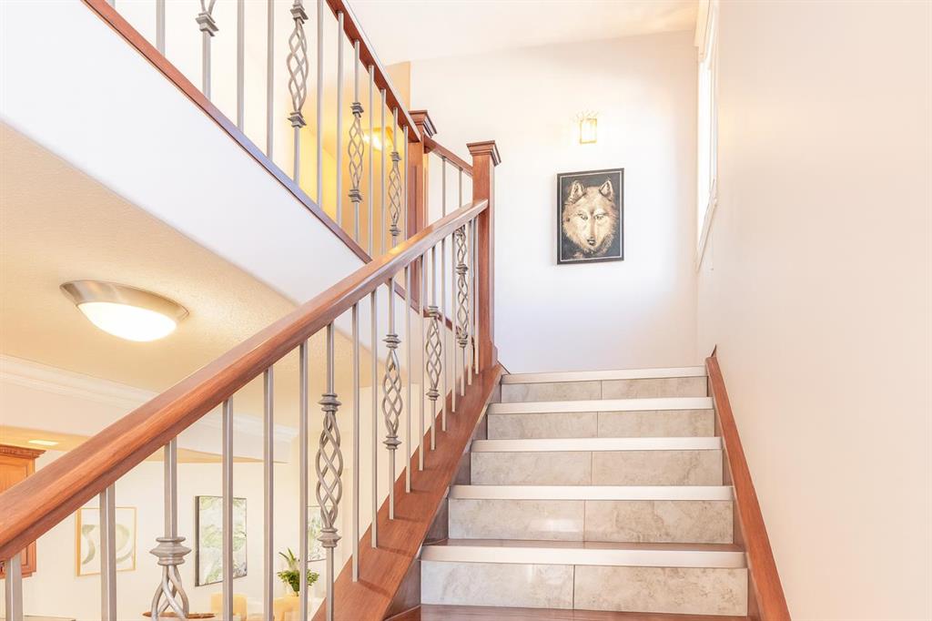Location · Quality · Lifestyle IN INNER CITY Welcome to this exceptional home offering over 2,800 sq. ft. of beautifully finished living space, ideally situated within walking distance to C-Train , Westbrook Shopping Mall and all amenities. Directly across the street is the well-known public charter school(Grade 3-7) focused on nurturing creativity and academic excellence. — a rare convenience that saves valuable commuting time for children. Direct bus to go to Western Canada High School. The home’s timeless stone and stucco exterior sets the tone for the superior craftsmanship and enduring quality found inside. Step into the main floor featuring 9-foot ceilings, crystal chandeliers, tile flooring, hardwood stairs, and cabinetry — a level of quality seldom seen in new buildings. The open-concept kitchen boasts rich hardwood cabinets, granite countertops, a tile backsplash, and Samsung stainless steel appliances, complete with a garburator. The spacious dining area flows seamlessly into the inviting living room, highlighted by a cozy gas fireplace and views of the fully landscaped, fenced, west-facing backyard. The main floor office with large windows and elegant trim detail offers the perfect workspace which can be easily converted into a bedroom. Additional main-floor features include an alarm system, central vacuum, keyless front and back entry, and a built-in audio system that extends to the backyard. Upstairs, you’ll find three generous bedrooms, including a spacious primary suite with a Romeo & Juliet balcony, walk-in closet, and a 5-piece ensuite with dual sinks, a soaker tub, and a separate shower. Two additional bedrooms share a full bath, while an extra walk-in linen closet provides abundant storage. The upper-level laundry is thoughtfully designed with upper cabinets and a window for natural light. The entire upper floor features upgraded laminate flooring throughout. Special attention should be given great sound-proof shared wall with neighbors, enjoying like detached house. The fully developed basement offers a large recreation room, a spacious bedroom, a 3-piece bath, and a walk-in storage closet, all with brand-new vinyl plank flooring (2025). Step outside to your private, fully fenced backyard — an inviting oasis featuring mature trees, a charming flower garden, and elegant stone wall separation from the neighbors for added privacy and style. Enjoy the freshly painted deck and fence (2024), a tool shed, plus a dog run and a double detached garage that’s fully insulated, drywalled, and powered, with access from the paved concrete back lane —no dust at all, a rare upgrade. Recent updates include bedrooms new paint (2025), new vinyl plank flooring in the basement (2025), and freshly painted deck and fence (2024), water tank (2023),new stove and new microwave (2023), making this home truly move-in ready with no repairs needed. This property is a rare find that perfectly combines unbeatable location, timeless quality, and modern comfort.