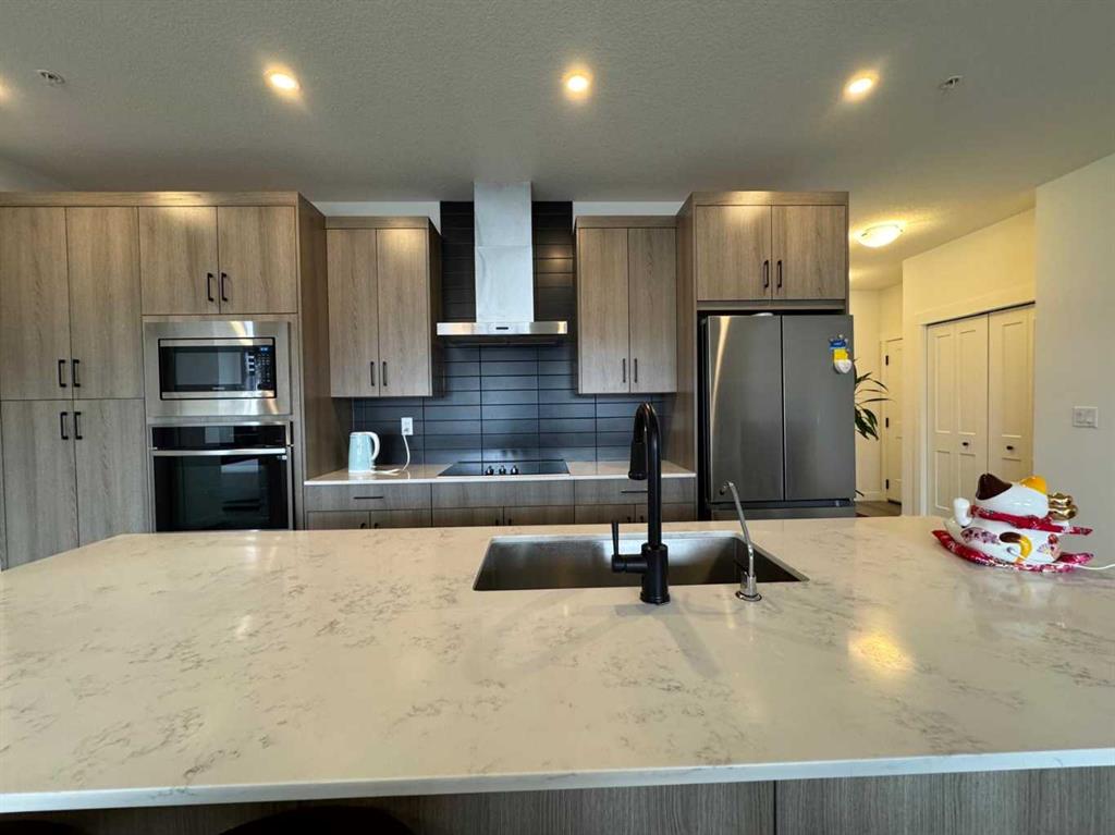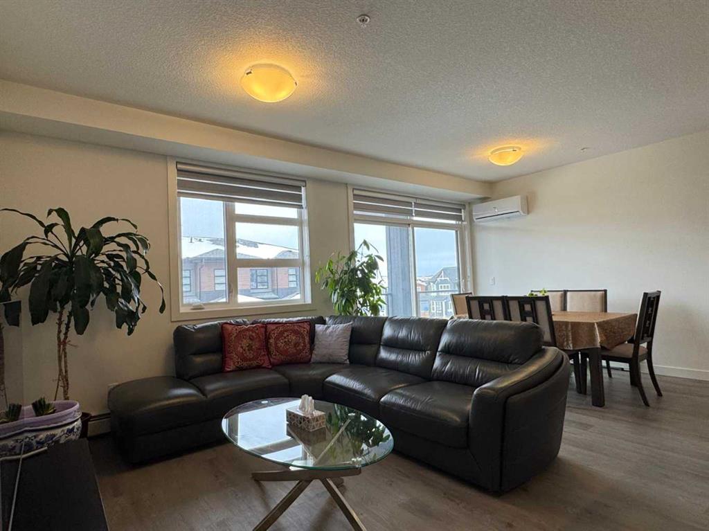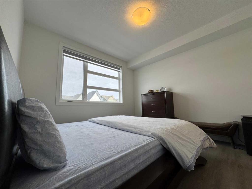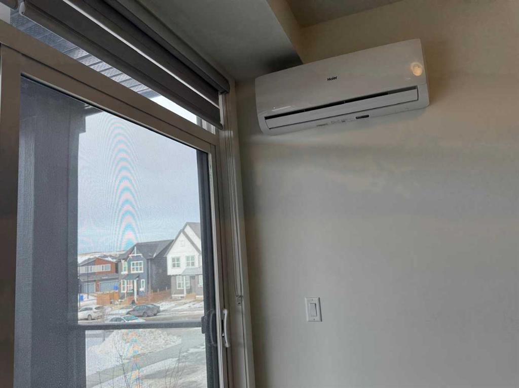 Bright and Spacious with Functional layout! Experience the comforts of modern living with this stunning 2-bedroom, 2-bathroom corner unit, loaded with upgrades, well located in Logel Homes' Livingston Views – Livingston's vibrant, growing community. This home offers easy access to airport, downtown, shopping, dining, and major highways including Stoney Trail & Deerfoot Trail. Enjoy the upgraded Executive kitchen with open design and upgraded with a premium stainless-steel appliance package; built-in wall oven and microwave cabinet tower, quartz counters, oversize center island with large undermount sink, overlooking the huge living room and dining room with patio doors to oversize balcony (20’5” x 6’2”) where you can enjoy your BBQ and decorate with your favorite patio furniture. The Spacious Master bedroom includes a large ensuite bath: with double sinks with large quartz counter, toilet with separate door and a walk in closet with door. Spacious 2nd bedroom: - with windows on both sides which is an added feature of this corner unit. 2nd bathroom upgrade includes a walk in shower with glass doors, quartz counters. Other features of this beautiful unit: - 9-Ft. Ceilings, a breathe easy with Logel Homes' exclusive fresh air intake system, in unit Air Conditioning unit, spacious entry and a large laundry room with ample storage space. This unit also comes with a titled heated underground parking and an assigned storage unit. Accessibility feature: Ram to exterior front building entrance from parking stall.