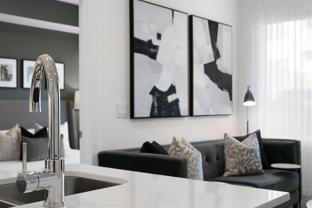 Welcome to Lockwood, where comfort meets convenience in this stunning 2-bedroom, 2-bathroom, plus den, unit with a titled parking stall, located in the vibrant and fast-growing community of Chelsea in Chestermere. Surrounded by parks, playgrounds, and scenic walking trails—and just moments from Chestermere Lake—this home is perfectly positioned for both relaxation and adventure. Enjoy easy access to local amenities like Chestermere Station, Chestermere Crossing, and an array of shopping and dining options, all just minutes away. Step inside to experience a thoughtfully designed open-concept layout featuring an oversized east-facing balcony that floods the living space with natural morning light and offers serene views. Every detail has been carefully curated, from the luxurious vinyl plank flooring and high ceilings, to the chef-inspired kitchen complete with full-height soft-close cabinetry, sleek stainless steel appliances, and an elegant eat-up bar topped with quartz countertops—ideal for casual meals and entertaining. The primary bedroom, features a generous walk-through closet and a private 3-piece ensuite. A second bedroom, perfect for guests or a home office, and a stylish 4-piece main bathroom complete the space. Beyond your private residence, enjoy a wealth of on-site amenities including a fully equipped fitness centre, owners’ lounge, bike storage, and more—all designed to complement an active and social lifestyle. This bright and modern home is move-in ready, offering a premium opportunity to embrace the TRUMAN lifestyle in one of Chestermere’s most exciting new communities. *Photos shown are of a similar unit