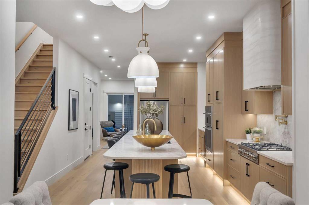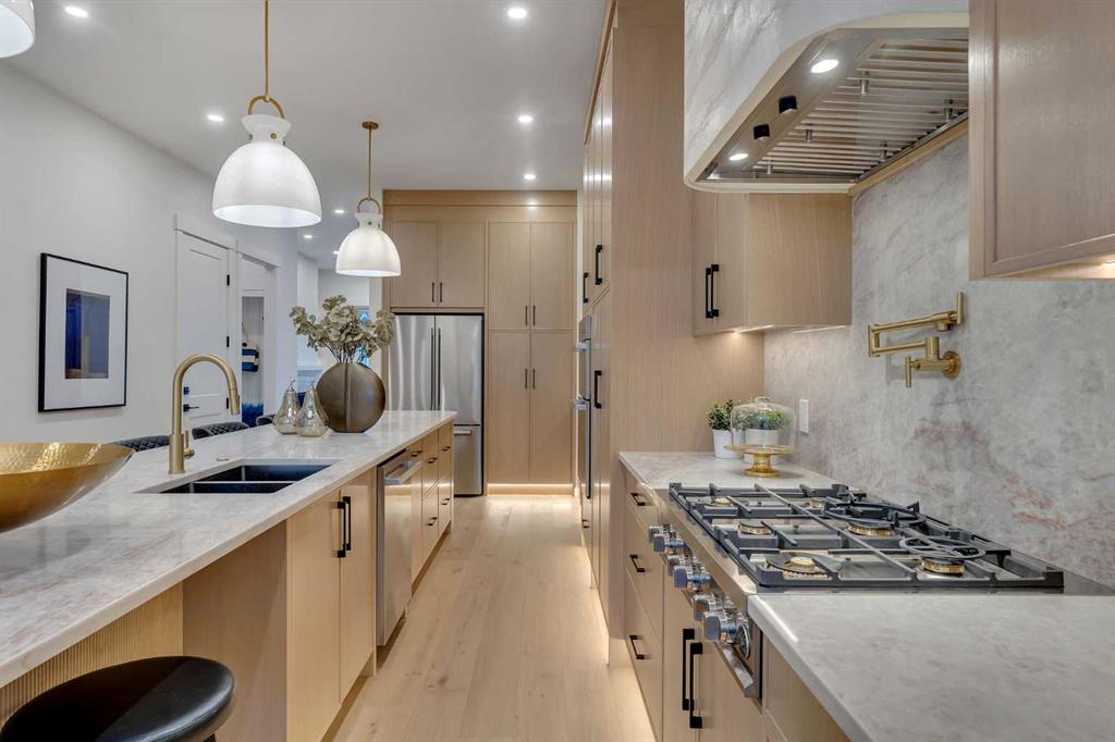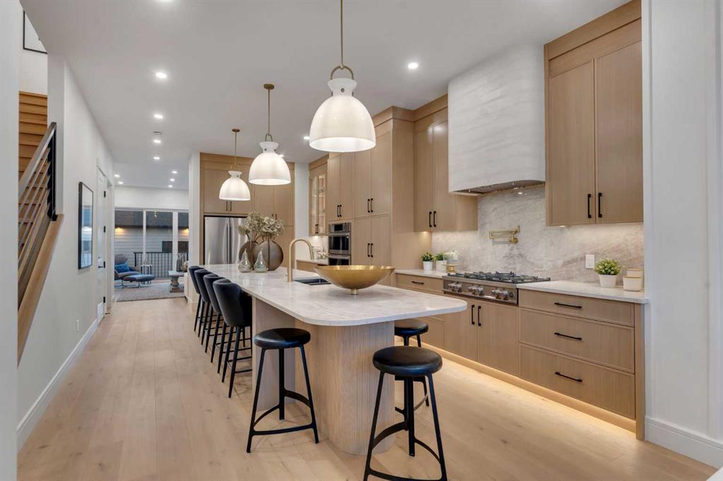 Welcome to the heart of desirable Capitol Hill. This newly built two storey home pairs inner city convenience with family-first design. It offers just under 2,900 sq ft of living space that balances entertainment and residential areas to create an exceptional home. A key feature is a developed basement legal suite that is self-contained and configured to provide both privacy and income potential. The basement can be a two-bedroom rental or private accommodation with its own entry. The main floor impresses with 10' ceilings and large windows bringing abundant natural light. The kitchen is designed for cooking and conversation: BERTAZZONI gas cooktop, Taj Mahal quartz countertops & full backsplashes and continuous cabinetry that supports efficient workflow. A defined separation between the kitchen and the living room at the rear creates clear zones for meal prep and relaxing. The living room anchored by a gas fireplace, while large sliding doors open to the rear deck. The outdoor space is fully fenced and professionally landscaped, offering a low maintenance setting for kids, pets and summer entertaining. Upstairs is organized for privacy and daily ease. The vaulted primary retreat includes a spacious walk-in closet and a spa like ensuite with steam shower, freestanding tub, dual vanities and heated flooring for added comfort. Two additional well sized bedrooms are served by full baths on the level and a dedicated laundry room that smooths morning routines. Generous closets and clear sight lines add practical value throughout. The two bedroom lower legal suite is self-contained with its own entrance, full kitchen, full bath and laundry, ideal for rental income or extended family. Sound-conscious detailing and smart mechanical placement maintain separation and comfort for both households. Finishes include engineered hardwood on the main and upper floors and durable LVP in the basement. The double detached garage is designed for versatility. Beyond parking, the space adapts easily to secure storage or hobby use, blending functionality with everyday utility. Location is the story. Capitol Hill is a mature inner city neighbourhood known for tree lined streets, strong walkability and a genuine sense of community. Enjoy close access to Confederation Park’s pathways and sports fields, nearby cafés and local shops, and straightforward connections to SAIT, the University of Calgary and downtown for commuting and weekend plans. Top schools and convenient transit add to daily ease. This property delivers thoughtful construction, flexible living and a location that holds long-term appeal and value. Move in ready now!