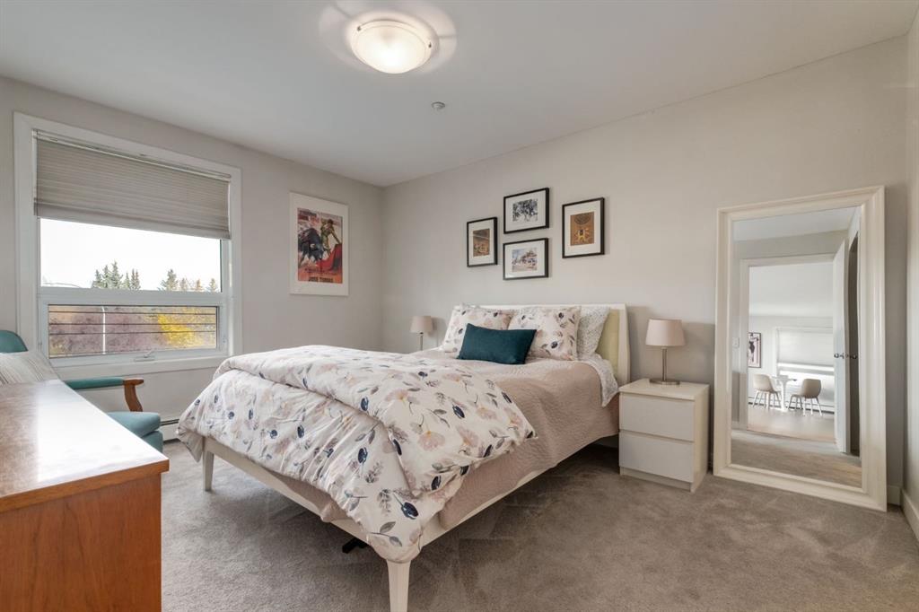 Welcome to The Ellington, a beautiful 2 bedroom, 2 bathroom condo on the 3 floor, perfectly located in the heart of the city. Enjoy the best of urban living with parks, restaurants, shops and scenic bike paths just steps away- all while overlooking a peaceful green space. Step inside to an open-concept living and dining area with large windows that fill the space with natural light. Patio doors lead out to your private balcony from the dining area - the perfect spot for morning coffee or evening relaxation. The kitchen features laminate countertops, stainless steel appliances and kitchen bar. The spacious primary bedroom includes a walk-in closet and full ensuite for your comfort. Additional features include In-suite laundry, heated titled underground parking and extra storage locker. This well maintained condo offers the ideal mix of comfort, style and convenience in a vibrant inner-city location.