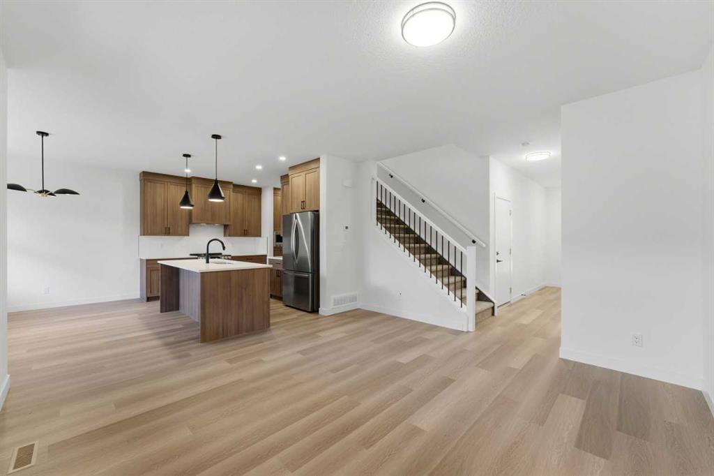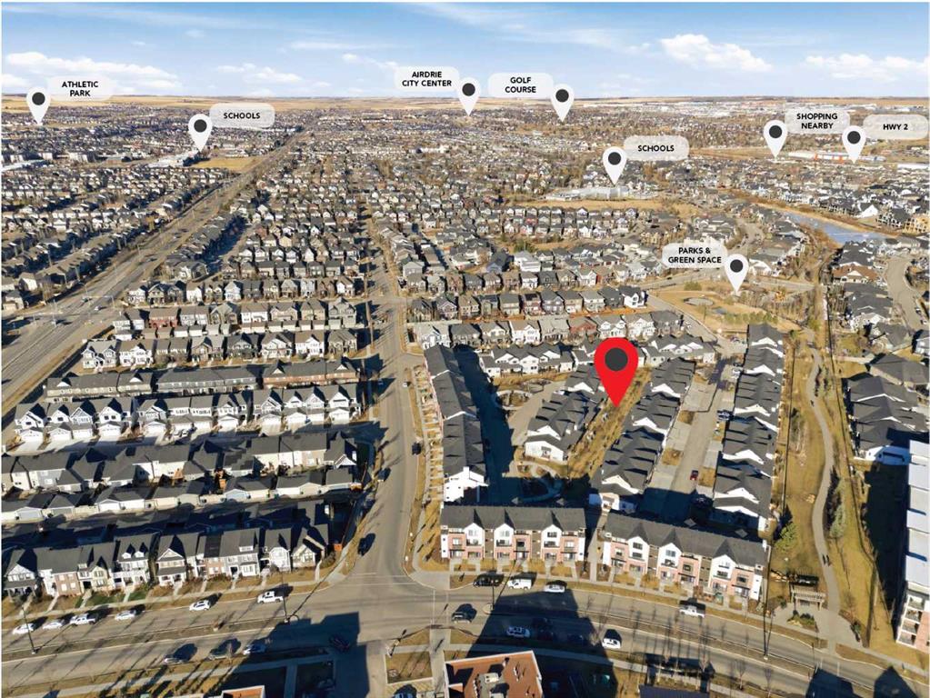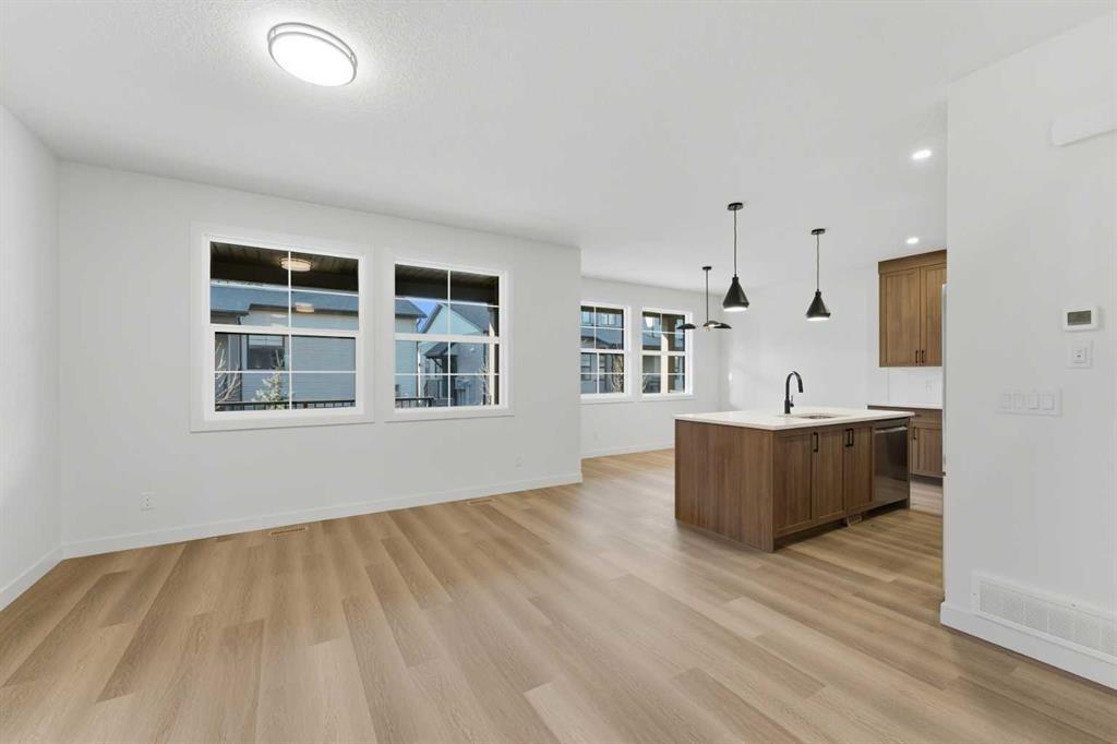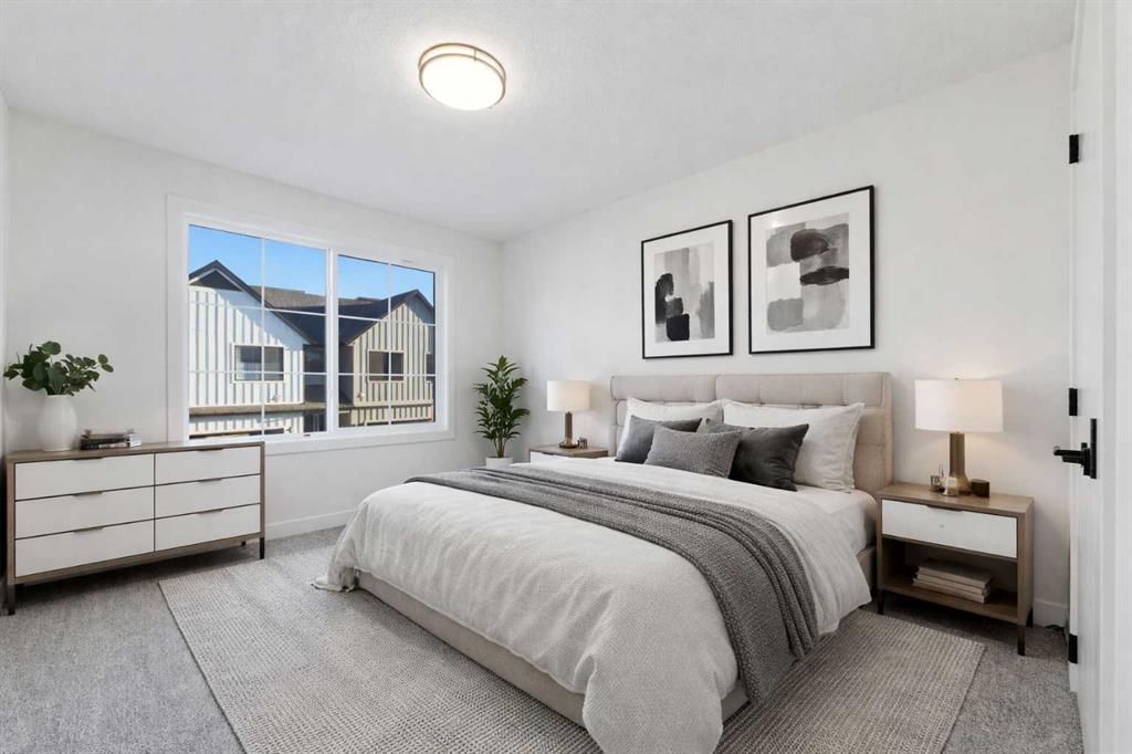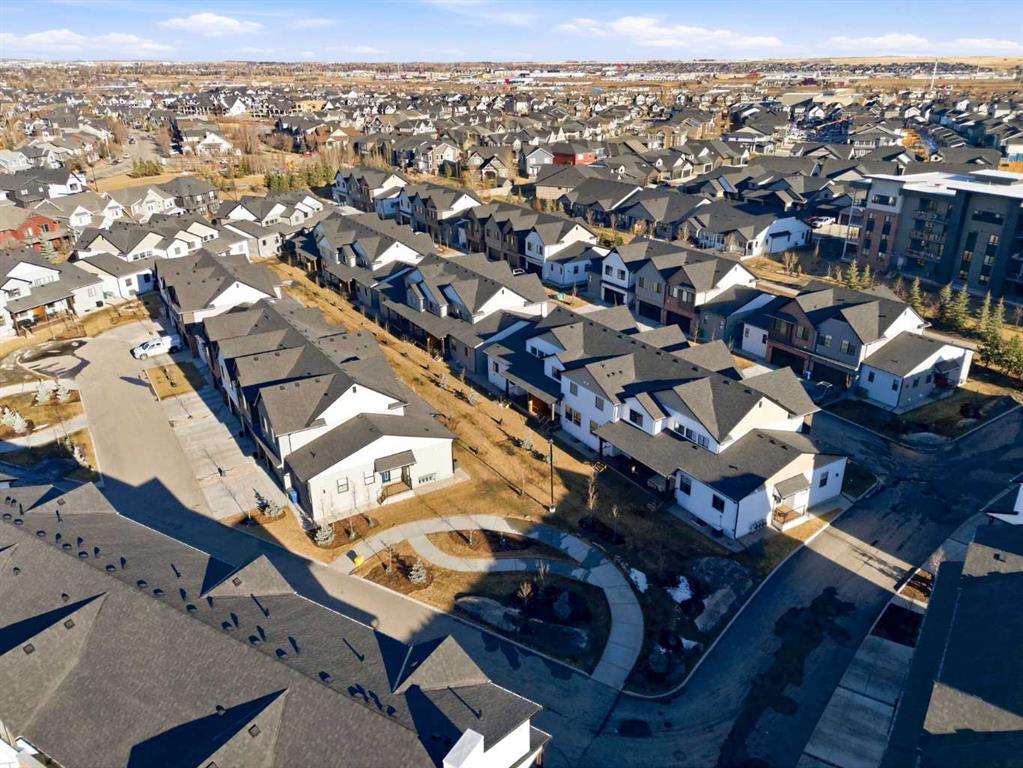 Welcome to luxury and convenience built by Vesta Properties - in the heart of Airdrie’s award-winning community of Cooper’s Crossing. This brand-new beautifully crafted interior-unit townhome combines everyday comfort with smart design. Step inside to discover a bright, functional main level that includes a stylish gourmet kitchen with an oversized island and stainless steel appliances, a cozy family room. Upstairs, a sun-soaked bonus room offers the perfect space to unwind, work from home, or enjoy family time. Just off the bonus area, you’ll find two additional bedrooms, a full bathroom, and a convenient upstairs laundry space ( No washer and dryer in unit). Also you will find your primary bedroom, which is a retreat complete with vaulted ceilings and a spa-inspired ensuite. Enjoy the added luxury of 9-foot ceilings on both the main floor and the basement, creating a spacious and airy atmosphere throughout. Summer evenings are made better on your covered west-facing balcony, with a gas line for your BBQ and views of the landscaped green space, offering a peaceful, family-friendly backdrop. Additional highlights include a double attached garage, modern contemporary exteriors, and fully landscaped yards designed for ease and curb appeal. And here’s the best part... These homes offer a true Lock & Leave lifestyle—experience it at its best! Whether you're off traveling, managing a busy career, or simply done with yard work and snow removal, you can lock the door and go. No stress. No fuss. Just effortless, carefree living. Book your exclusive tour today!