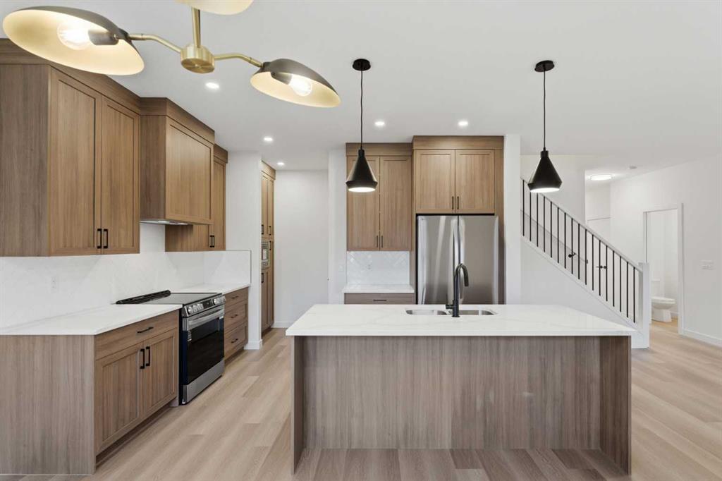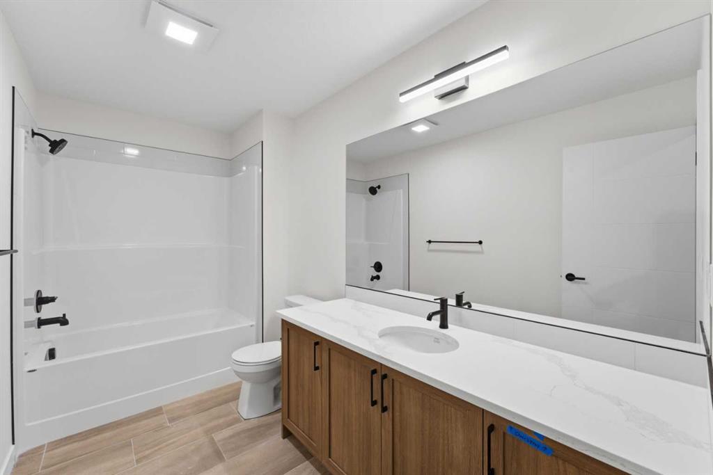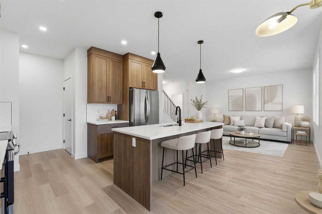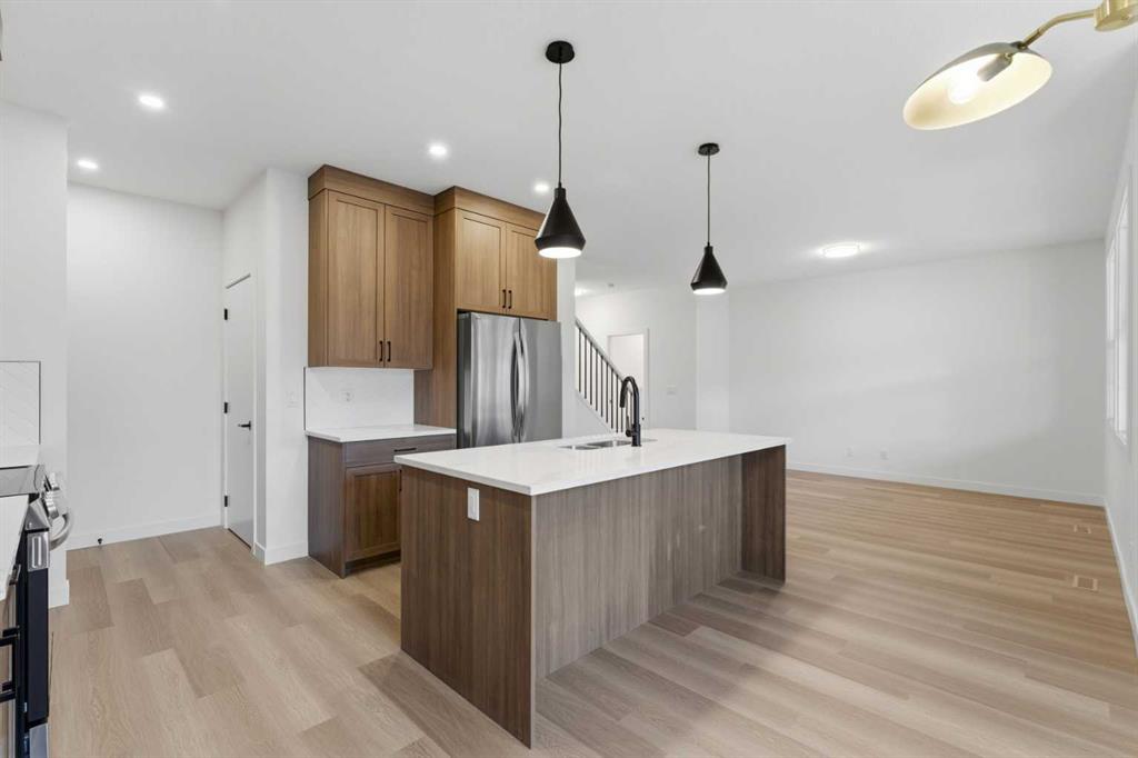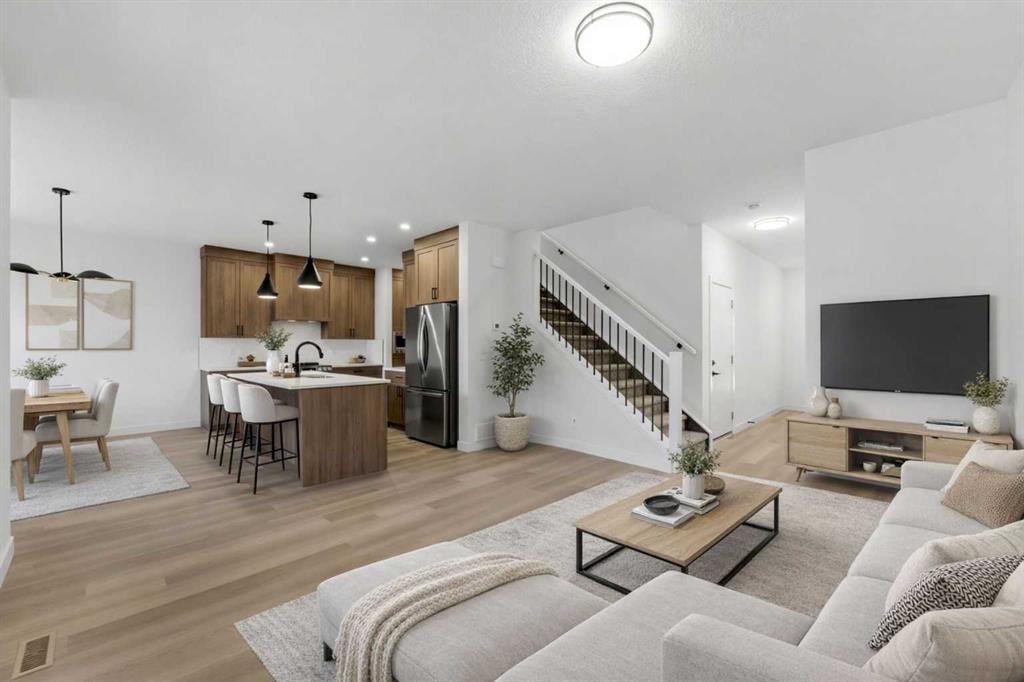 Welcome to luxury and convenience built by Vesta Properties - in the heart of Airdrie’s award-winning community of Cooper’s Crossing. This brand-new beautifully crafted interior-unit townhome combines everyday comfort with smart design. Step inside to discover a bright, functional main level that includes a stylish gourmet kitchen with an oversized island and stainless steel appliances, a cozy family room. Upstairs, a sun-soaked bonus room offers the perfect space to unwind, work from home, or enjoy family time. Just off the bonus area, you’ll find two additional bedrooms, a full bathroom, and a convenient upstairs laundry space ( No washer and dryer in unit). Also you will find your primary bedroom, which is a retreat complete with vaulted ceilings and a spa-inspired ensuite. Enjoy the added luxury of 9-foot ceilings on both the main floor and the basement, creating a spacious and airy atmosphere throughout. Summer evenings are made better on your covered west-facing balcony, with a gas line for your BBQ and views of the landscaped green space, offering a peaceful, family-friendly backdrop. Additional highlights include a double attached garage, modern contemporary exteriors, and fully landscaped yards designed for ease and curb appeal. And here’s the best part... These homes offer a true Lock & Leave lifestyle—experience it at its best! Whether you're off traveling, managing a busy career, or simply done with yard work and snow removal, you can lock the door and go. No stress. No fuss. Just effortless, carefree living. Book your exclusive tour today!