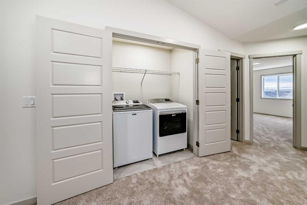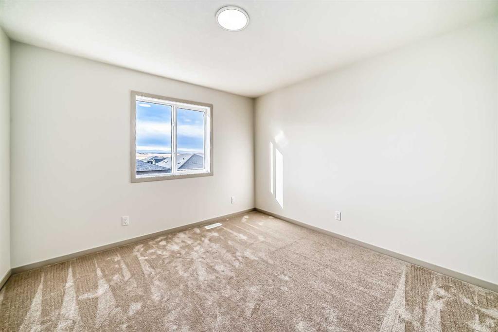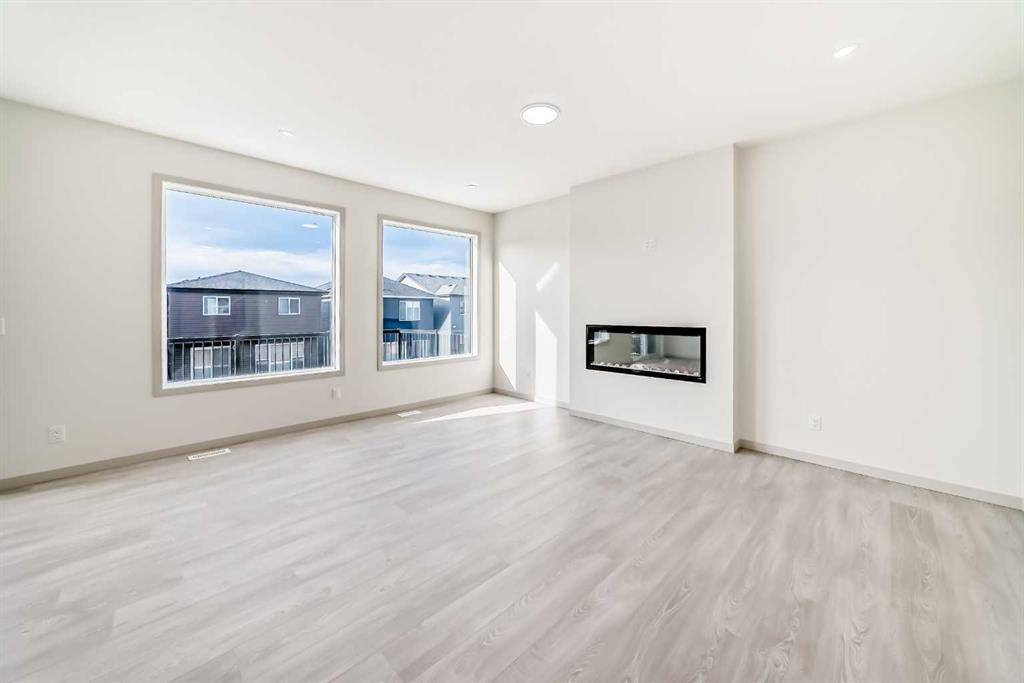 Brand new and never occupied, this premium Morrison Homes build offers over 2,700 sq ft of fully finished living space in the sought-after master-planned community of Livingston in Calgary’s vibrant New North. Designed with modern living in mind, the home features an open-concept main floor with a spacious living room highlighted by an electric fireplace, a bright dining area, and a chef-inspired gourmet kitchen complete with upgraded appliances, elegant two-tone glossy cabinetry (dark lower and white upper), quartz countertops, a large central island, and a walk-through pantry. A practical mudroom adds everyday convenience. The second floor offers a flexible family room, a generous primary retreat with a luxurious 5-piece ensuite, two additional bedrooms, and upper-level laundry. The fully finished walk-up basement extends the living space with a bedroom, recreation room, and a 4-piece bathroom, ideal for guests or extended family. Located in Livingston, residents enjoy access to the Livingston Hub HOA facility, over 200 acres of parks and green space, scenic wetlands, and pathways. With quick access to Stoney Trail and Deerfoot Trail, this home combines premium craftsmanship, thoughtful design, and an exceptional community lifestyle.