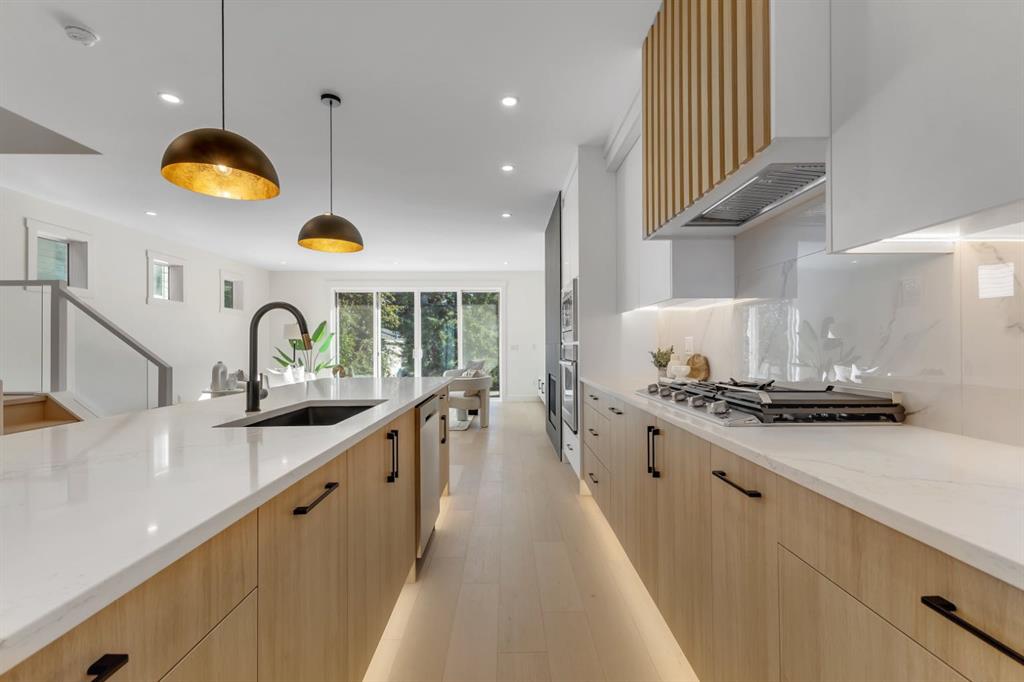 Step inside this brand-new semi-detached home in HIGHLAND PARK and you’ll immediately notice the thoughtful design that blends everyday function with modern luxury. With 4 beds, 3.5 baths, and a rare ATTACHED GARAGE, this home offers more than just a place to live—it’s a lifestyle upgrade in one of Calgary’s most central communities. The entryway opens into a bright main floor filled with natural light from oversized windows. A private main floor office just inside is the perfect spot for productivity – with a peek-through window into the main floor and extra large window for tons of natural light. The powder room is tucked away nicely near the office for clients or guests, with designer lighting and quartz countertop. Anchored by a large island with seating, the kitchen will definitely impress! It offers an abundance of storage and workspace, with quartz countertops, a gas cooktop, built-in oven, and high-end stainless appliances, it’s built for both serious cooking and casual entertaining. The open layout connects seamlessly to the dining and living room area, making it easy to host friends for dinner or enjoy family meals without missing a beat. Transom windows overlook this open area for more natural light, and a sleek gas fireplace with full height custom grey tile surround guides your eye to the built-in media centre with wood slat feature wall. Upstairs you’ll find the primary retreat is a private escape, featuring a large walk-in closet and a spa-inspired ensuite with a deep soaker tub, double vanity, and tiled shower with STEAM SHOWER rough-in. Two additional bedrooms, each with their own WALK-IN CLOSETS, share a stylish 4-piece bathroom. An upstairs laundry room adds to the everyday functionality. The fully developed basement is all about versatility. There’s a spacious rec room complete with a WET BAR, R/I for a projector - ideal for movie nights, game day, or hosting guests. A fourth bedroom & full bathroom create a comfortable space for overnight visitors, older kids, or extended family. And thanks to the ATTACHED GARAGE, you’ll enjoy direct access into the basement, keeping you sheltered from the elements year-round with built-in cubbies & hooks for organization & convenience. Outside, a private SOUTH backyard with a deck & BBQ gas line extends your living space into the outdoors. Located in Highland Park, this home combines quiet residential living with incredible convenience. Confederation Park and its extensive pathways are nearby, offering the perfect setting for walks, runs, and family time. Local schools, playgrounds, and community amenities are within easy reach, and the central location makes commuting downtown or to the airport a breeze. Shopping, dining, and everyday essentials are minutes away along Centre Street and 16th Avenue. With its thoughtful floor plan, luxury finishes, and the rare advantage of an ATTACHED UNDERGROUND GARAGE, this property is a standout opportunity to move into a brand-new home that’s ready to welcome you today!