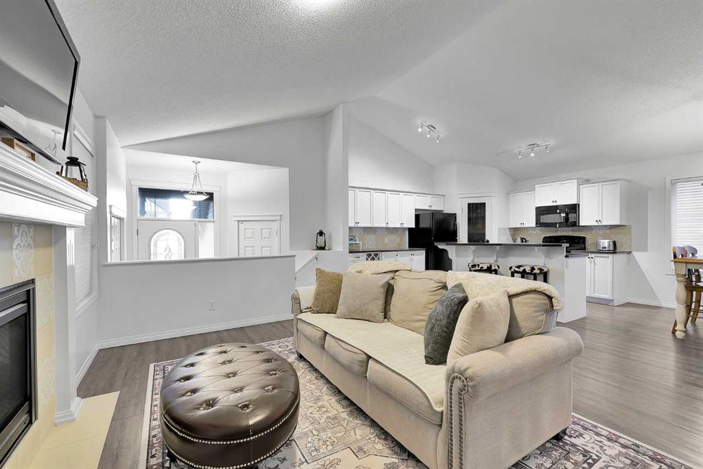 PRICE IMPROVEMENT! Looking for a UNIQUE home in Cochrane that won’t break the bank? Welcome to 65 Sunset Heights, Sunset Ridge—a thoughtfully designed 3-level split offering 4 bedrooms, 3 full bathrooms, and a layout that stands apart from the typical cookie-cutter home. The entire home has just received a full repaint, giving it a fresh, clean, move-in-ready feel from top to bottom. From the moment you arrive, pride of ownership is on display with a beautifully maintained garden and inviting curb appeal. Step inside to a spacious front entry with excellent storage and direct access to the double attached garage—perfect for busy families. A short flight of stairs leads to the heart of the home, where an eye-catching vaulted ceiling creates an airy, open feel. The main living area features a cozy gas fireplace and an open-concept kitchen, dining, and living space finished with seamless vinyl plank flooring and a separate kitchen island that delivers warm, country-kitchen vibes—ideal for everyday living and entertaining. Just off the main floor, the open-to-below living space adds versatility and charm, making it the perfect spot for game nights, movie marathons, or family gatherings. The fully finished basement offers a private retreat—ideal for older teens, guests, or extended family—complete with a bedroom, full bathroom, and a rare, oversized crawl space that functions like your own personal storage locker. Additional space is perfect for hobbies, a home gym, or a music area. Upstairs, the primary bedroom features a walk-in closet and full ensuite, while a second bedroom and another full bathroom complete this highly functional upper level. Outside, the backyard is fully finished with an expertly designed patio that directs water away from the home, helping protect the foundation. A privacy screen and decorative fencing mean all that’s left to do is fire up the BBQ and relax this summer. Located within walking distance to Rancheview K–8 School and St. Timothy’s School (7–12), and just minutes from Sunset Ridge’s commercial hub—including gas, medical and dental offices, pharmacy, pub, and takeout restaurants—this home delivers incredible value, versatility, and location.