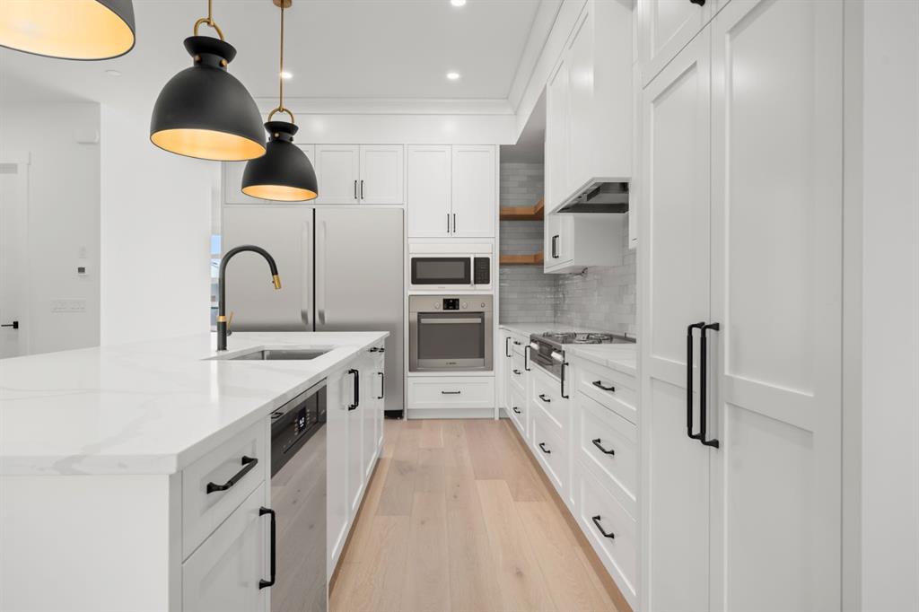 ELEVATOR | FULLY LANDSCAPED | INSULATED & DRYWALLED ATTACHED GARAGE | SOUTH BACK YARD | DESIGNER LIGHTING | ENGINEERED HARDWOOD | ELEVATOR | HIGH-END KITCHEN | CUSTOM BUILT-INS | HIGH-EFFICIENCY | 5 BEDROOMS & 4.5 BATHROOMS | FINISHED BASEMENT WITH HEATED FLOORS | LAVISH ENSUITE WITH HEATED FLOORS | OUTSTANDING LOCATION | DOWNTOWN VIEWS | This impressive brand new, Three storey home with just under 3600 sqf of living space is located in the sought after neighbourhood of South Calgary. Pristine design with modern finishings, exquisite attention to detail, and contemporary final touches. This home includes an elevator with access to all 4 floors, oversized windows that brightens the foyer, living room, formal open dining room, high-end kitchen, mudroom & natural light from front to back. The kitchen has designer finishes, quartz contertop that can seat 6 individuals, upgraded stainless steel appliances such as a gas cooktop, convection walloven and microwave. The second floor invites you to explore three bedrooms, a full-size upper floor laundry room, five-piece ensuite, a four-piece bath, a lavish & relaxing master retreat w/custom walk in closet and magnificent ensuite with a large soaker tub, double vanity & custom shower. The third level has an additional bedroom and four-piece bath as well as a large flex room that leads to a rooftop patio with downtown views. The lower level includes a recreation room, a full three-piece bath and fifth bedroom. The backyard is a multi-tiered yard with a patio to enjoy the summer nights.