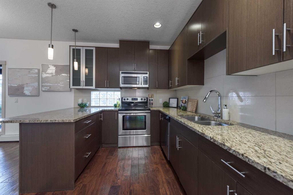 Welcome to this well priced, exceptional and roomy 725 SF SW CORNER suite located in the highly sought-after community of Elboya, one of Calgary’s most desirable inner-city neighborhoods. Perfectly positioned just steps from Chinook Mall, the amazing Stanley Park, and minutes to downtown, this home offers an unbeatable combination of convenience, comfort, and style. The bright, open-concept layout is flooded with natural light from large windows and features gleaming hardwood floors throughout. The inviting living area is anchored by a cozy gas fireplace, creating a warm and welcoming space for everyday living or entertaining. The sleek, contemporary oversized kitchen is a true showpiece, complete with granite countertops, stainless steel appliances, extra height cabinets, modern pendant lighting, glass block window detail, a generous pantry, and an oversized island ideal for meal prep or casual dining. The spacious primary bedroom offers a wall of closets and a peaceful retreat at the end of the day. The elegant 4-piece bathroom is thoughtfully designed with a luxurious soaker tub, floor-to-ceiling tile, and a rainfall showerhead. Additional conveniences include in-suite stacked laundry and an assigned underground parking stall. Step outside to enjoy your private west facing balcony—perfect for relaxing at the end of the day. With specialty restaurants, cafés, urban parks and walking/biking paths, this home delivers effortless urban living in a premier location. Commuting couldn’t be easier with Macleod Trail, public transit & the 39th Avenue LRT station nearby. An outstanding opportunity to own a stylish, move-in-ready condo in Elboya—ideal for first time buyers, professionals, downsizers, or investors alike. Seize this opportunity today and book your viewing!