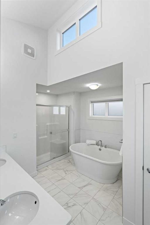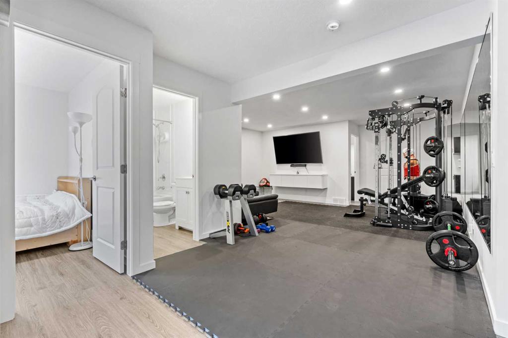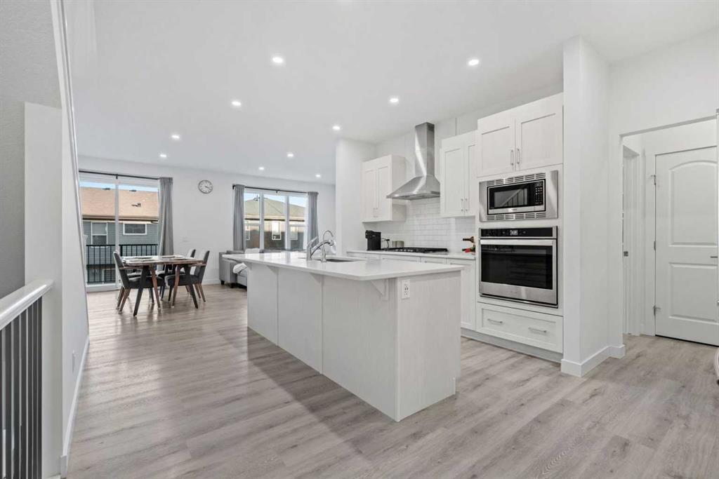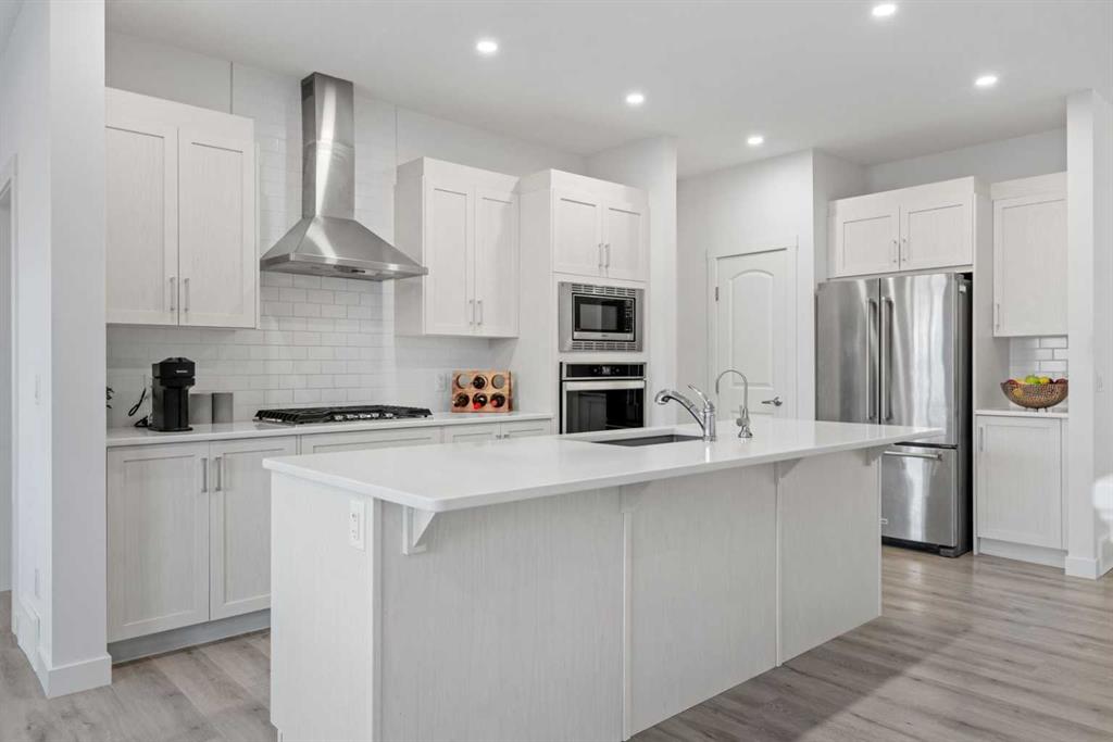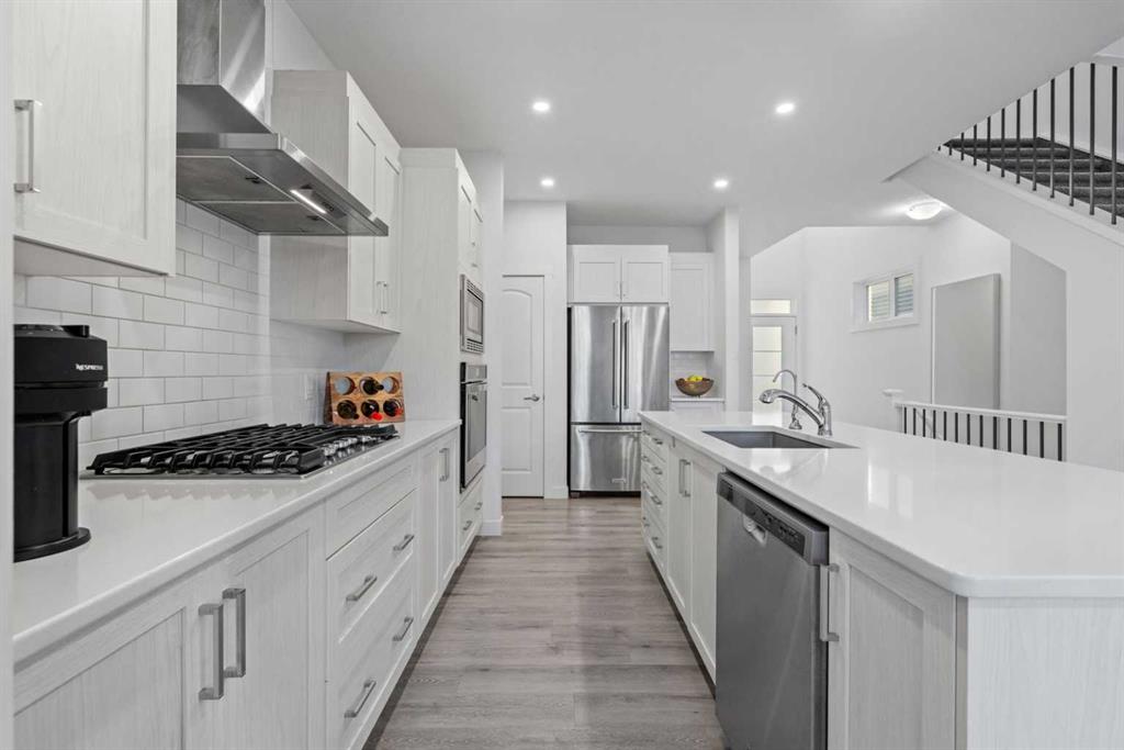 Welcome to this elegant and modern fully finished walkout basement home in the heart of Sage Hill, offering 3,200 sq ft. of living space (include the basement). A spacious and welcoming foyer sets the tone the moment you step inside, with clear sightlines guiding you through to the bright, open-concept main living area at the rear of the home. Expansive windows line, filling the space with natural light throughout the day. The main floor features 9-foot ceilings, pot lights throughout, and a dedicated den/office, ideal for remote work or a quiet study. At the heart of the home is a chef-inspired kitchen that blends style and practicality, showcasing a large central island for gathering, a chimney-style hood fan, built-in wall oven and microwave, and a gas cooktop. The adjacent nook opens onto a deck with a gas BBQ line, extending your living space outdoors. Completing the main level are a convenient half bath and a functional mudroom with added storage shelving, connecting directly to the double attached garage with overhead storage. Upstairs, upgraded metal railings lead to a thoughtfully designed second floor featuring three bedrooms, a spacious (vaulted ceiling) bonus room, and a well-appointed main bathroom. The luxurious primary suite is a private retreat, offering a spa-like ensuite with a separate soaker tub, stand alone shower, dual vanities, and a generous walk-in closet with direct access to the separate laundry room, complete with a sink and extra shelving for storage. The professionally finished walkout basement adds outstanding flexibility, featuring a bedroom, full bathroom, office, recreation/exercise room, and ample storage, with direct access to a concrete patio beneath the deck. Additional upgrades include Triple panes window, central air conditioning, a water softener, water filtration system, and a outside hot water tap. Major recent upgrades include a new roof(2025), new siding(one side, 2025), and a new garage door (2025). Just minutes from playground, parks, walking trails, and ponds, this home also offers exceptional convenience to everyday amenities including Walmart, H Mart, Paris Baguette, Costco, T&T Supermarket, Creekside, Sage Hill Quarter, and Beacon Hill Shopping Centre. Enjoy quick and easy access to Stoney Trail and Shaganappi Trail, making commuting around Calgary seamless, with YYC International Airport just a short drive away. This beautifully upgraded home combines modern elegance, thoughtful design, and exceptional functionality—making it a standout opportunity in one of NW Calgary’s most desirable communities. Check out the virtual!