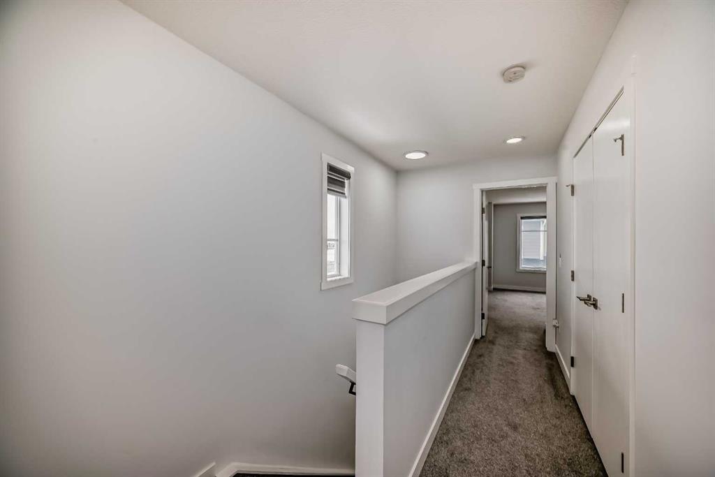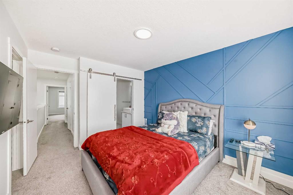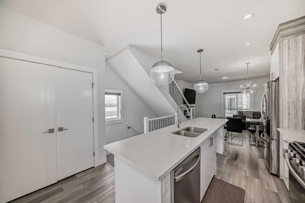 Welcome to this beautifully crafted modern Townhouse featuring 3 bedrooms, 3 full bathrooms, and a DOUBLE TANDEM GARAGE in the sought-after Skyview Ranch NE community in Calgary. Blending style with practicality, this home provides generous space and thoughtful upgrades throughout. The main level includes a spacious double tandem garage with extra storage, perfect for vehicles, tools, or seasonal. items. The second level showcases a chef-inspired kitchen with glossy DUAL TONE CABINETRY, a large ISLAND WITH QUARTZ COUNTERTOPS, sleek STAINLESS STEEL APPLIANCES, a modern range hood, and ample counter and storage space. The open-concept living and dining areas are filled with natural light through oversized windows and feature a fireplace that adds warmth and character. Elegant LVP flooring enhances the modern aesthetic. This level also offers a bedroom and a full bathroom with a standing shower, ideal for guests, in-laws, or a home office. Upstairs, the third level provides privacy and comfort with TWO SPACIOUS PRIMARY BEDROOMS, each with its OWN PRIVATE ENSUITE bathroom. A conveniently located laundry room adds practicality. Location is key, and this home excels in that regard. You’re within walking distance of Prairie Sky School, Apostles of Jesus School, and Kidz Space Daycare, making it perfect for families. Just a minute away, a vibrant shopping plaza offers grocery stores, banks, cafés, and a variety of dining options. Calgary International Airport is just 10 minutes away for travellers. Downtown Calgary is within 20 minutes, with quick access to Deerfoot Trail and Stoney Trail, ensuring easy connectivity. With modern finishes, a versatile layout, a prime location, and convenience, this home has everything you need. Whether you’re a first-time buyer, a growing family, or an investor, this is an exceptional opportunity to own a unique home in Skyview Ranch. Don’t miss your chance to make it yours!
