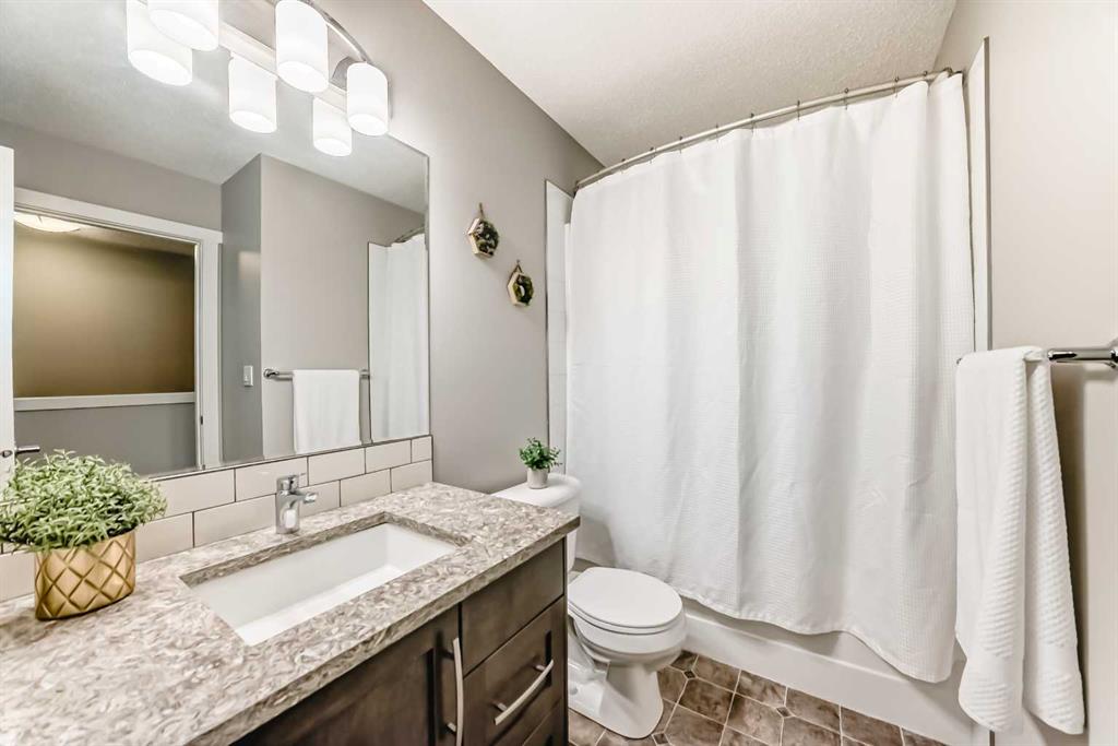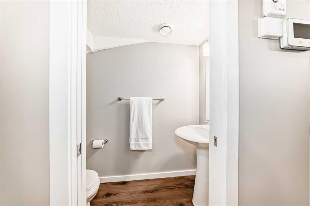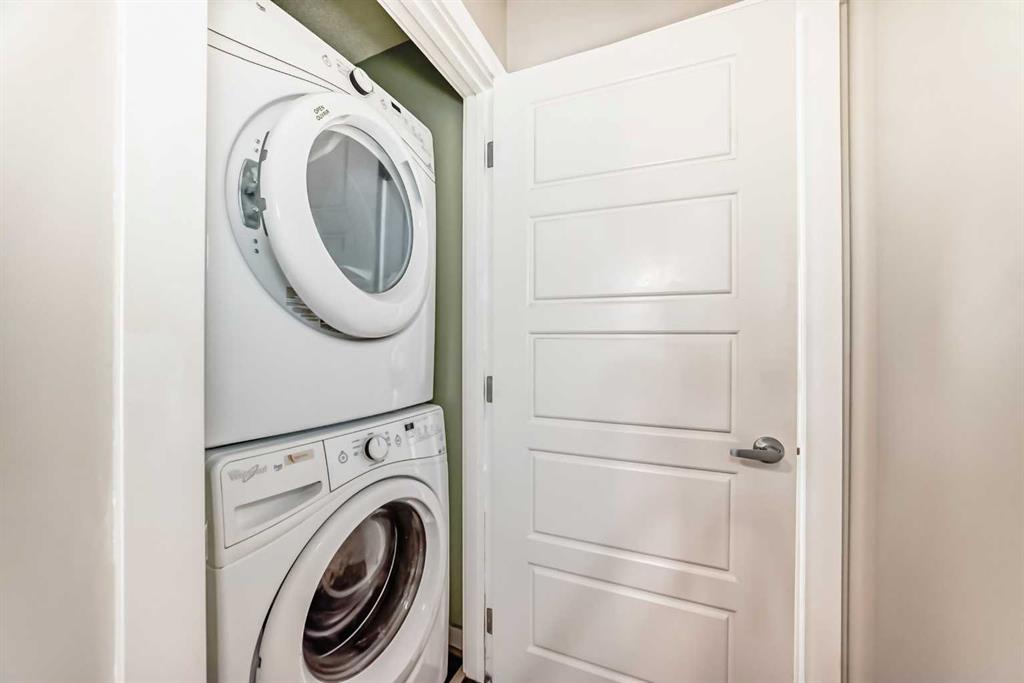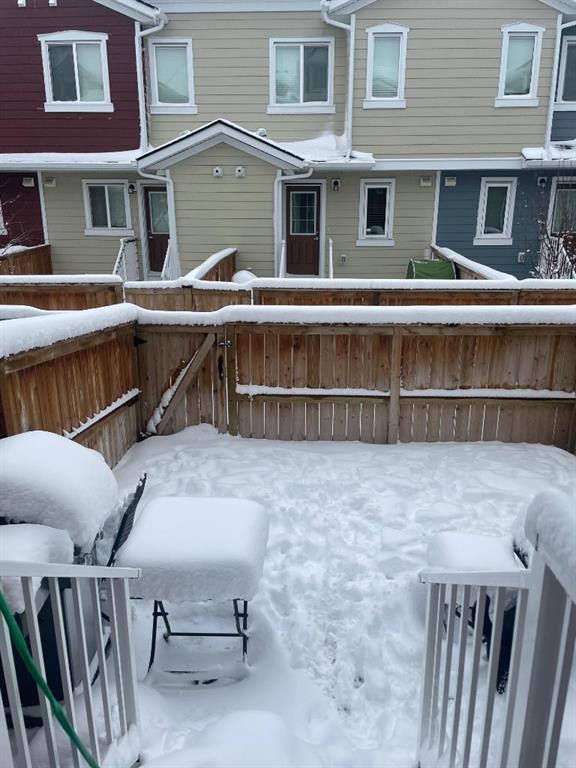 Welcome to Ravenswood - quiet streets, parks and pathways, and close proximity to shopping, dining, schools. This lovingly maintained 2-bedroom, 1.5 bath townhome is ideal for downsizing, first-time buyers, or investors. This home has an attractive open concept layout and a quaint private backyard. The bright main floor flows from the living area to the dining space and kitchen. The kitchen features trendy rich cabinetry, quartz counters, an electric stove, dishwasher, and microwave hood fan, plus plenty of counter space for cooking and entertaining. Don't forget about the adorable half bath. Upstairs, you’ll find two HUGE bedrooms. The Primary has room for your King Bed, lots of Furniture and Workout Equipment. The Main Bath is a cheater suite flowing to the WIC and Primary Bedroom. Additional storage can be found in the attic with a pull down staircase allowing access. Fresh paint throughout, Air Conditioning and upper floor laundry make this home a dream! Enjoy your fenced backyard, perfect for BBQs, gardening, or watching your children play. This property includes a dedicated parking stall. Condo fees include snow removal, landscaping, and insurance. 2 pets allowed. Make it yours today!