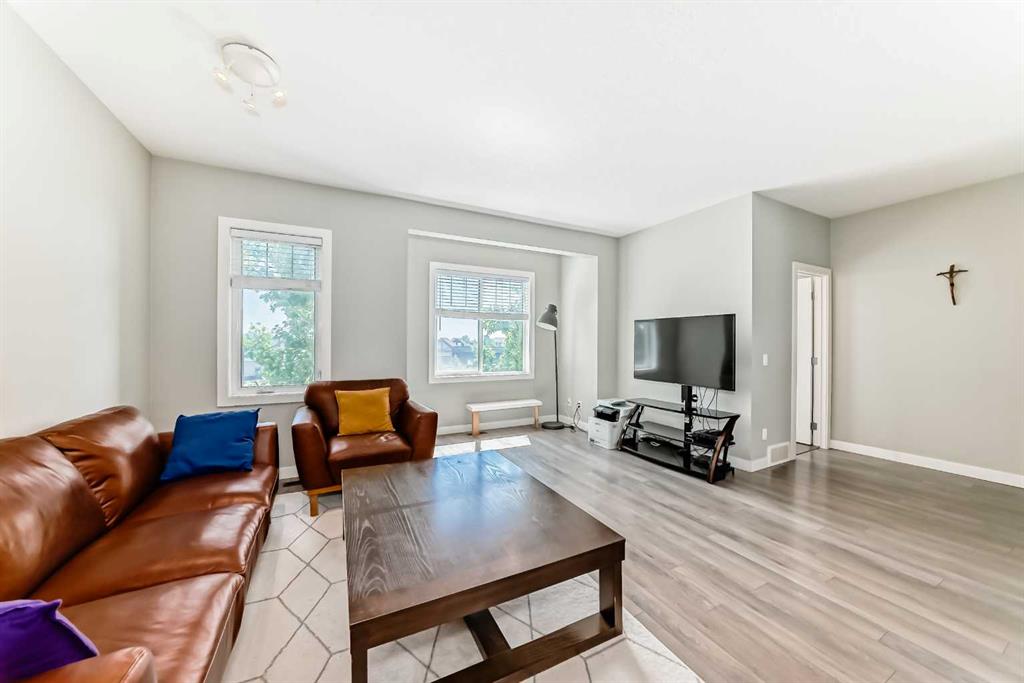 Welcome to the largest unit in Chestermere Station, offering over 2,130 sq ft—approximately 400 sq ft larger than any other unit in the complex—plus the rare bonus of an attached double garage. This well-maintained three-storey townhome features an open-concept main level with high ceilings, quartz countertops, a spacious kitchen island, and a large private balcony. Upstairs offers a primary suite with walk-in closet and ensuite, additional bedrooms, a bonus room, and upper-level laundry. Ideally located minutes from Chestermere Lake, parks, walking paths, schools, shopping, and Chestermere Golf Club. Condo fees include insurance, professional management, reserve fund contributions, snow removal, and common area maintenance—making ownership simple and stress-free. Exceptional space, functionality, and lake-community living.