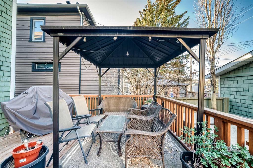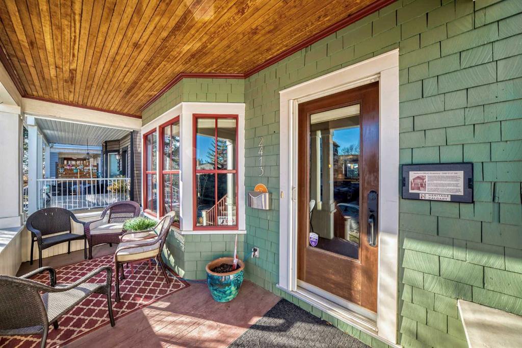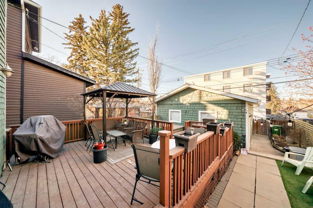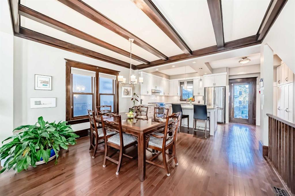 Wonderful 2 Story Character Home that has been Updated while keeping the Charm with Wide Wood Window & Door Casings & Headers and Tall Wood Baseboards. All of this Matching the Original Beamed Ceiling above the Dining Room. Main Level has an Open Floor Plan with 9 Foot Ceilings, Hardwood Floors and a Bright East Facing Livingroom with a Great Gas Fireplace for those Cool Winter Nights! Fabulous Kitchen with Granite Countertops, a Large Granite Island, an Abundance of White Cabinets, a Gas Stove and Stainless Steel Appliances. There are 3 Bedrooms upstairs with a full Bathroom with Granite countertop. Off the master Bedroom is a Lovely Sunroom with Downtown Views! In the Lower Level you will find a Spacious Rec Room, Storage Room , Laundry room and another Full Bathroom with Granite Countertop. The Outstanding Outdoor Entertaining Area with West Facing Backyard that has A large Deck, Hot Tub, Detached Double Garage and Minimalist Landscaping. Book your viewing of this "Stylish, Distinctive Home in a Coveted Neighborhood "